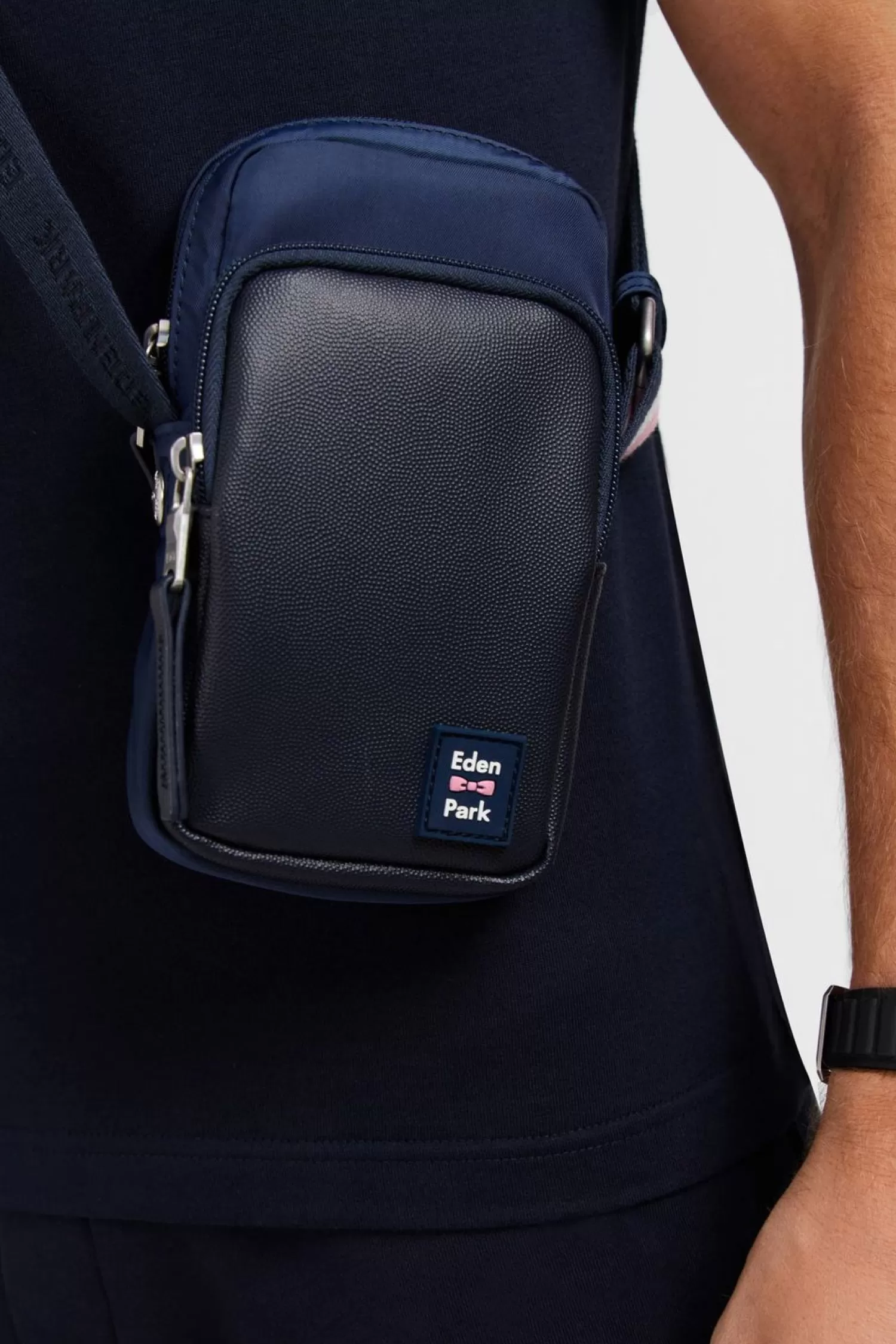 Eden Park Besace Bleu Marine Avec Effet Cuir Graine-Homme Sacoches