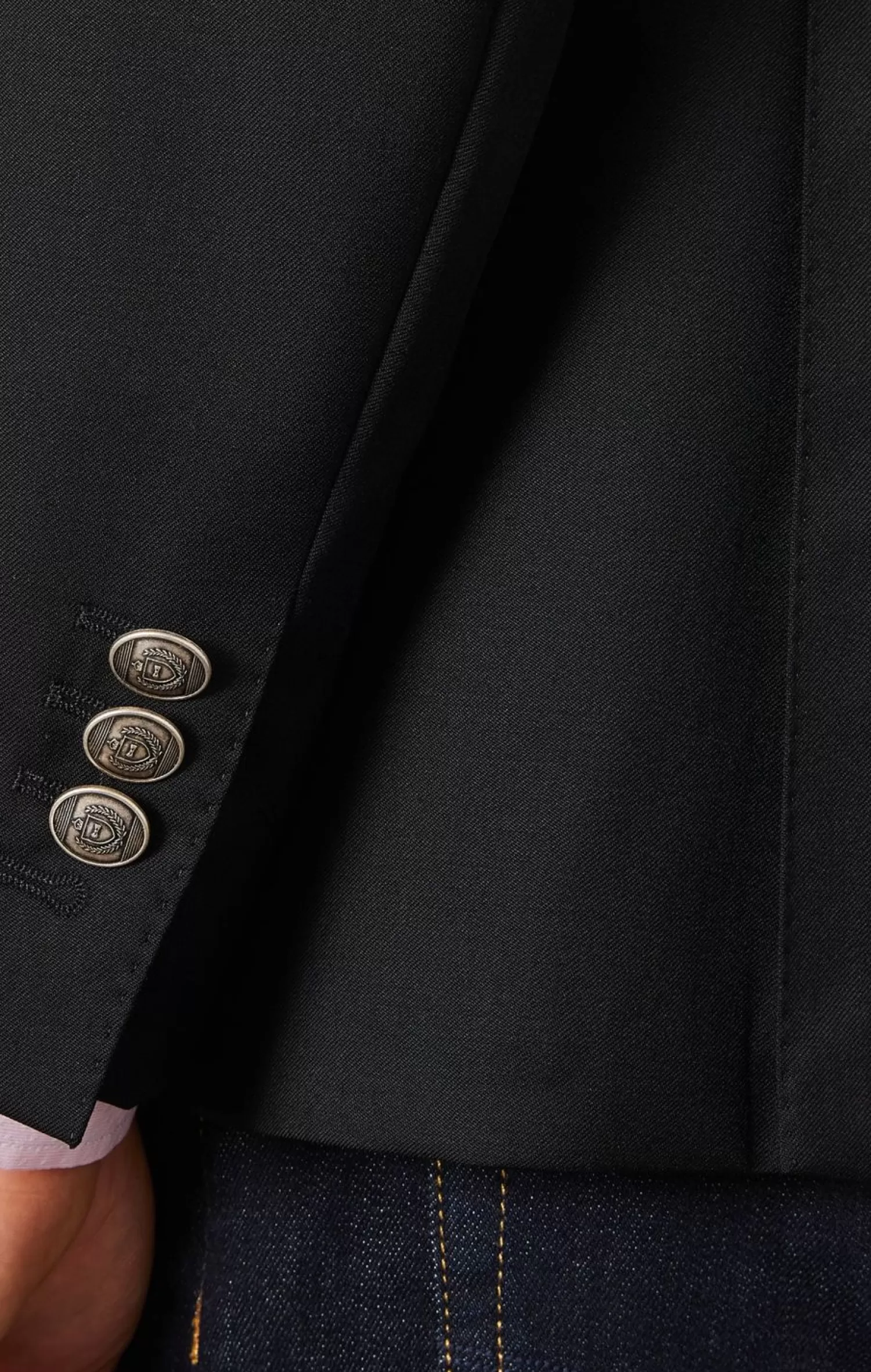 - Boutons Ovales Siglés En Métal Aux Poignets