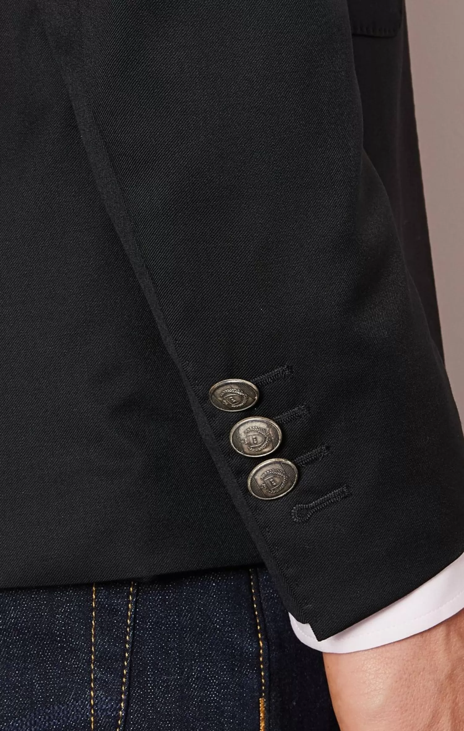 - Boutons Ovales Siglés En Métal Aux Poignets