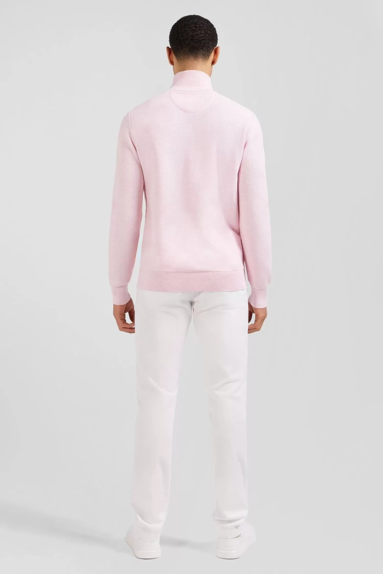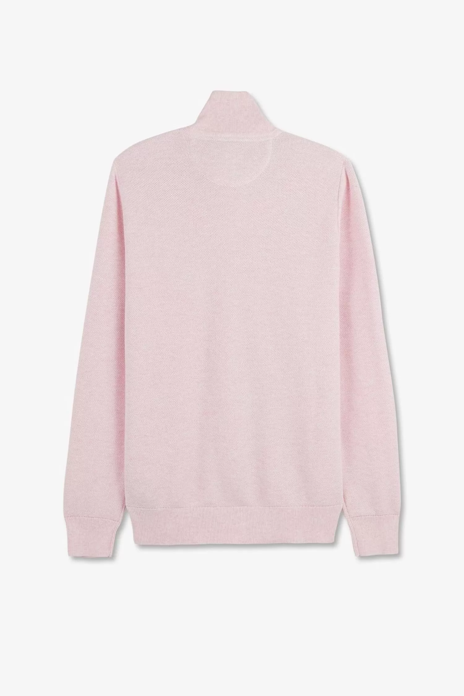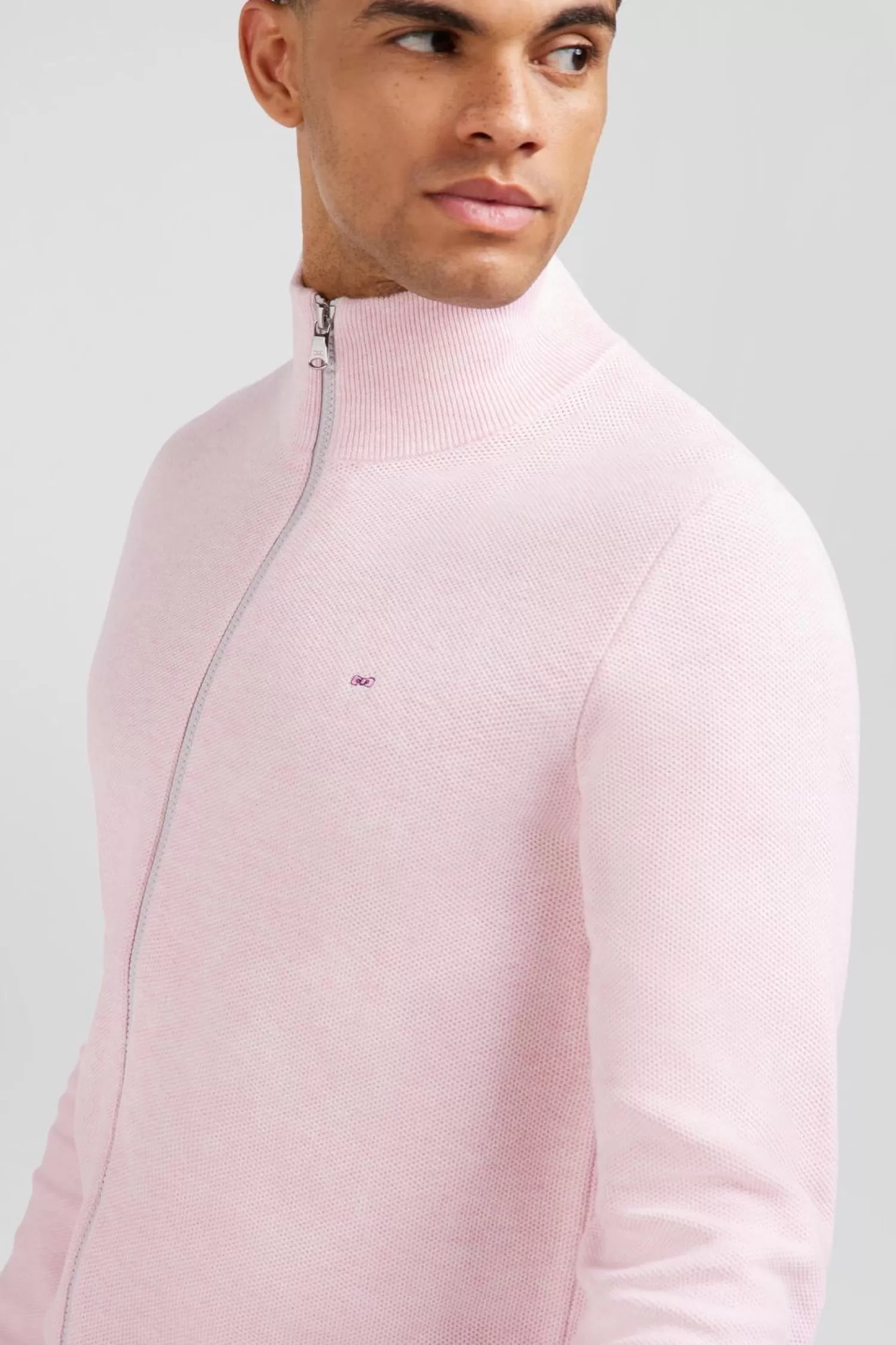 Ce Cardigan Zippé À Col Montant Affiche Un Jeu De Maille Uni Rehaussé Du Logo Nœud Papillon Brodé Sur La Poitrine