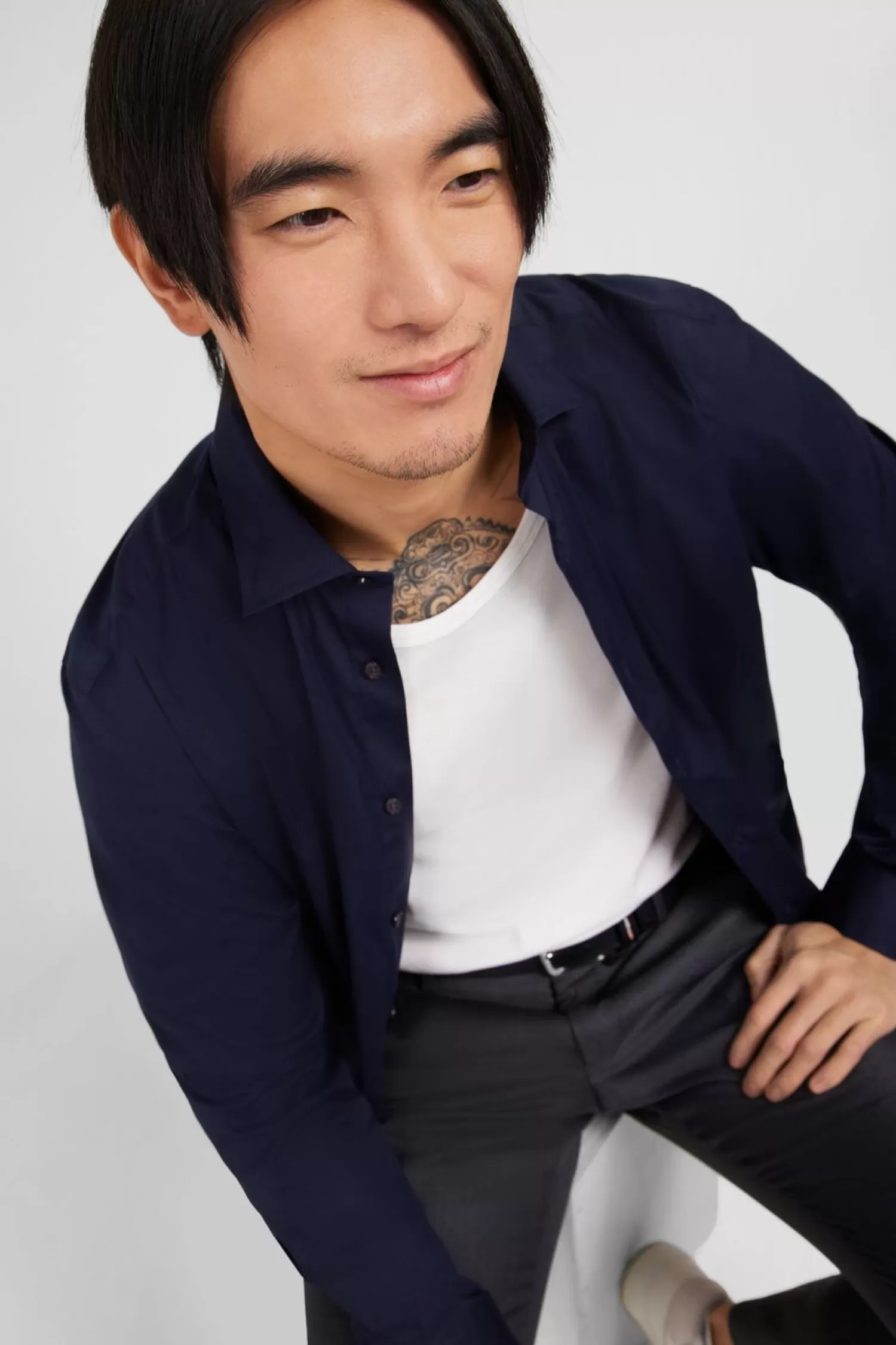 Légère Et Stretch, Cette Chemise Possède Tout Ce Qu’Il Y A De Plus Chic Avec Son Beau Coloris Et Sa Coupe Ajustée. Elle Est Subtilement Rehaussée De L’Emblématique Logo Noeud Papillon Rose, Situé Dans Le Bas À L’Avant