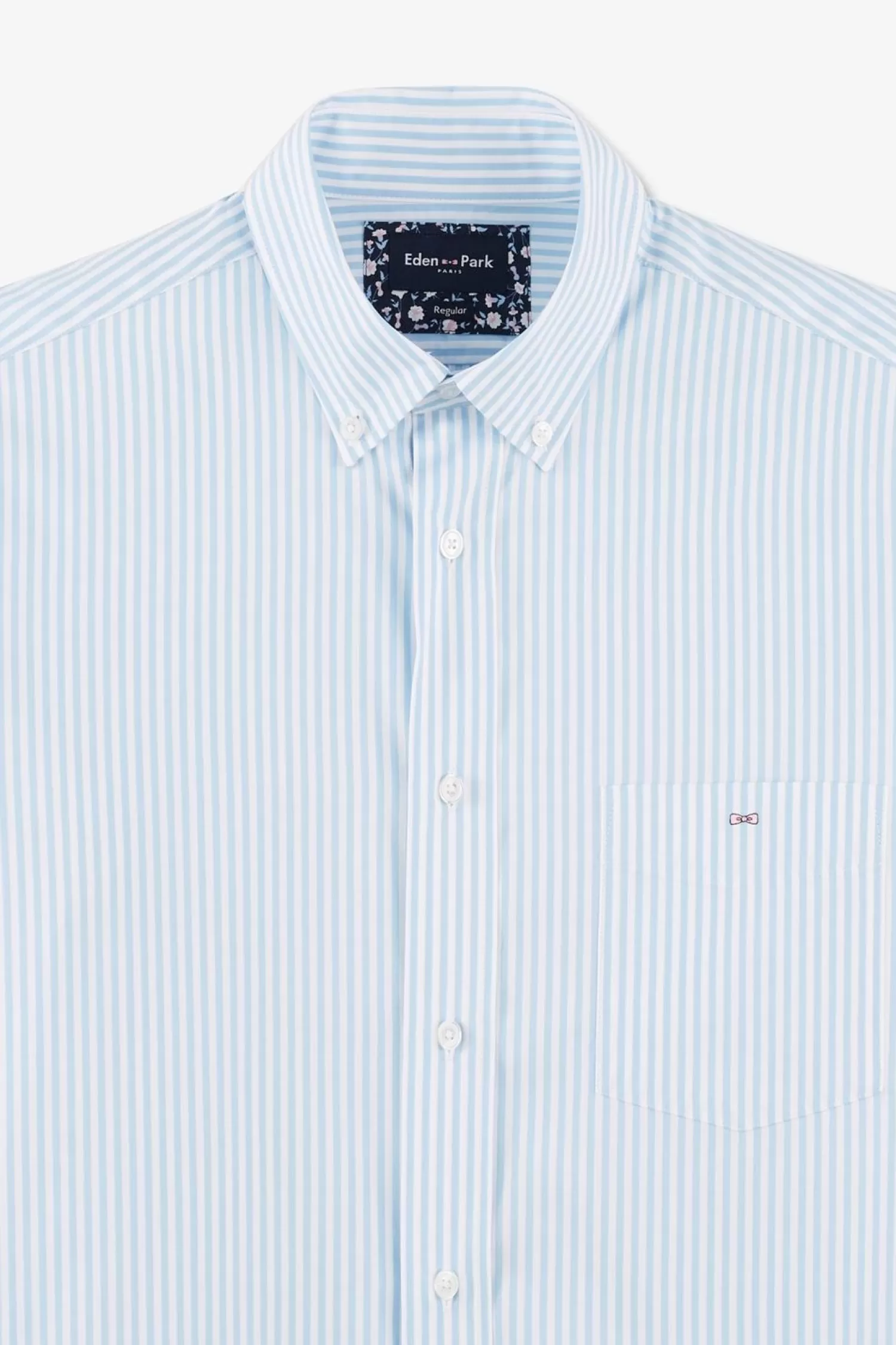 Cette Chemise En Coton Confortable Arbore De Discrètes Rayures Bâtons Pour Une Silhouette Graphique Et Élancée. Cette Chemise Homme Arbore Une Poche Plaquée Décontractée Et Un Imprimé Façon Liberty Sous Sa Griffe Eden Park Comme En Guise D’Hirondelle En Bas De Pièce.