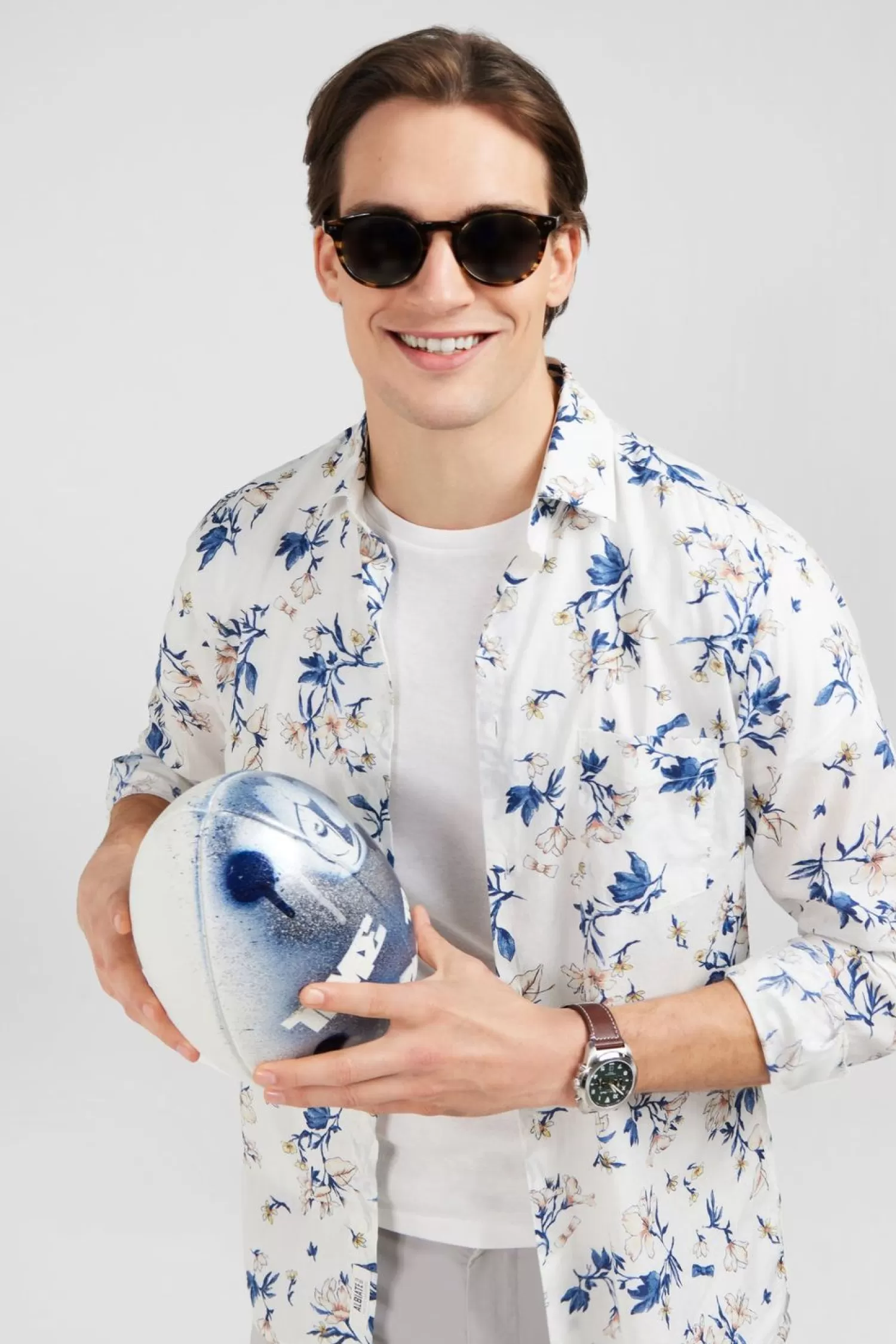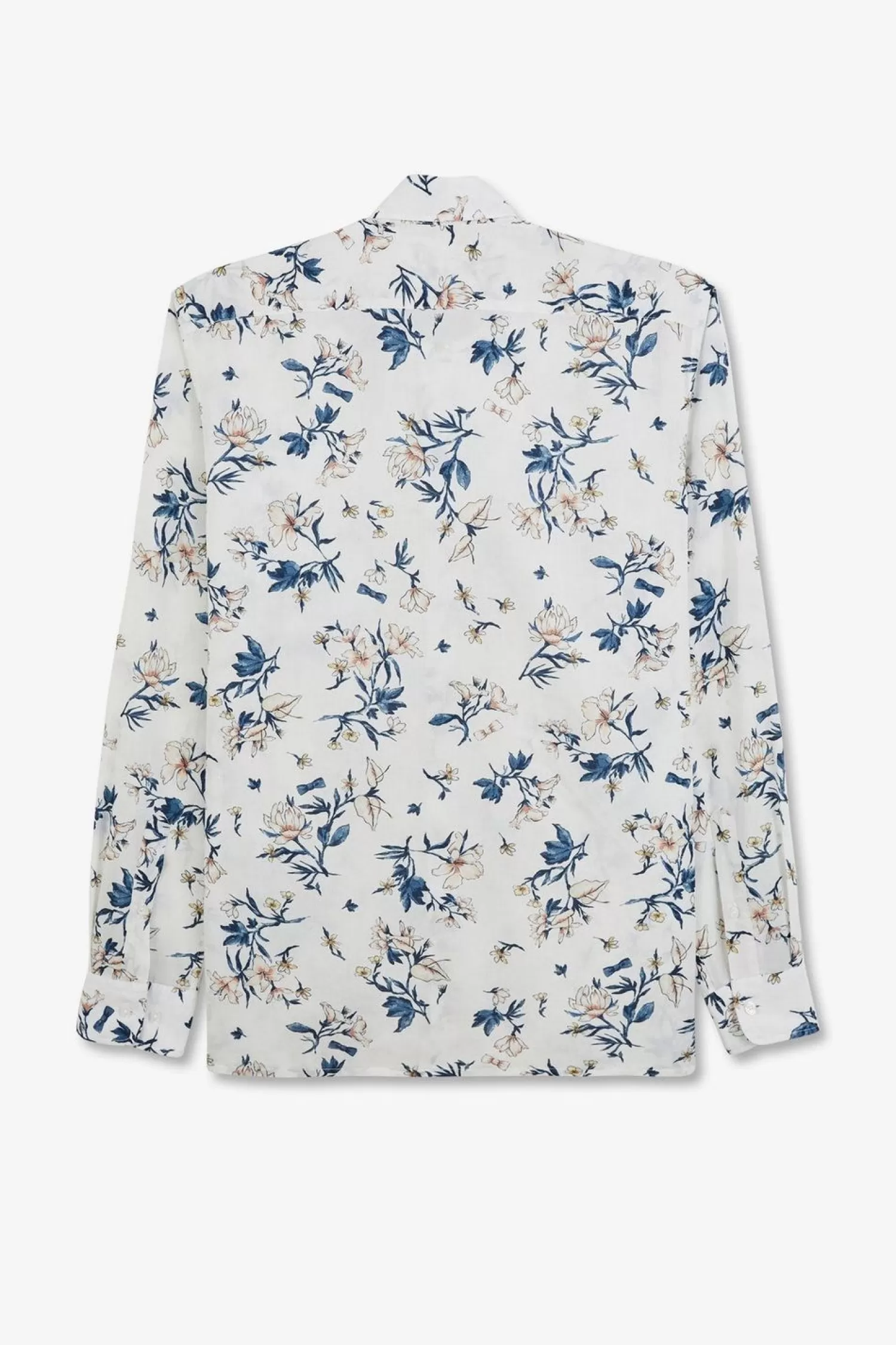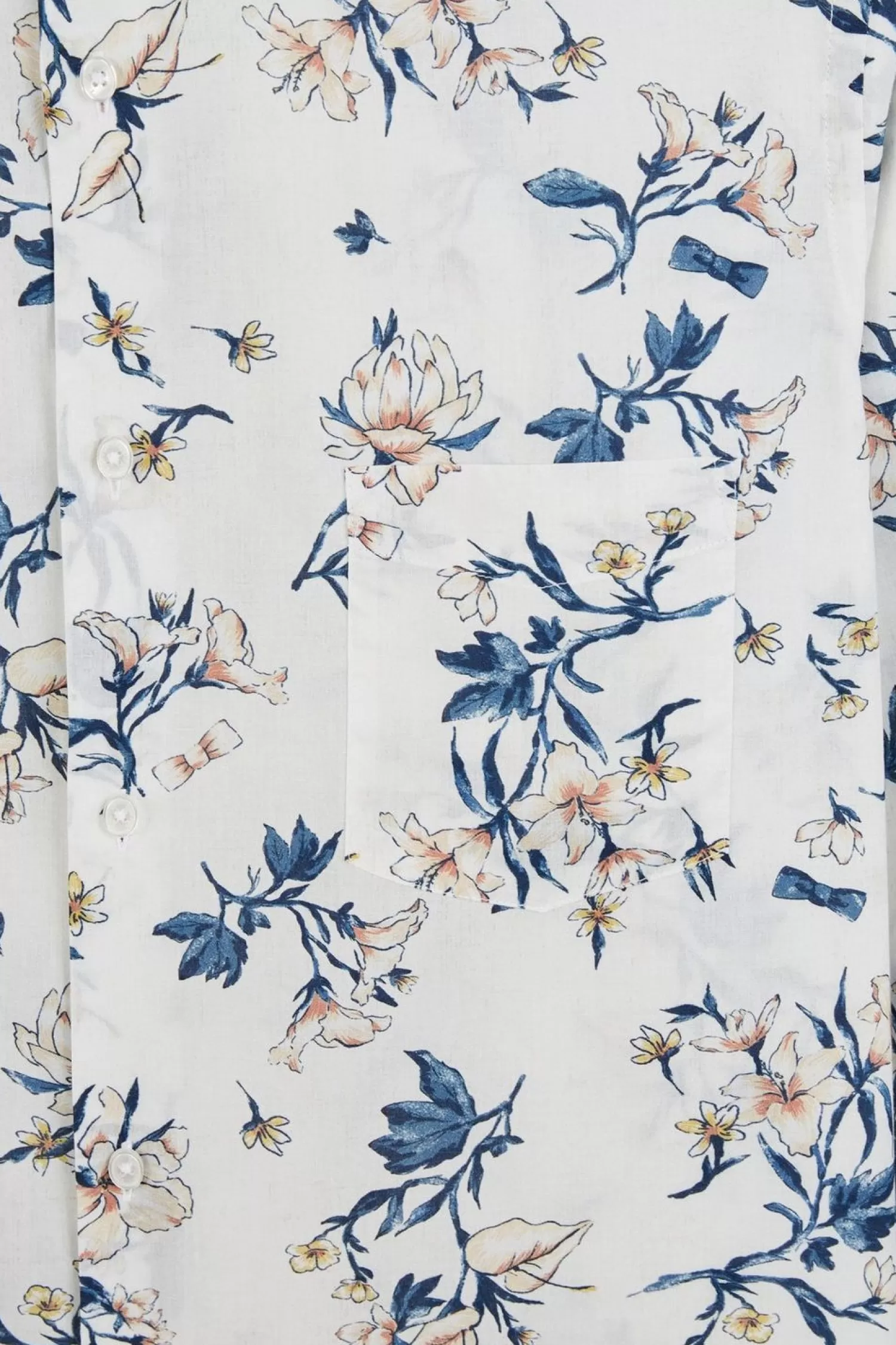 Style Et Confort Sont Au Rendez-Vous Avec Cette Jolie Chemise En Popeline Imprimée Exclusif Fleurs. Elle Est Dotée D’Une Poche Plaquée Et D’Un Logo Nœud Papillon Brodé En Bas De Corps