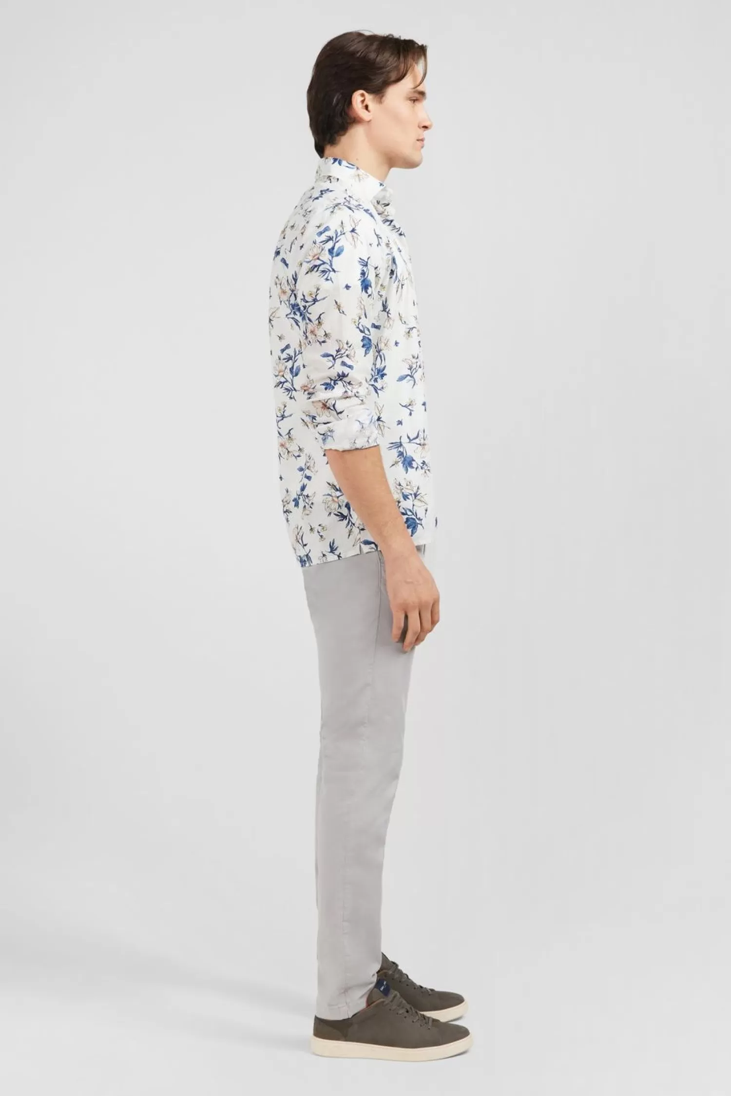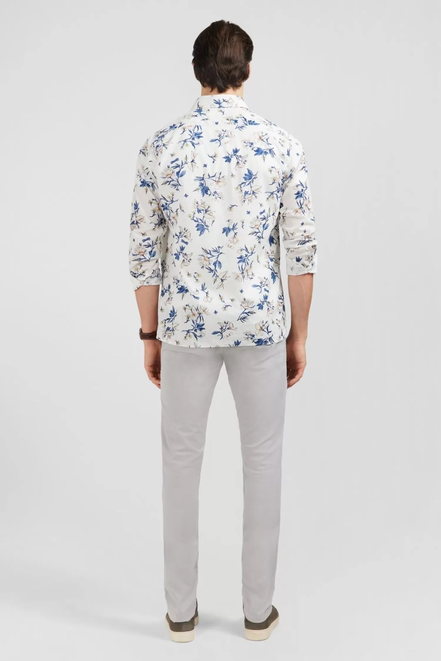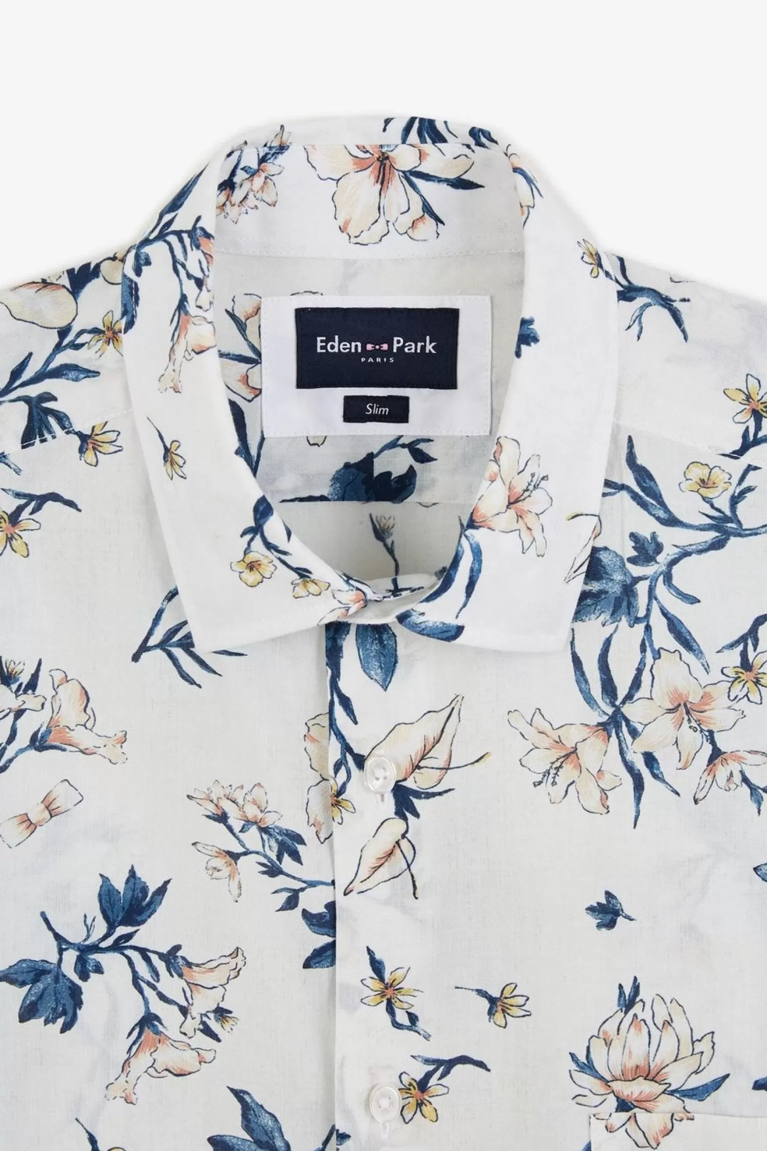 Style Et Confort Sont Au Rendez-Vous Avec Cette Jolie Chemise En Popeline Imprimée Exclusif Fleurs. Elle Est Dotée D’Une Poche Plaquée Et D’Un Logo Nœud Papillon Brodé En Bas De Corps