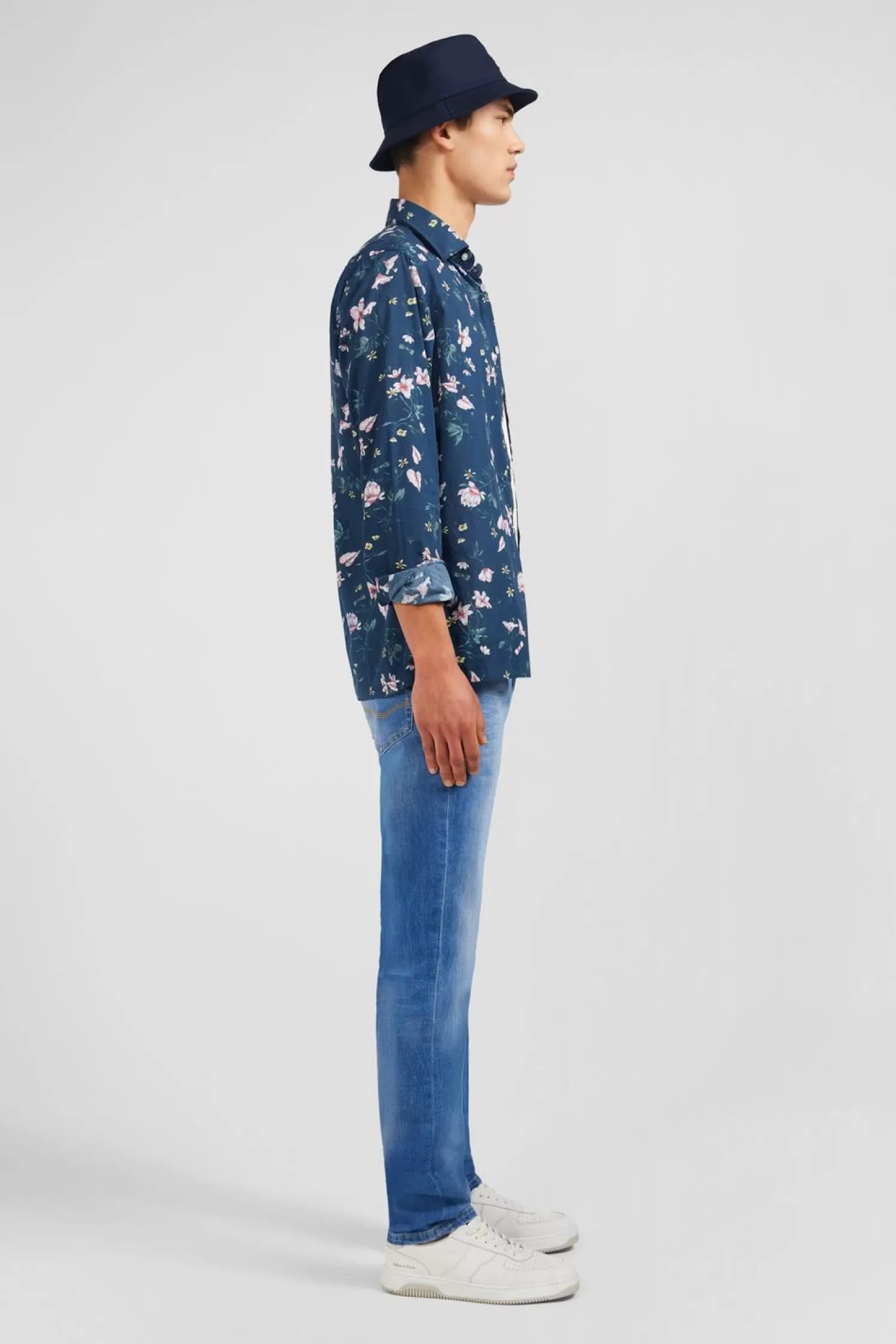 Style Et Confort Sont Au Rendez-Vous Avec Cette Jolie Chemise En Popeline Imprimée Exclusif Fleurs. Elle Est Dotée D’Une Poche Plaquée Et D’Un Logo Nœud Papillon Brodé En Bas De Corps