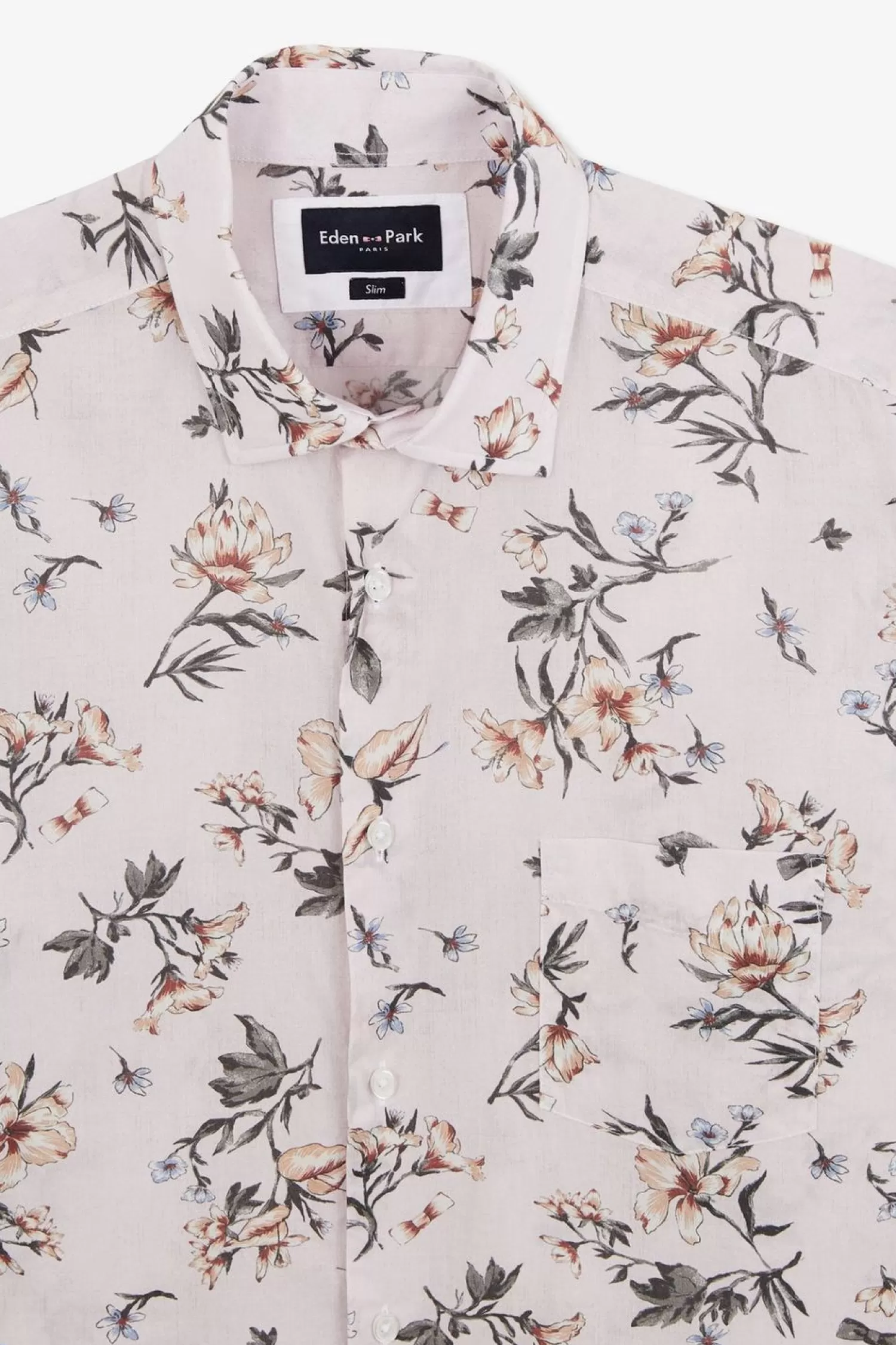 Style Et Confort Sont Au Rendez-Vous Avec Cette Jolie Chemise En Popeline Imprimée Exclusif Fleurs. Elle Est Dotée D’Une Poche Plaquée Et D’Un Logo Nœud Papillon Brodé En Bas De Corps