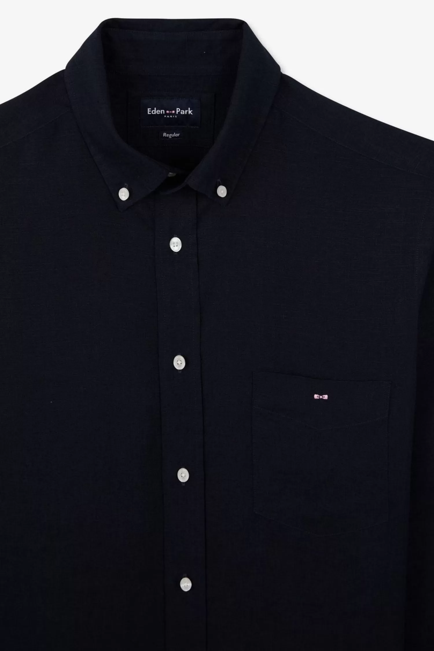 Cette Chemise Unie En Lin Se Pare D’Une Poche Plaquée À La Poitrine Avec Le Logo Noeud Papillon Brodé Et D’Un Col À Pointes Boutonnées