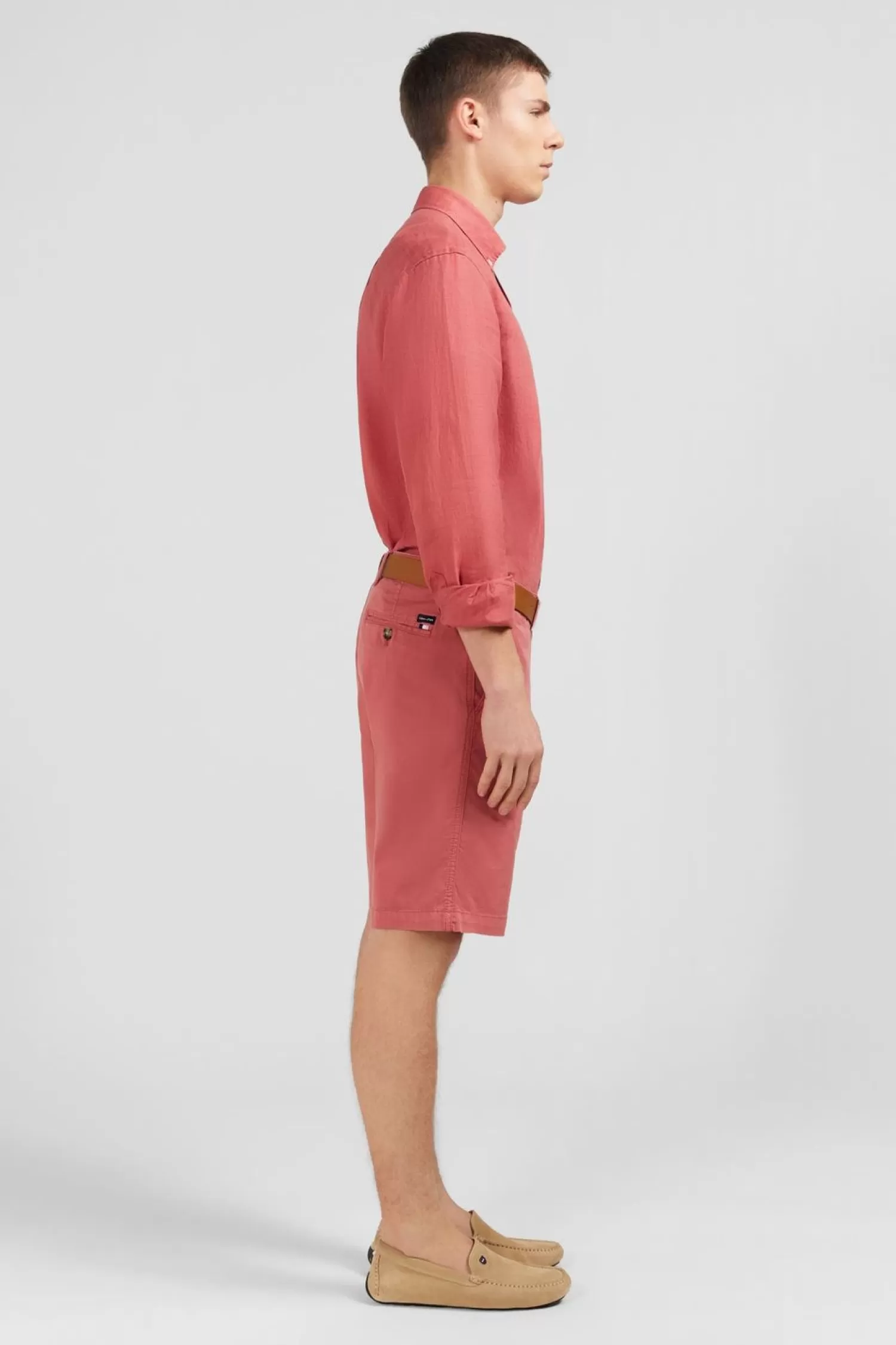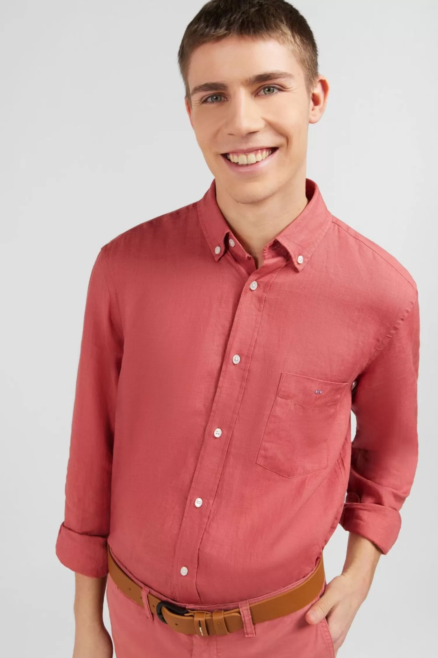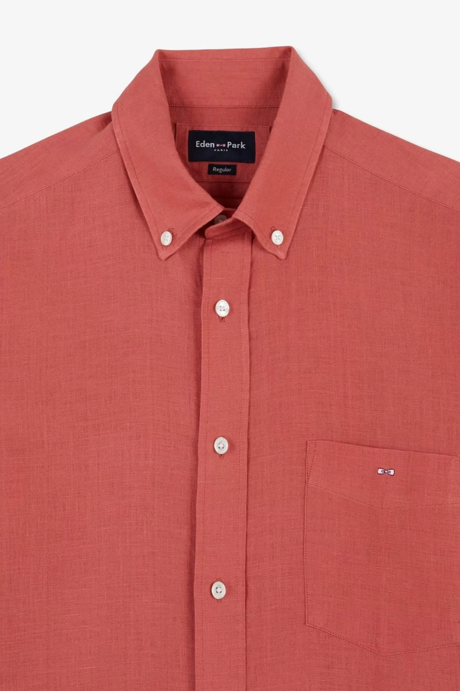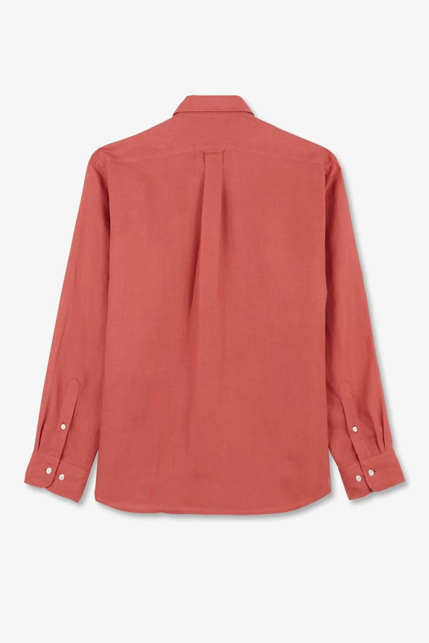 Cette Chemise Unie En Lin Se Pare D’Une Poche Plaquée À La Poitrine Avec Le Logo Noeud Papillon Brodé Et D’Un Col À Pointes Boutonnées