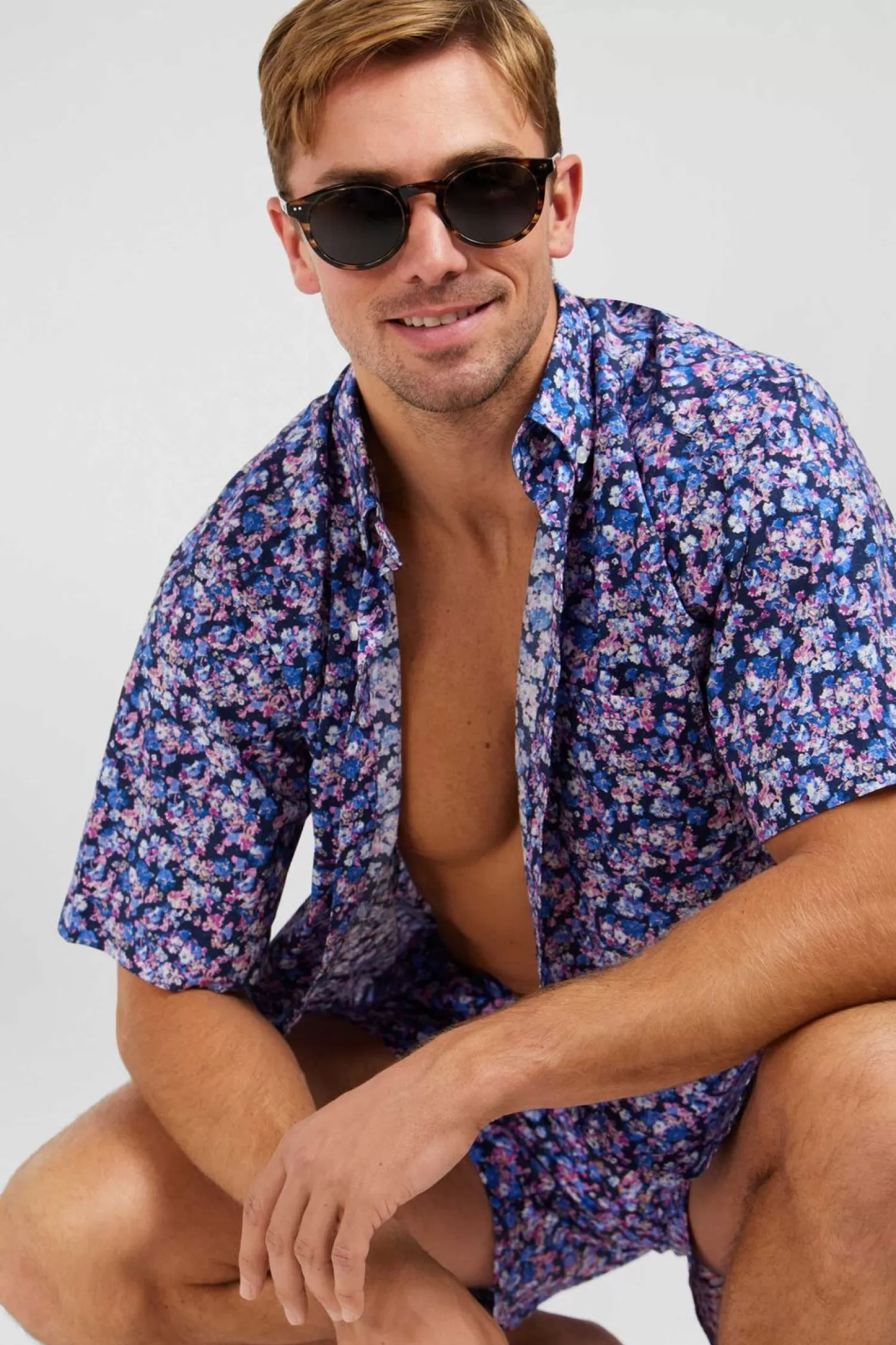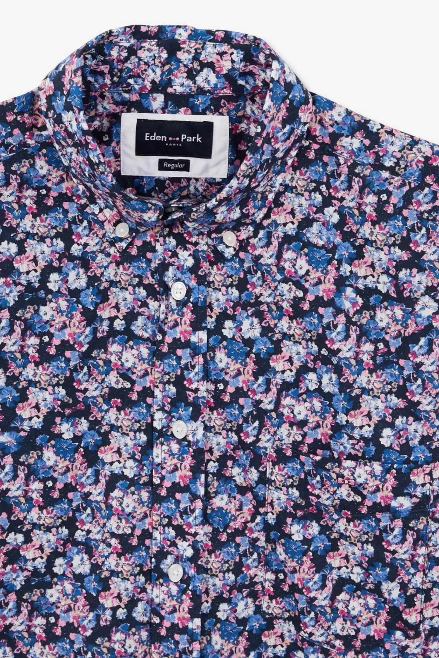 Cette Chemisette À Imprimé Exclusif Fleuri Se Pare D’Une Poche Plaquée À La Poitrine Avec Nœud Papillon Brodé Et D’Un Col À Pointes Boutonnées