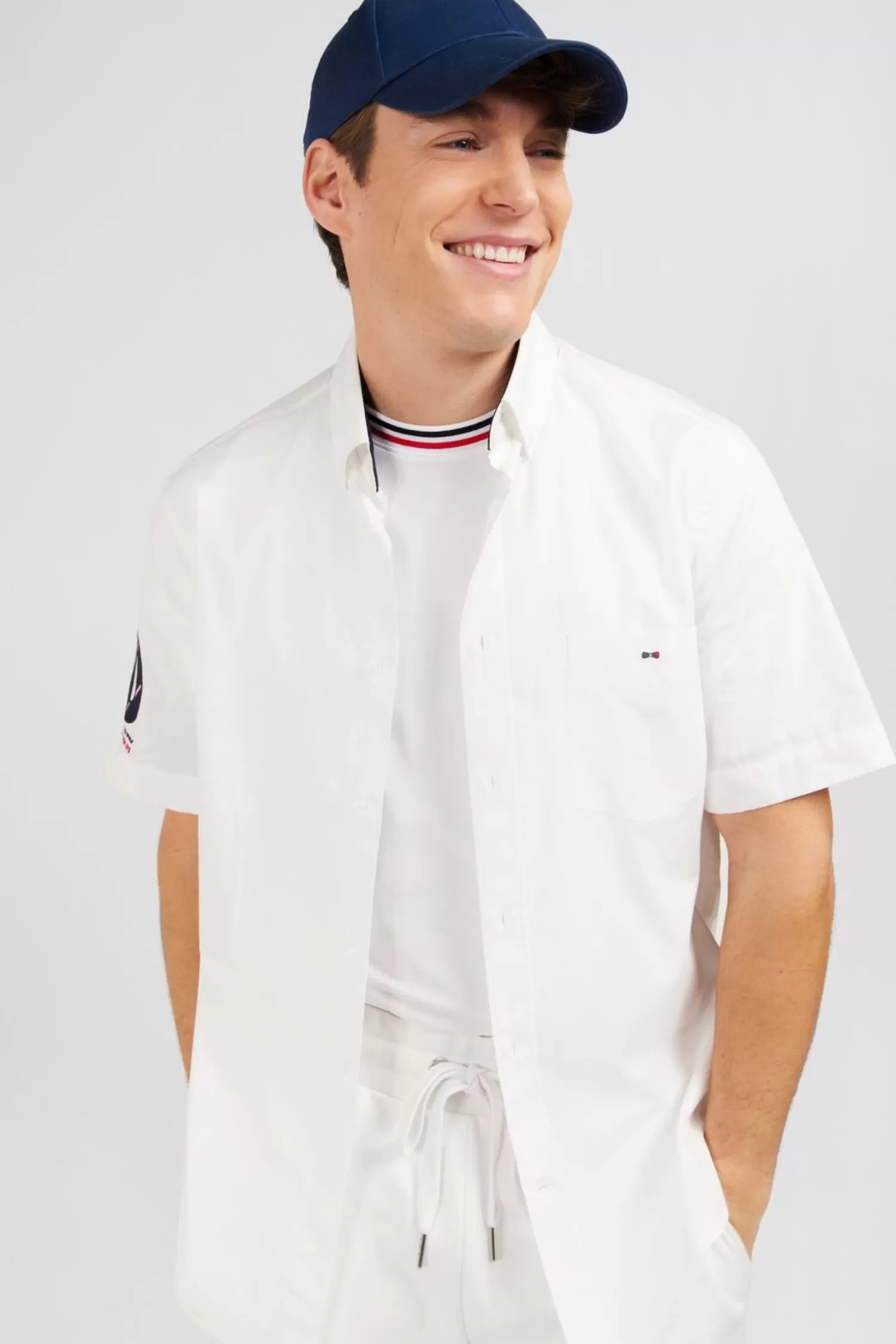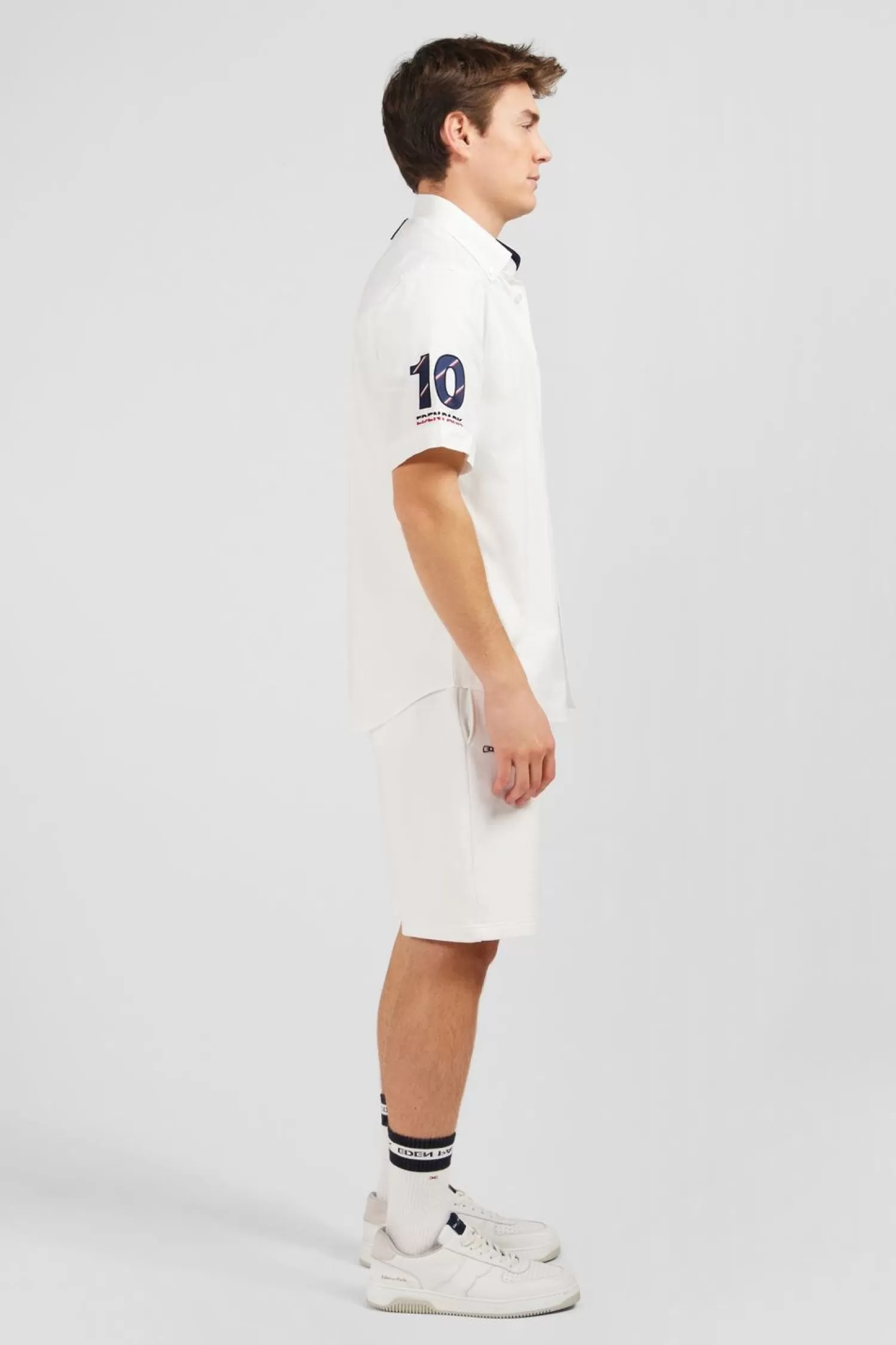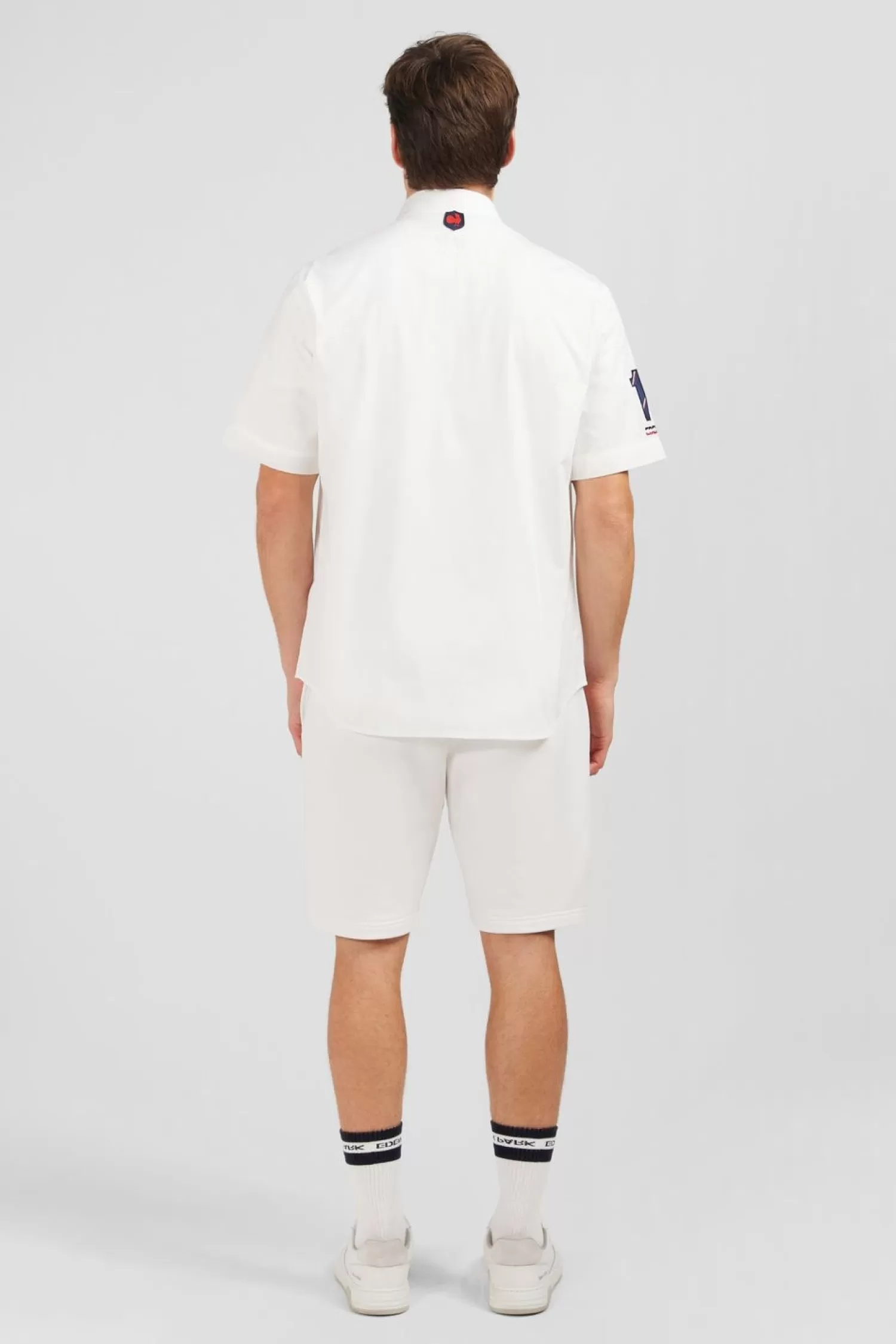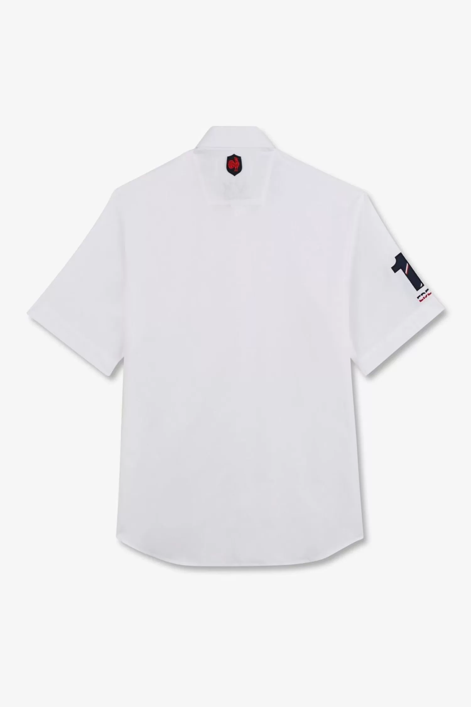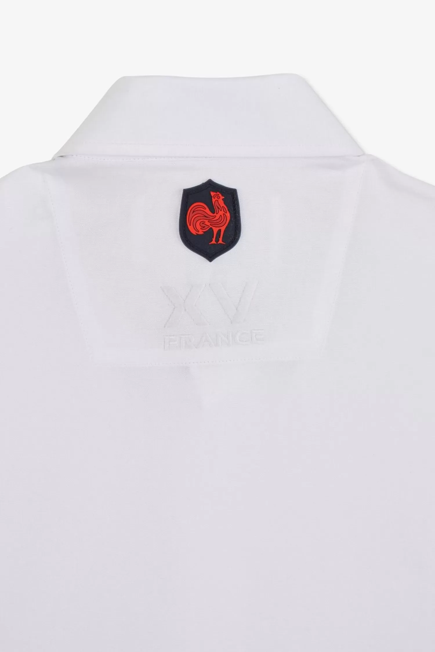 Cette Chemisette Unie Est Brodée Aux Couleurs Du Xv De France Sur La Manche Et Dans Le Dos. Elle Possède Une Poche Plaquée Sur La Poitrine, Agrémentée D’Une Broderie Nœud Papillon Tricolore