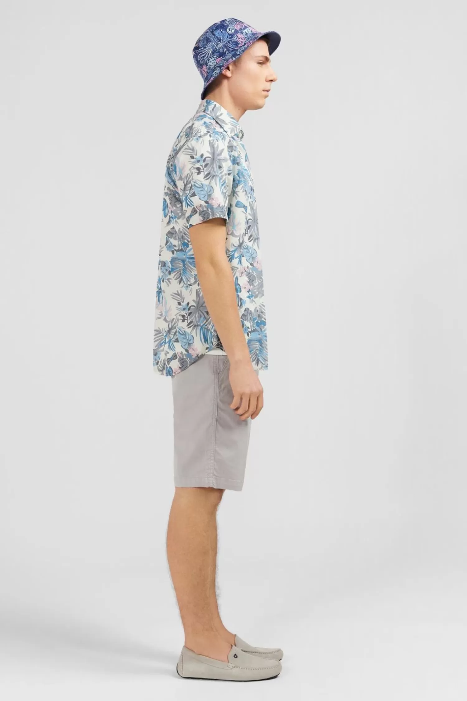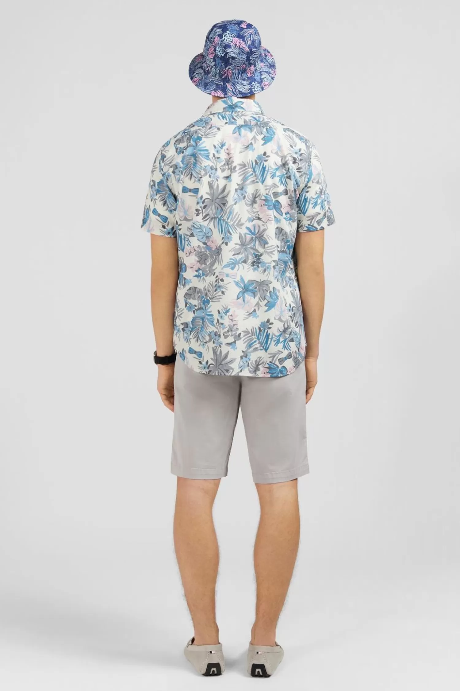 Tissée En Coton, Cette Chemisette Affiche Un Joli Imprimé Feuilles Exclusif Qui Dissimule Un Nœud Papillon Rose Subtilement Brodé En Bas De Corps
