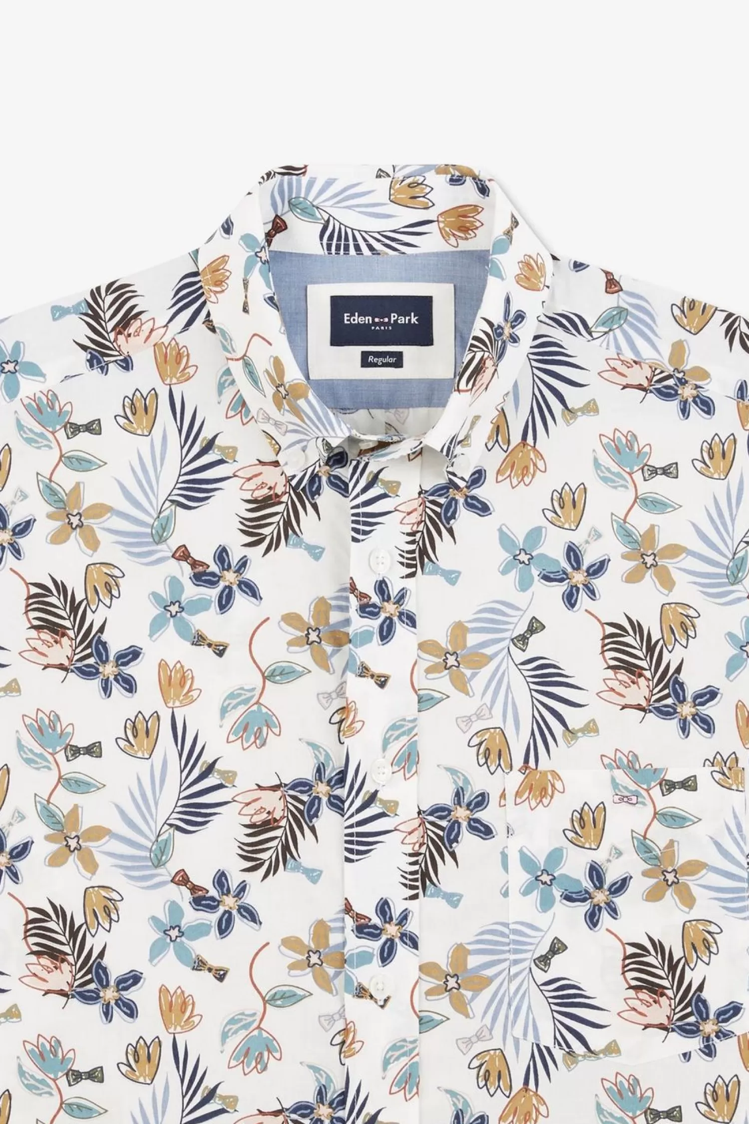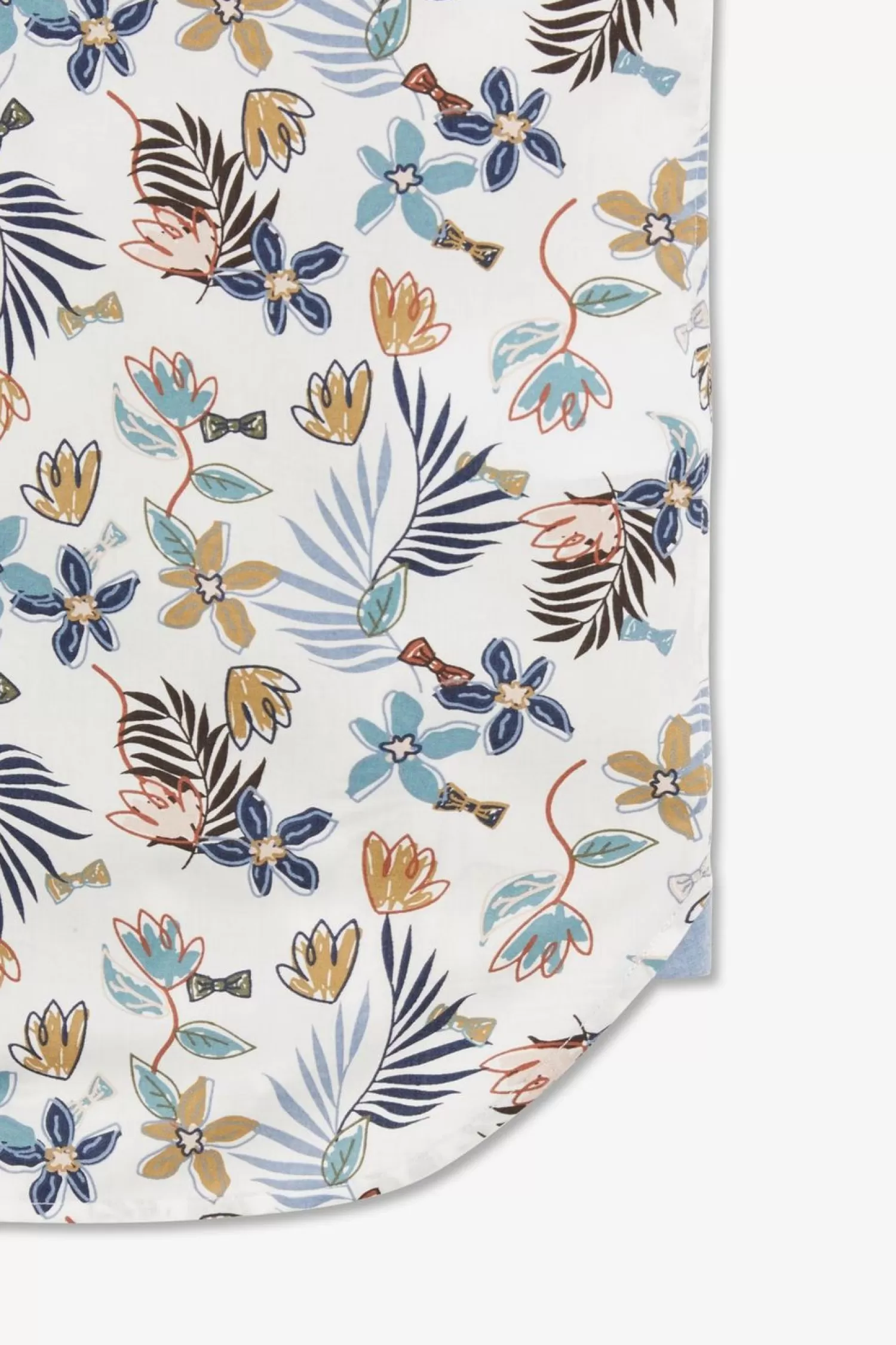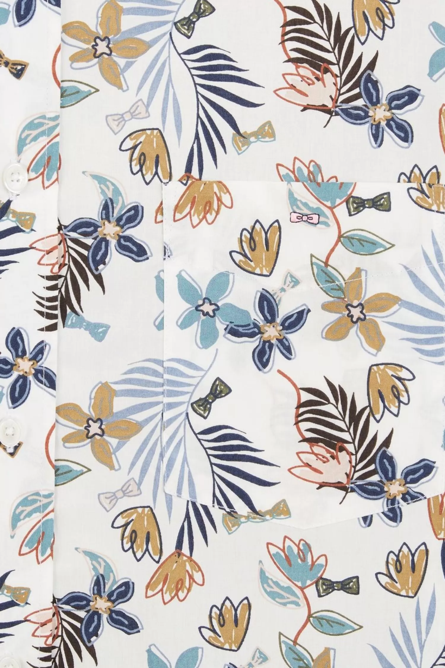 Cette Chemisette Affiche Un Joli Imprimé Exclusif Qui Dissimule Une Poche Plaquée Fondue À La Poitrine Avec Le Noeud Papillon Rose Subtilement Brodé