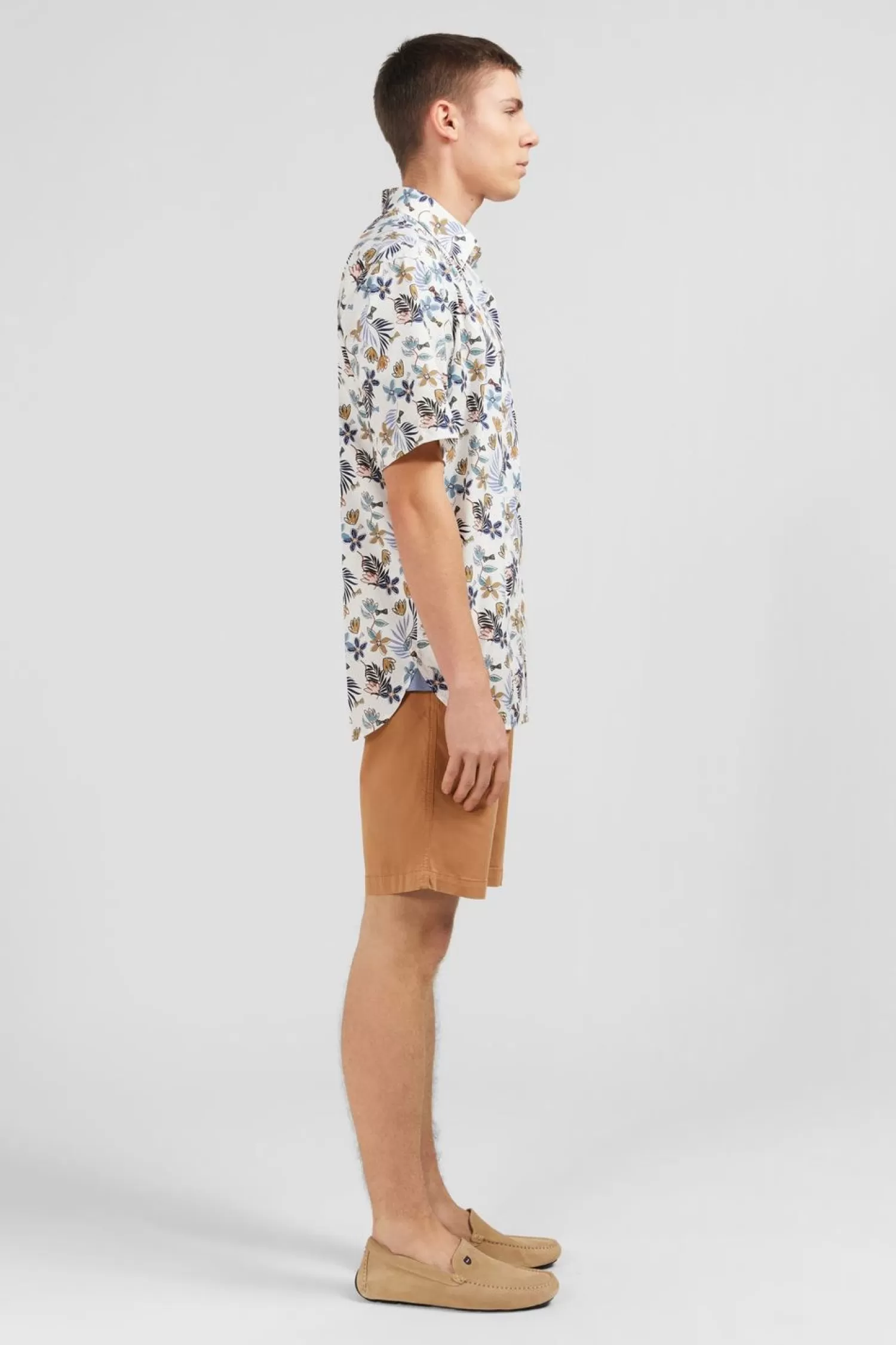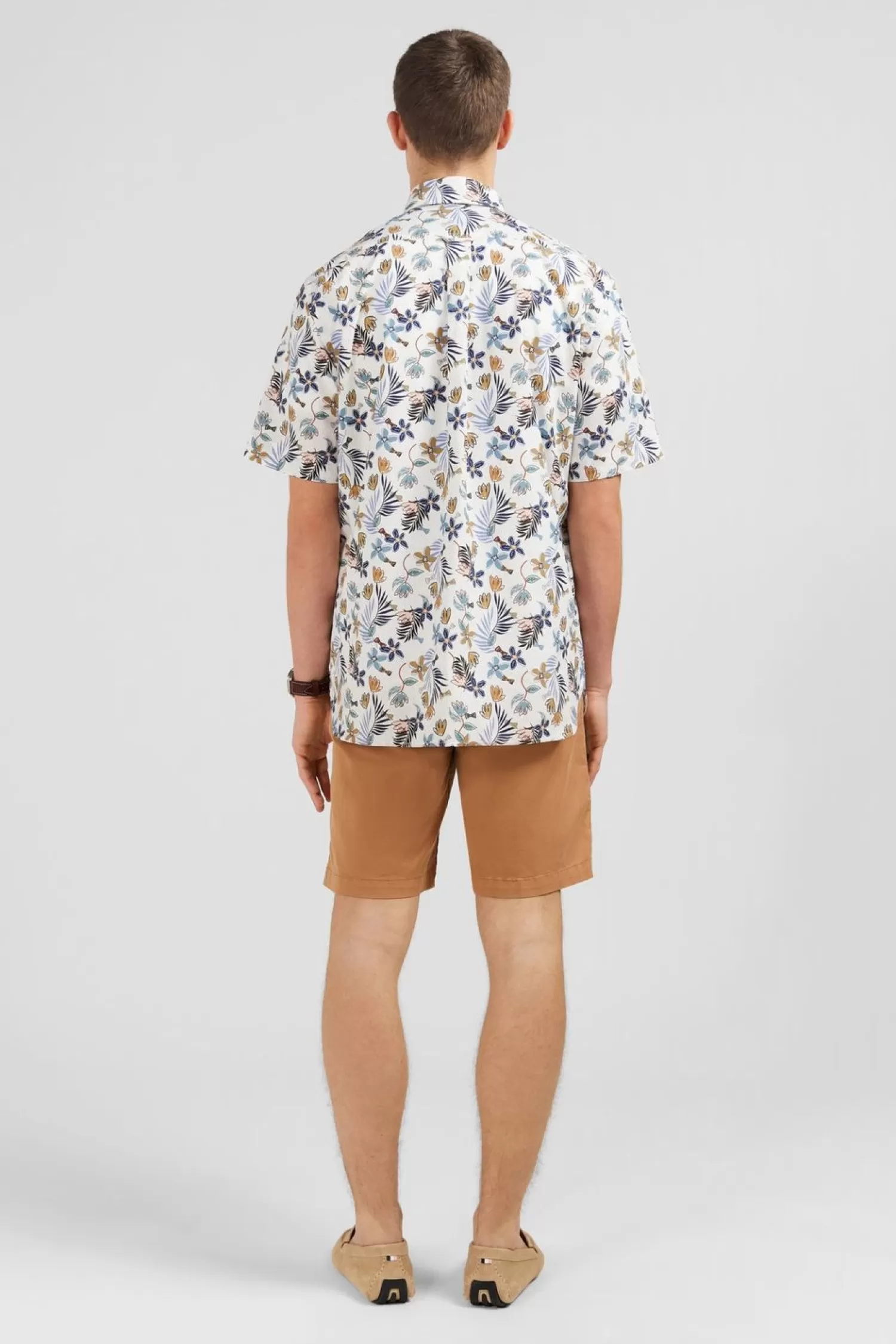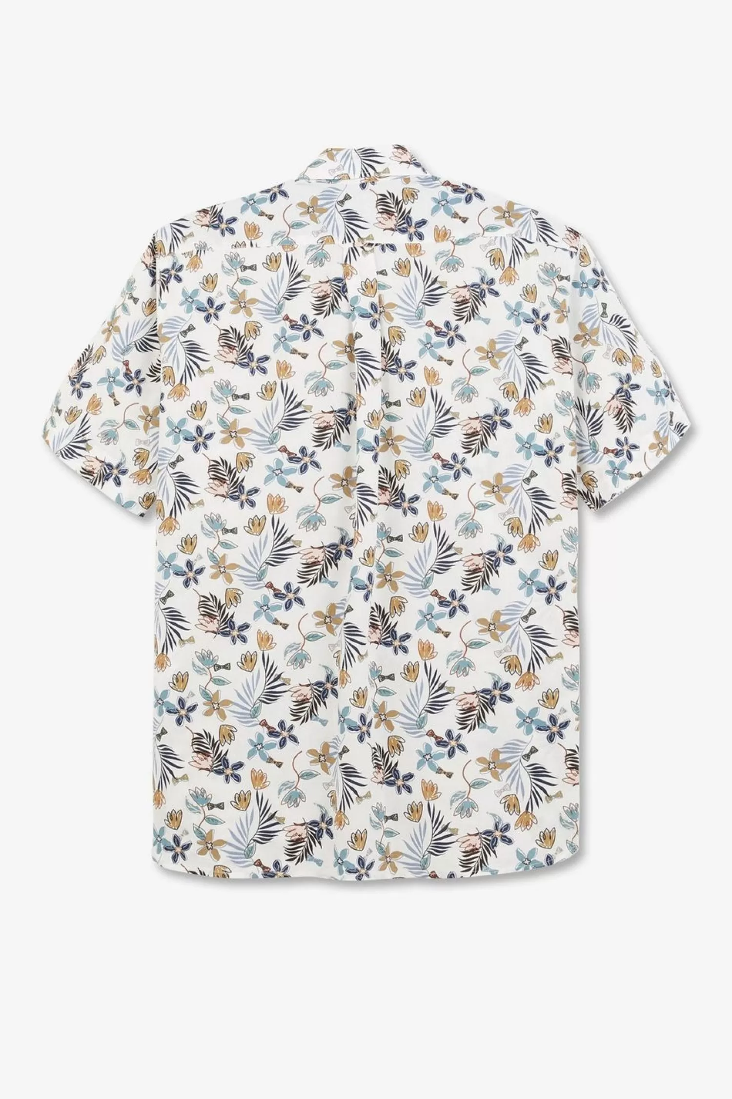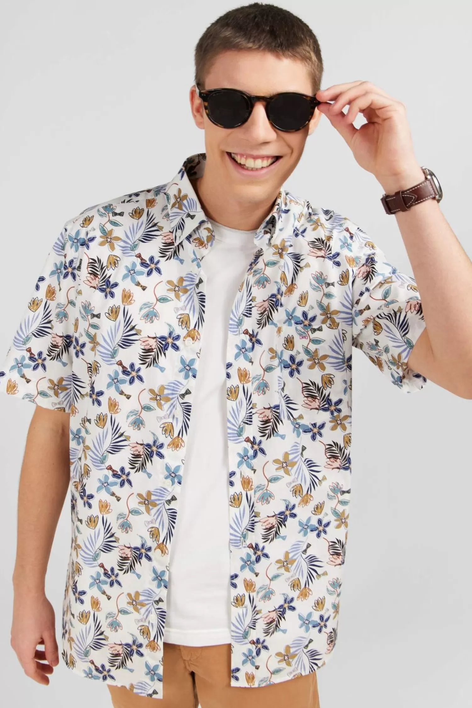Cette Chemisette Affiche Un Joli Imprimé Exclusif Qui Dissimule Une Poche Plaquée Fondue À La Poitrine Avec Le Noeud Papillon Rose Subtilement Brodé