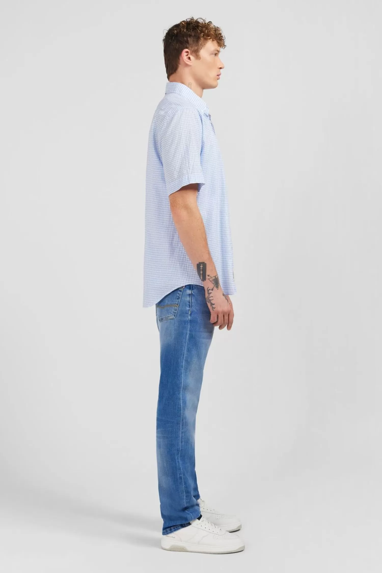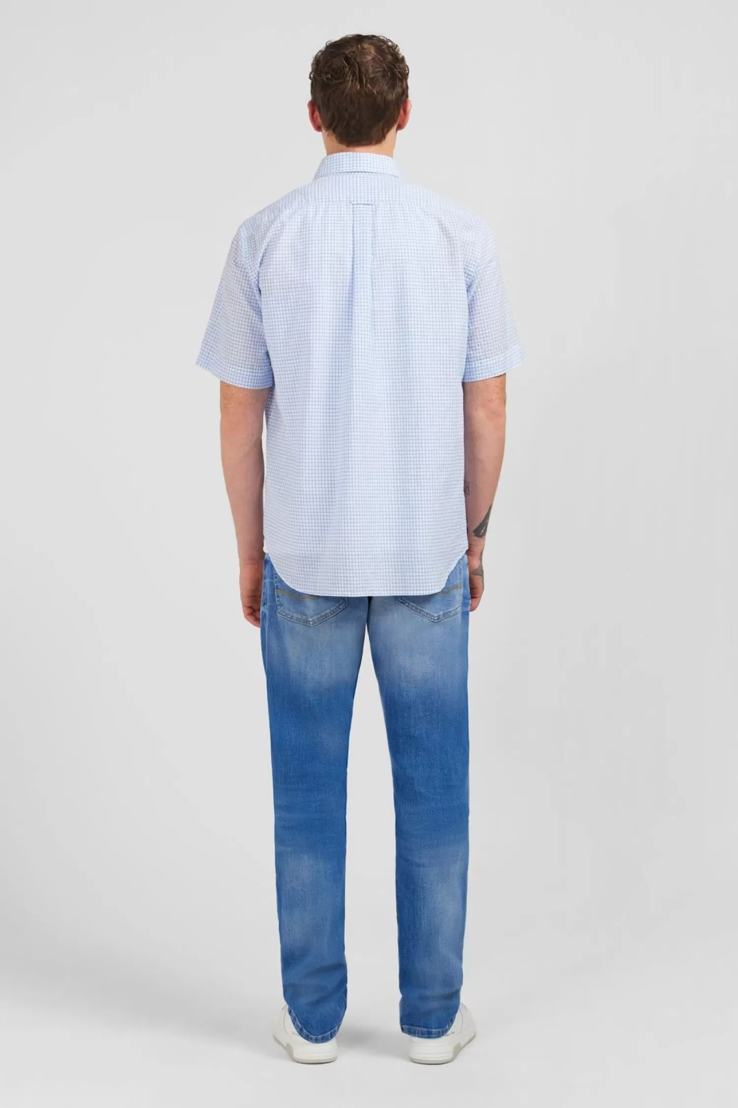 Eden Park Chemisette Bleu Clair A Carreaux En Coton Dobby-Homme Chemisettes