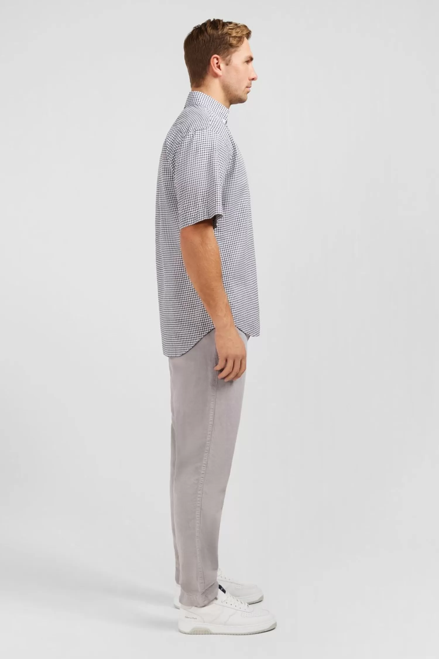 Cette Chemisette Est Conçue Dans Un Joli Coton Dobby Et Présente Un Motif À Carreaux Raffiné À L’Aspect Alvéolé. La Poche Plaquée À La Poitrine Est Dissimulée Grâce À L’Imprimé Exclusif Eden Park Et Affiche L’Emblématique Logo Noeud Papillon Brodé Rose