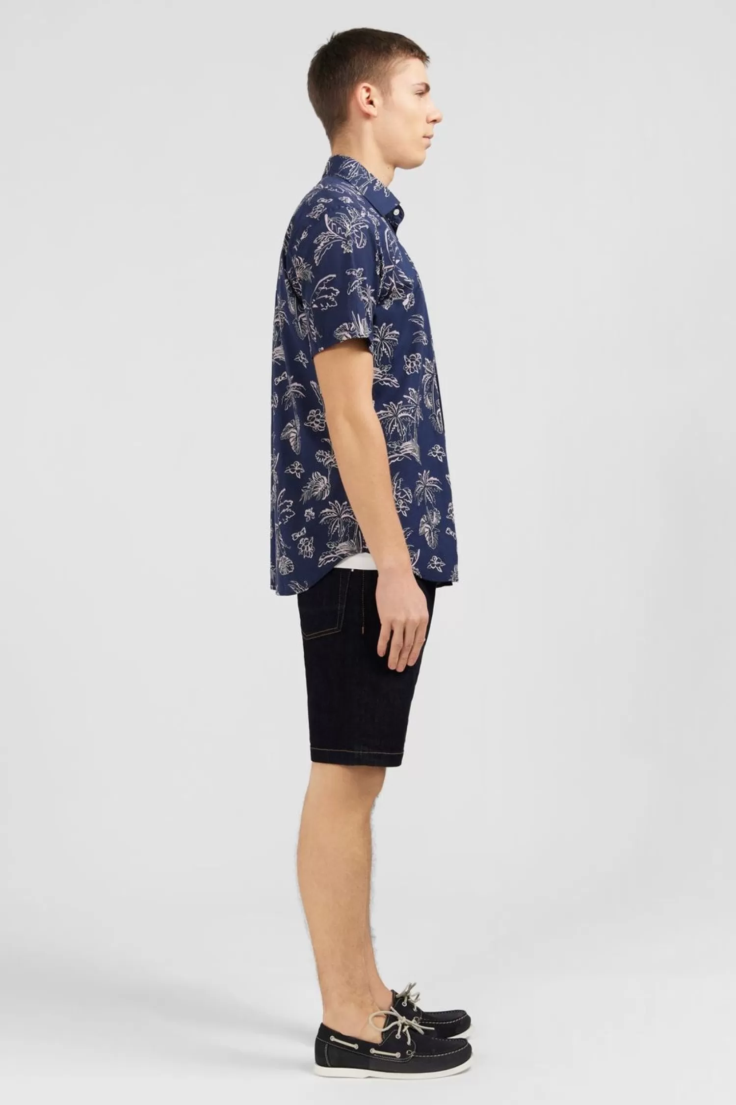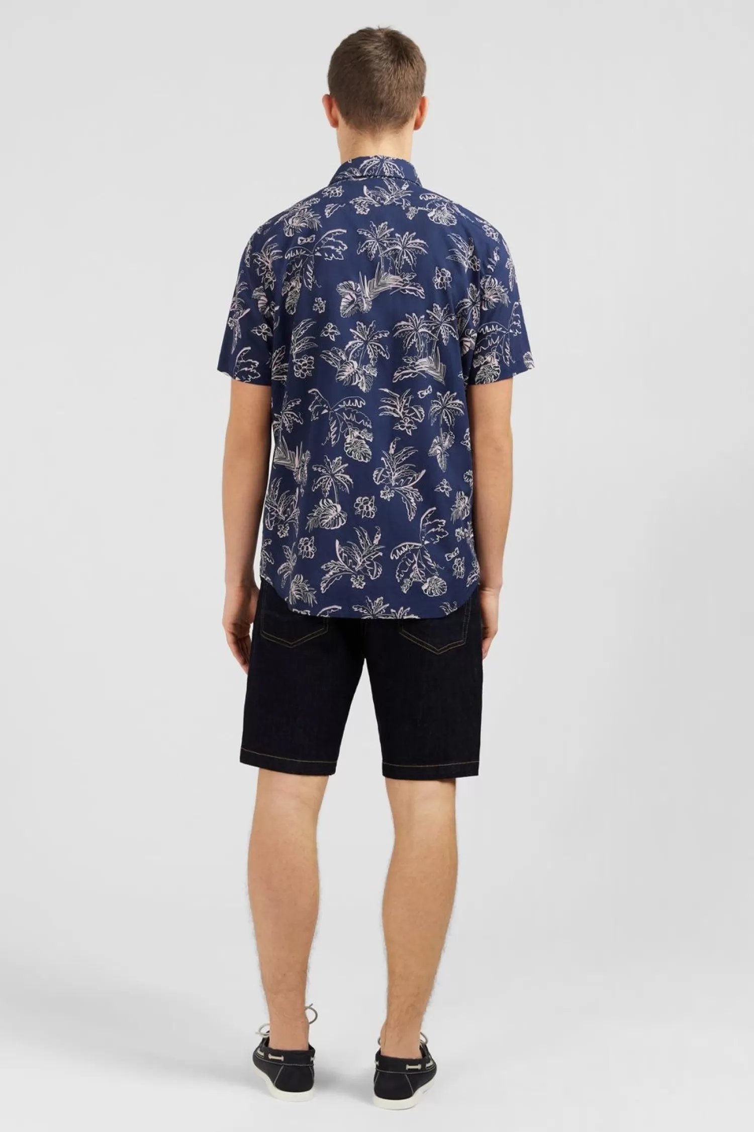 Tissée En Coton, Cette Chemisette Affiche Un Joli Imprimé Feuilles Exclusif Qui Dissimule Un Nœud Papillon Rose Subtilement Brodé En Bas De Corps