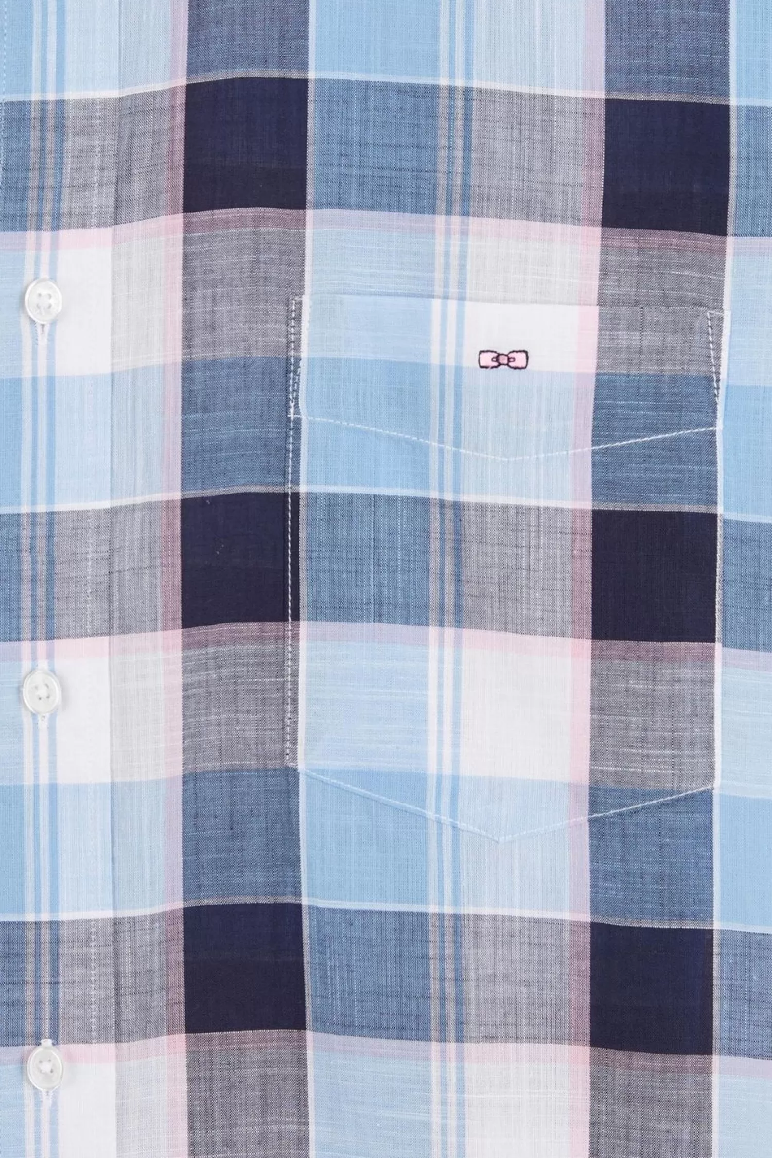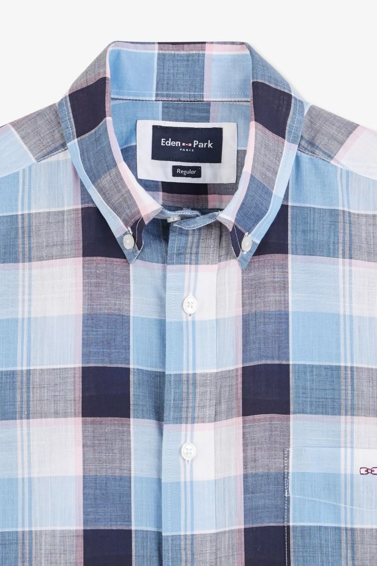 Cette Chemisette En Coton Est Douce Et Agréable À Porter. Elle Présente Un Motif À Carreaux Où Se Fond Une Poche Plaquée Sur La Poitrine, Subtilement Rehaussée D’Une Broderie Nœud Papillon Rose