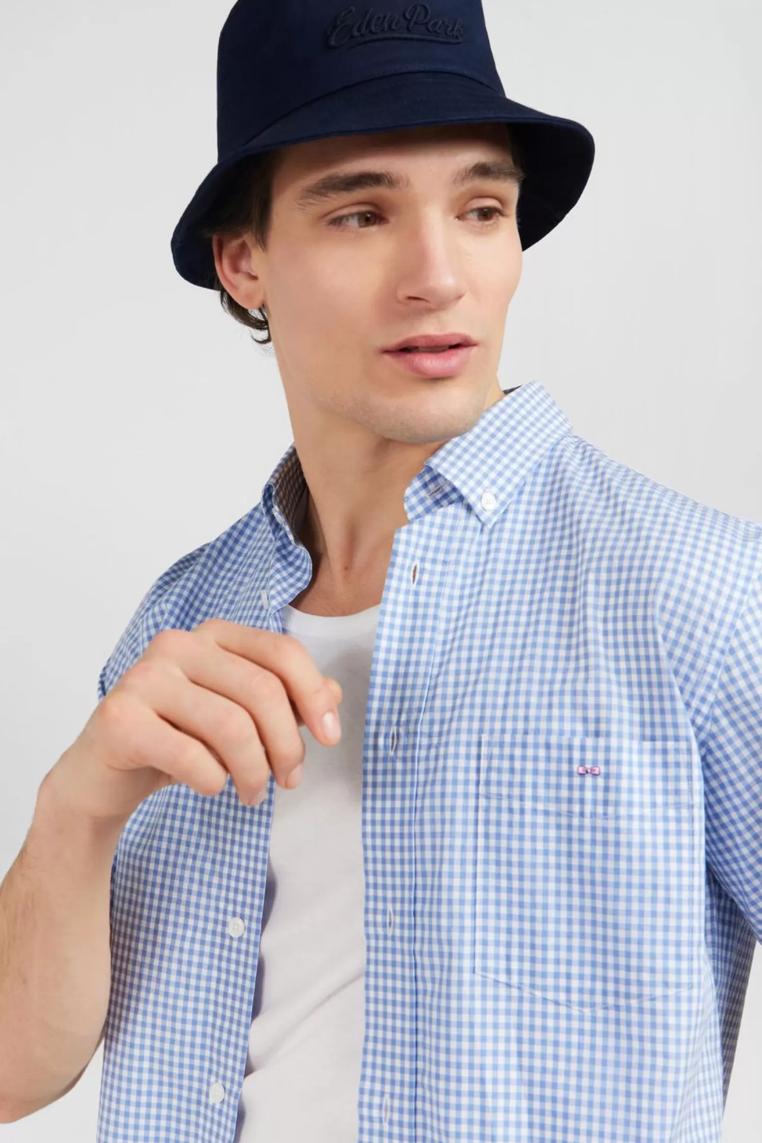 Eden Park Chemisette Bleue A Carreaux-Homme Chemisettes