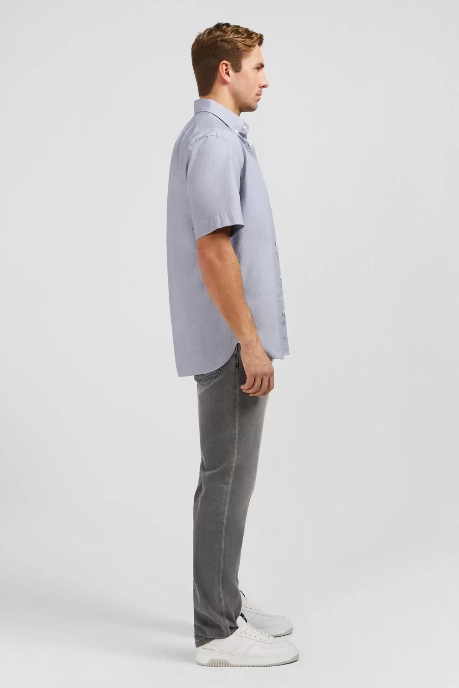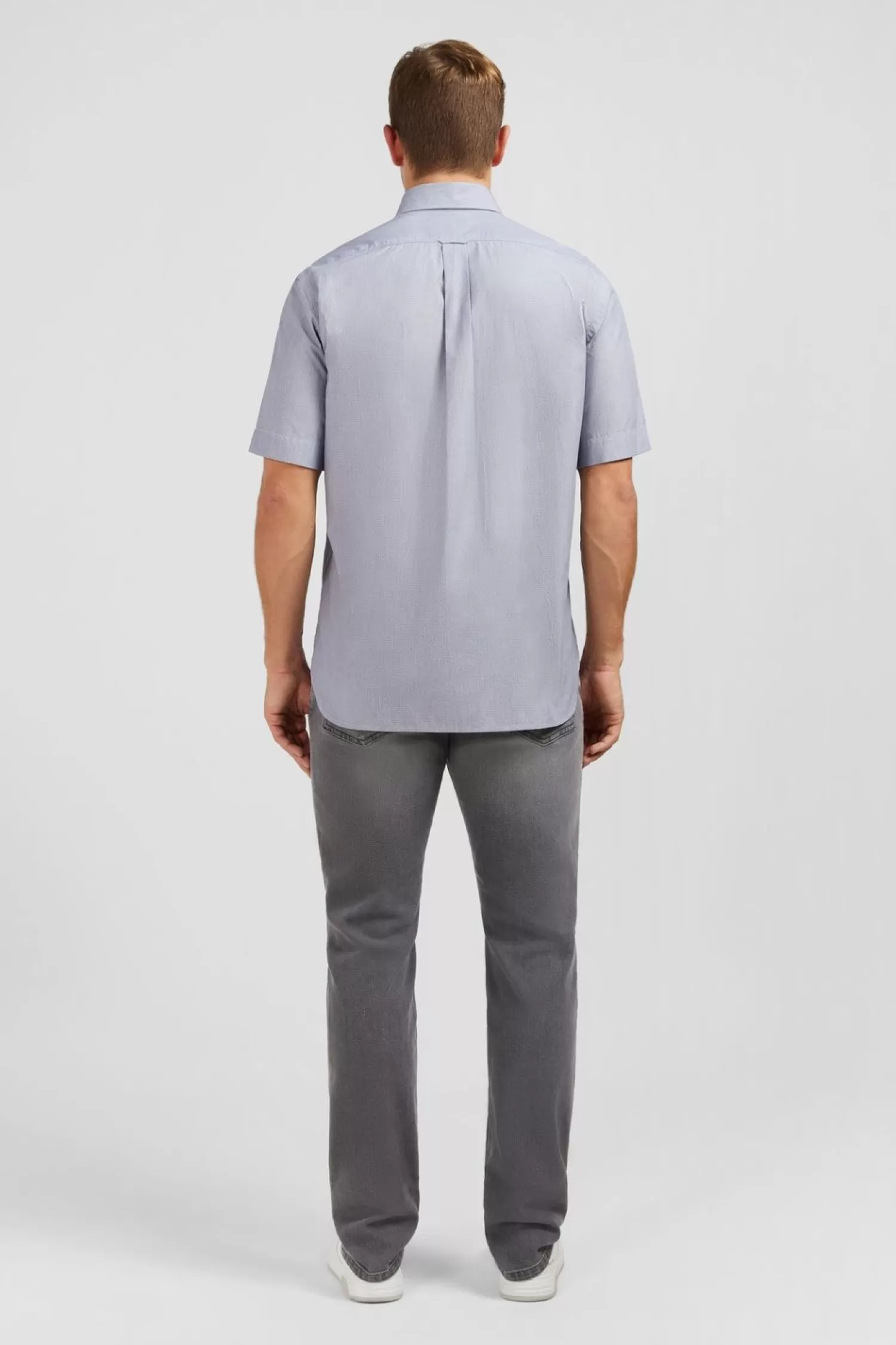 Eden Park Chemisette Bleue En Coton Dobby-Homme Chemisettes