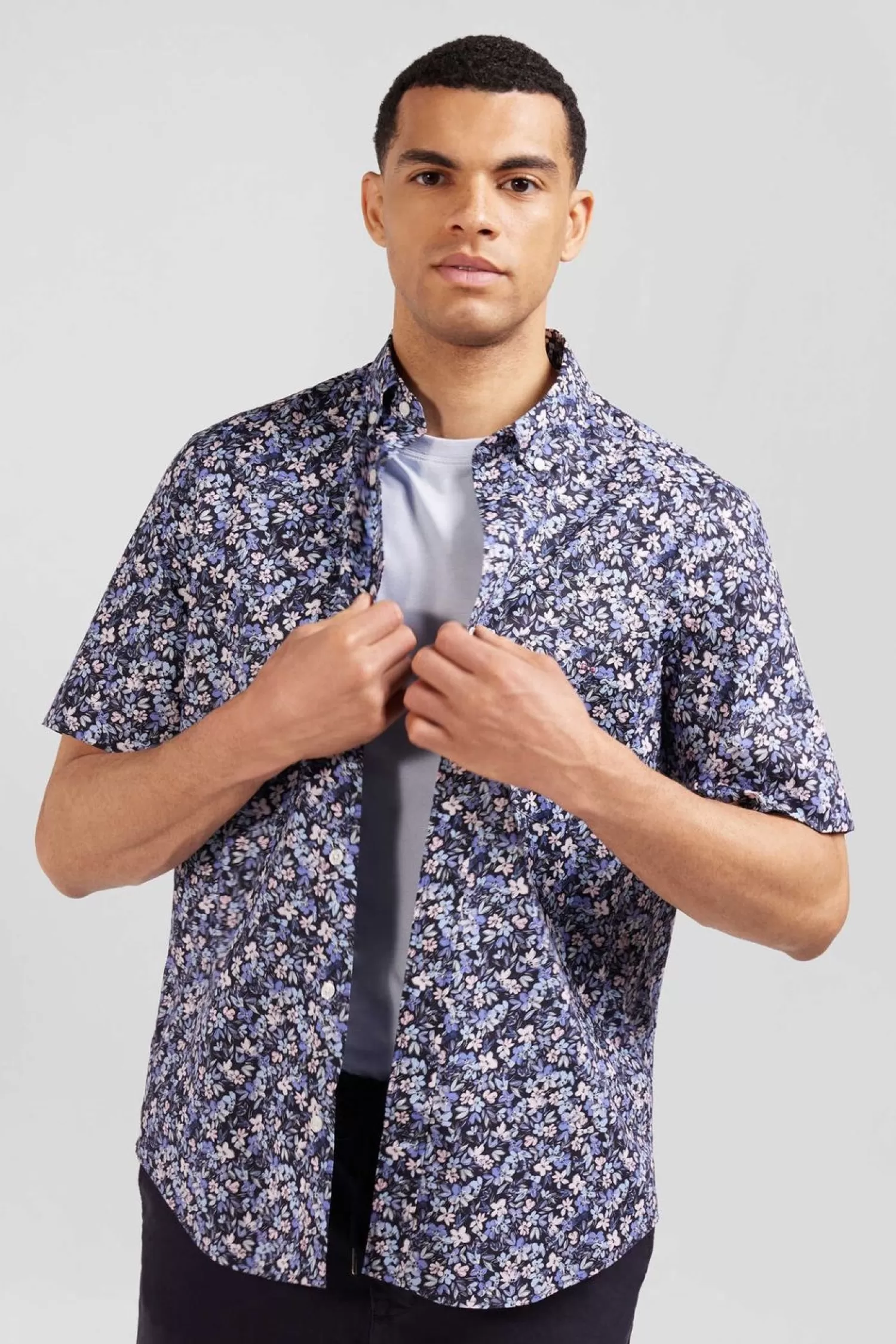 Pour Un Été Élégant Et Décontracté À La Fois, Laissez-Vous Séduire Par Cette Chemise À Manches Courtes Façonnée En Coton Léger Pour Un Confort Optimal. Cette Chemisette Tendance À Poche Plaquée Arbore Un Imprimé Exclusif Sur Un Fond Marine Et S’Associe Aisément À Vos Tenues Estivales, Que Ce Soit Avec Un Jean Ou Un Chino.