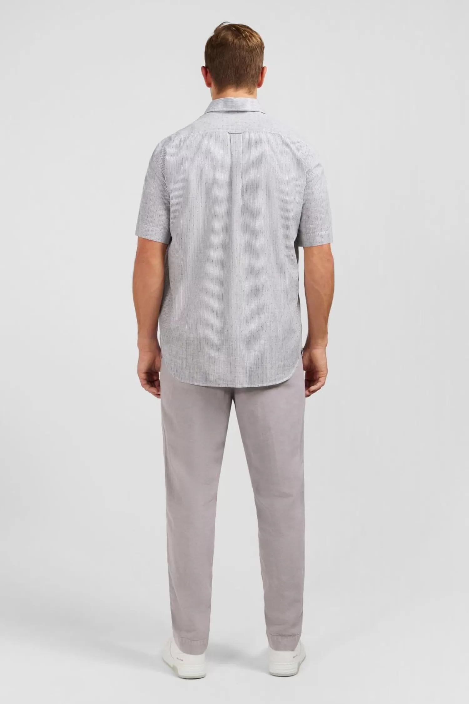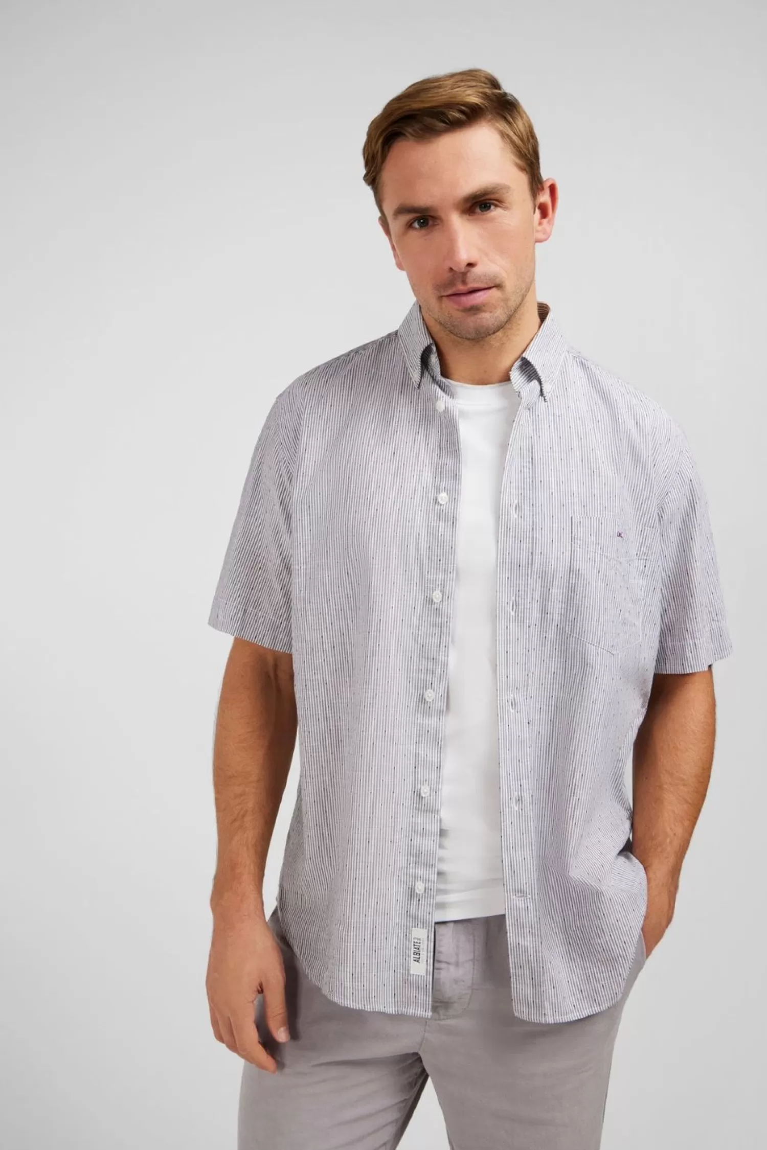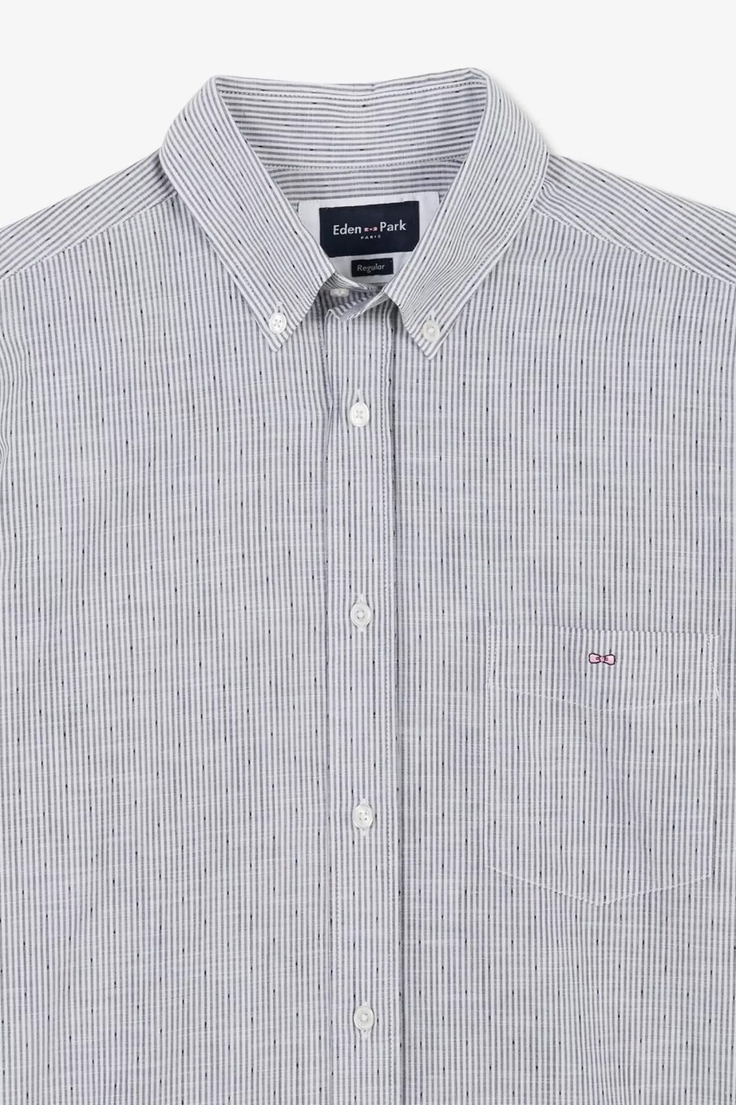 Cette Chemisette Rayée En Coton Dobby Est Symbole D’Élégance Et De Raffinement. Ses Rayure Subtilement Tissées Ajoutentune Touche De Sophistication À La Tenue. On Note La Poche Plaquée Dissumulée À La Poitrine Agrémentée D’Un Logo Noued Papillon Brodé