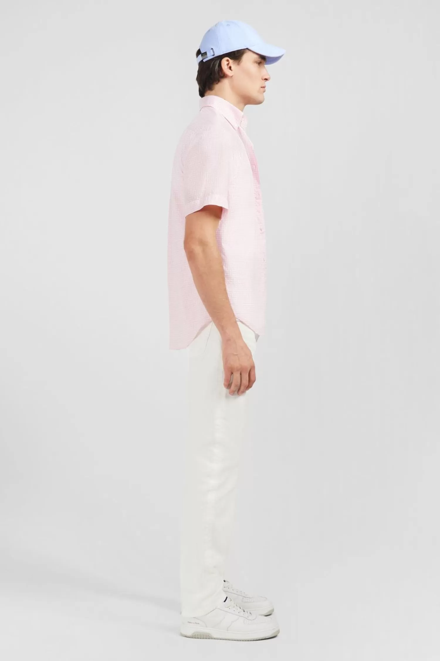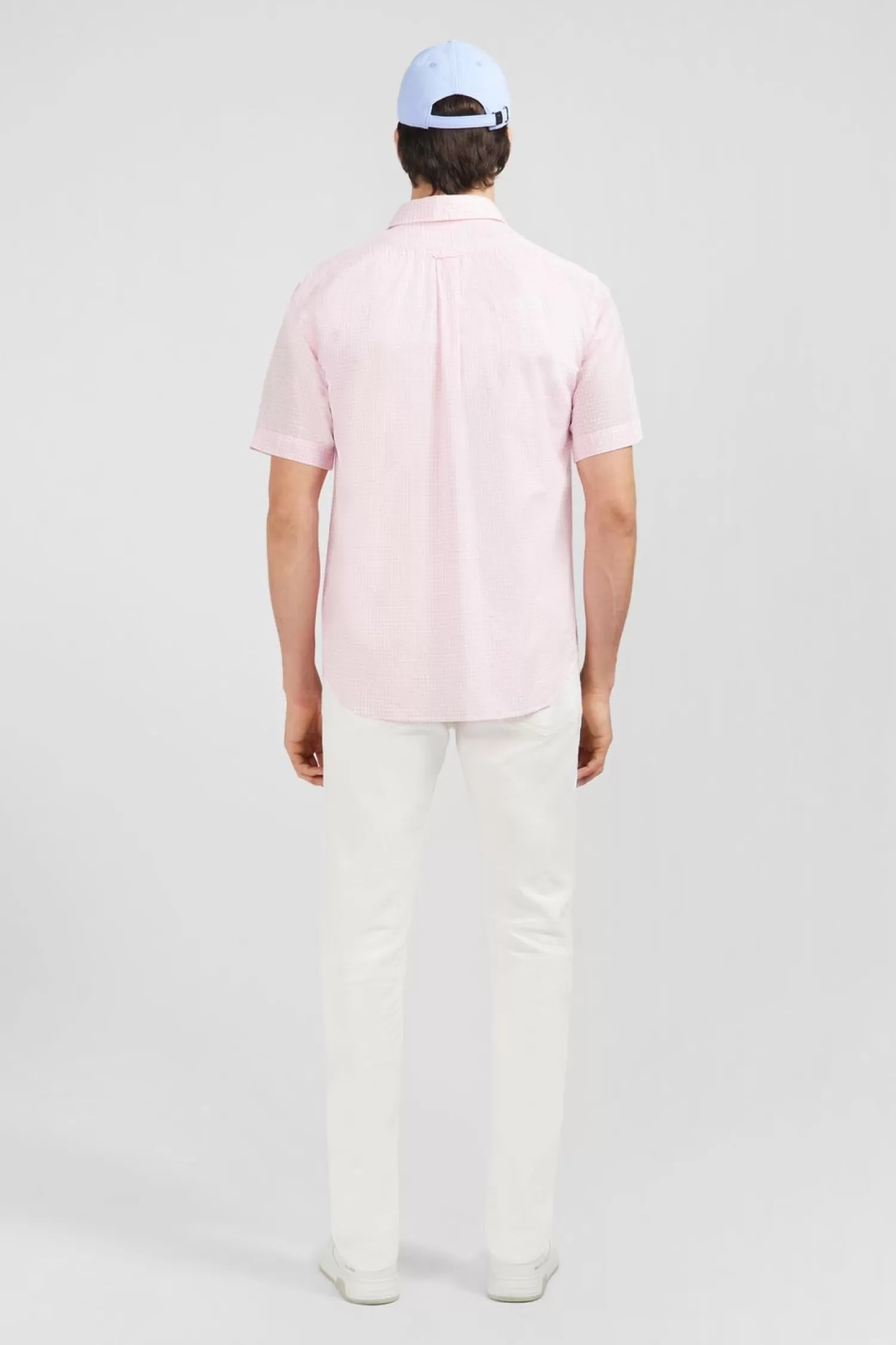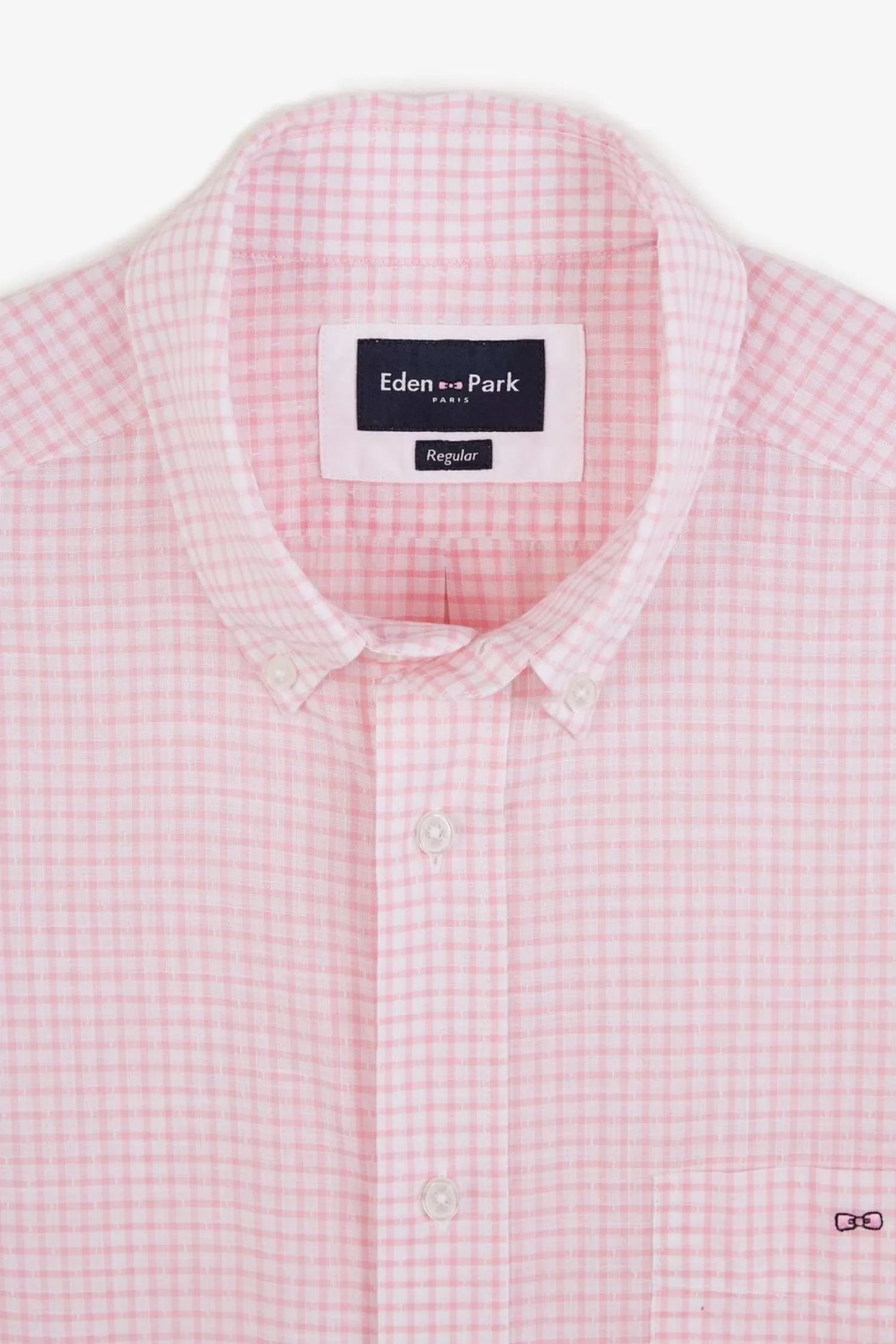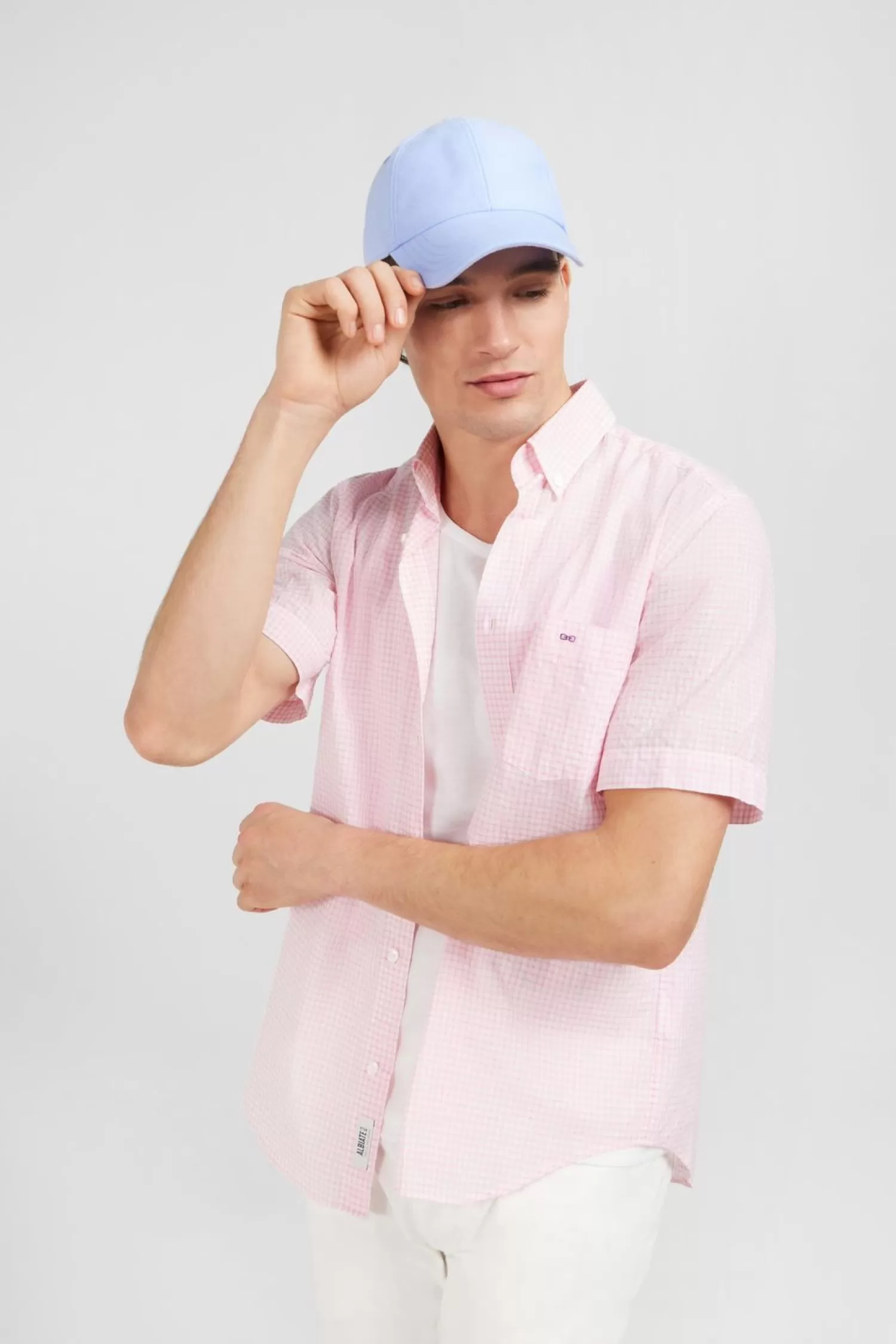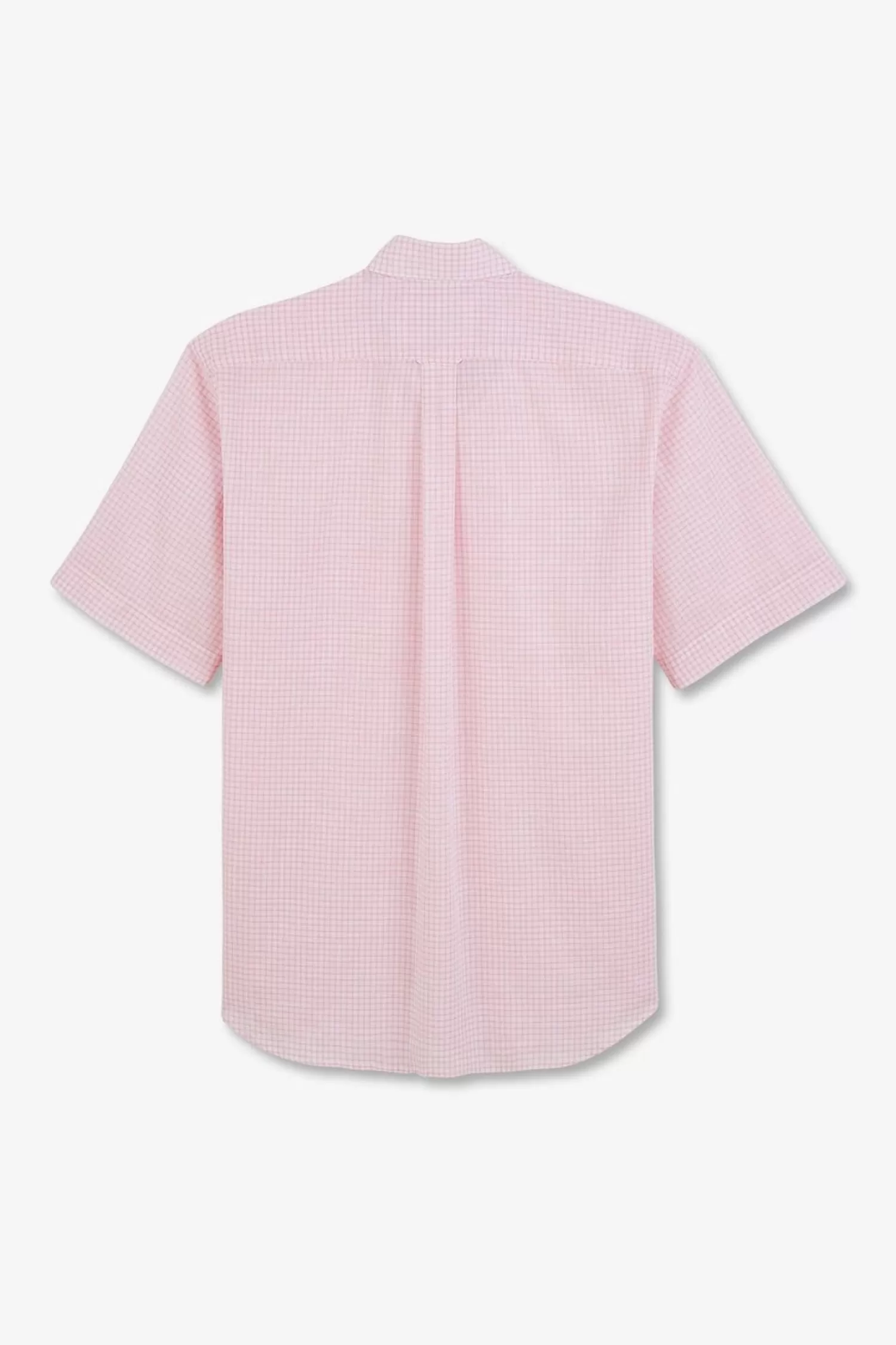 Cette Chemisette Est Conçue Dans Un Joli Coton Dobby Et Présente Un Motif À Carreaux Raffiné À L’Aspect Alvéolé. La Poche Plaquée À La Poitrine Est Dissimulée Grâce À L’Imprimé Exclusif Eden Park Et Affiche L’Emblématique Logo Noeud Papillon Brodé Rose