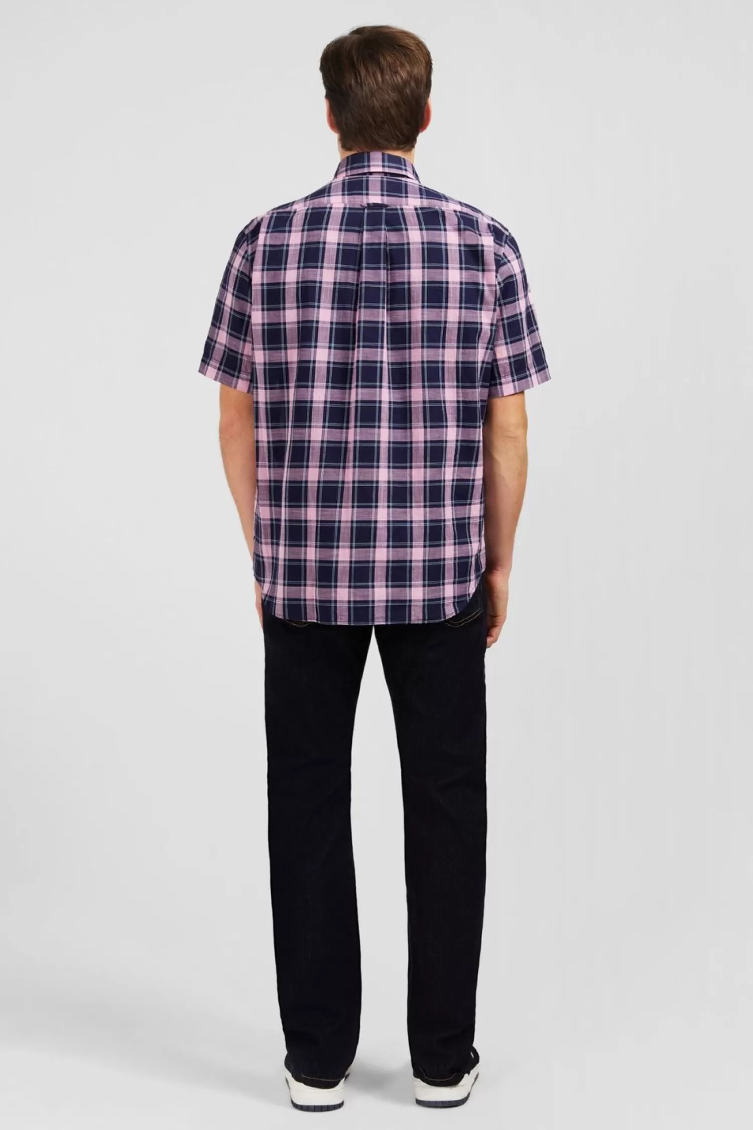 Cette Chemisette En Coton Est Douce Et Agréable À Porter. Elle Présente Un Motif À Carreaux Où Se Fond Une Poche Plaquée Sur La Poitrine, Subtilement Rehaussée D’Une Broderie Nœud Papillon Rose
