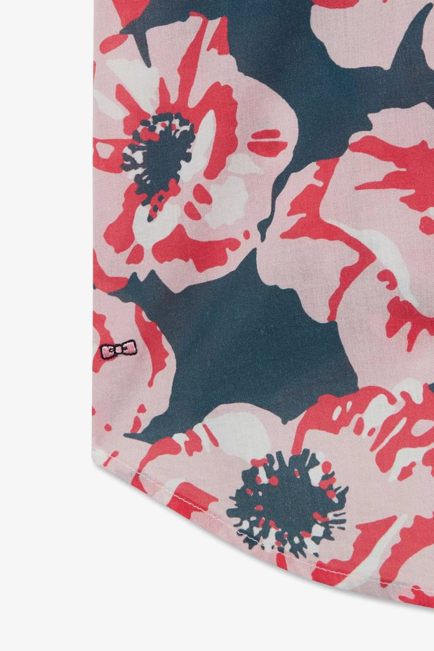Tissée En Coton, Cette Chemisette Affiche Un Joli Imprimé Fleuri Exclusif Qui Dissimule Un Nœud Papillon Rose Subtilement Brodé En Bas De Corps