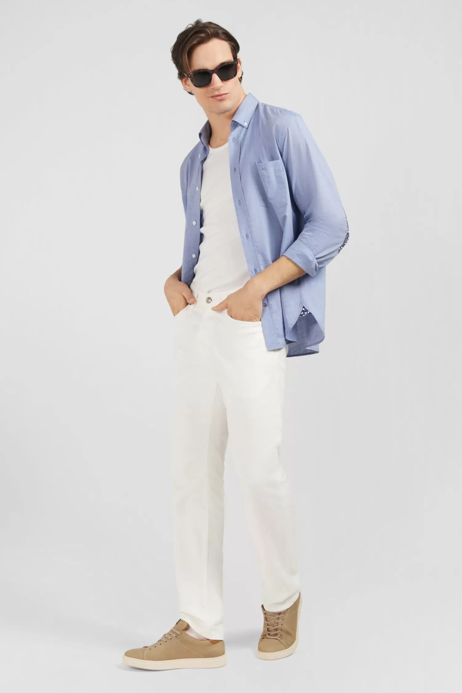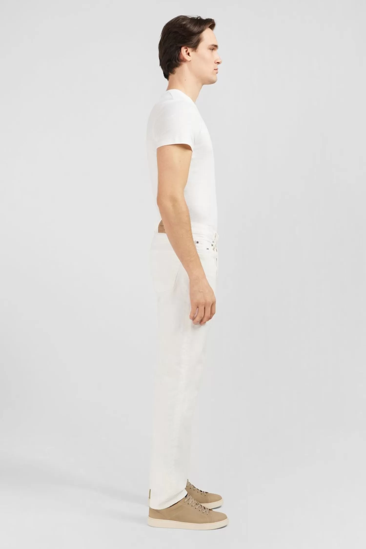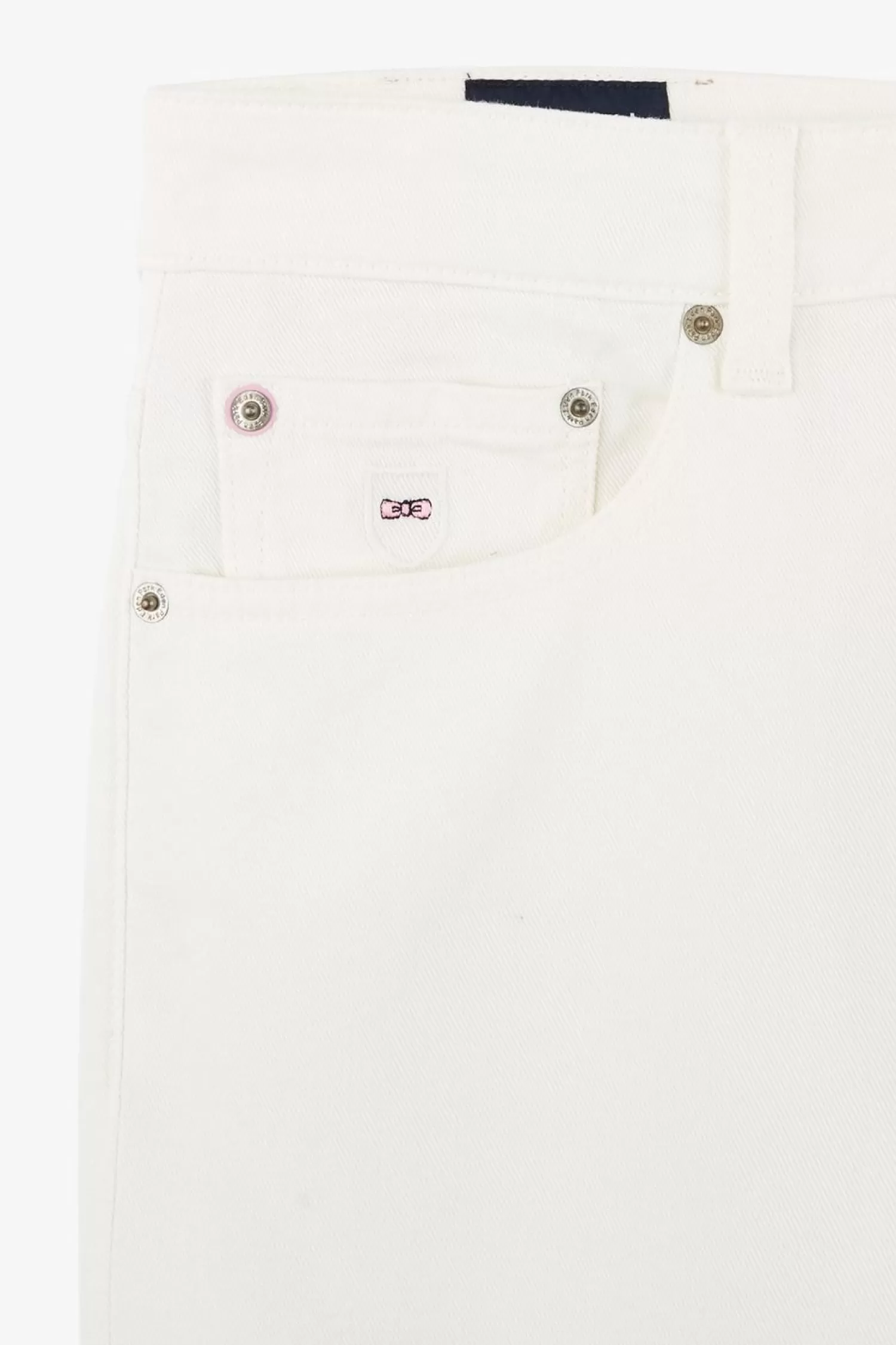 Dès L’Arrivée Du Printemps, Le Jean Blanc À La Coupe Droite Fait Un Retour Attendu Dans Nos Vestiaires. Ce Modèle En Coton Stretch Confortable Offre Un Porté Seyant Grâce À Ses 5 Poches Emblématiques Du Savoir-Faire Denim. Son Jacron En Cuir Et Ses Rivets Siglés S’Ajoutent À Une Discrète Broderie À L’Emblème De Notre Maison.