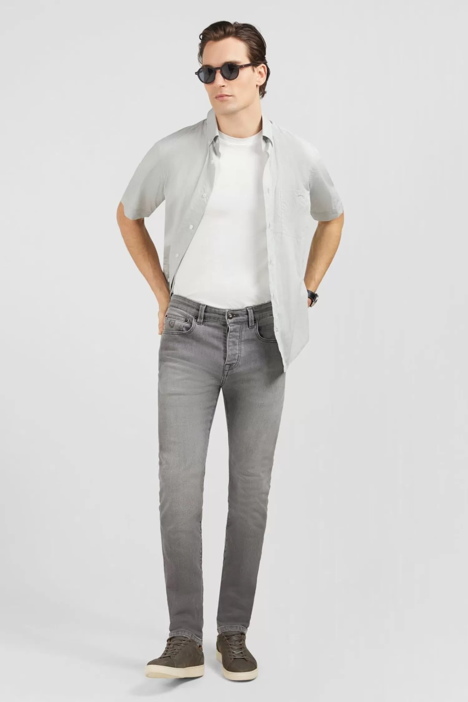 Conçu En Coton Stretch, Ce Jean Uni À La Coupe Slim Est Doté De 2 Poches Cavalières, D’Une Poche Ticket Avant Avec Écusson Eden Park Brodé, De 2 Poches Plaquées Arrière, D’Une Fermeture Boutonnée Et D’Un Jacron Siglé Eden Park À L’Arrière