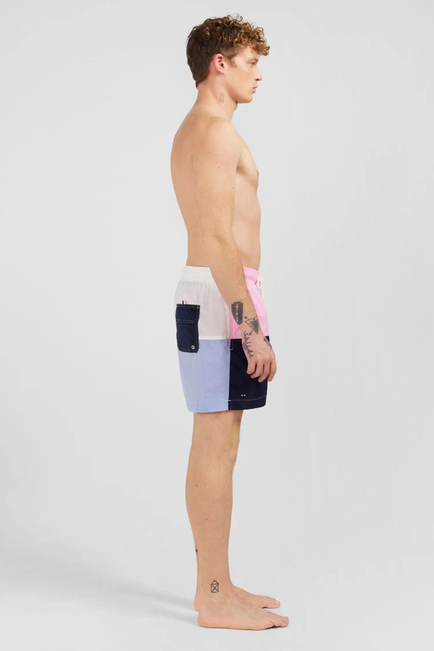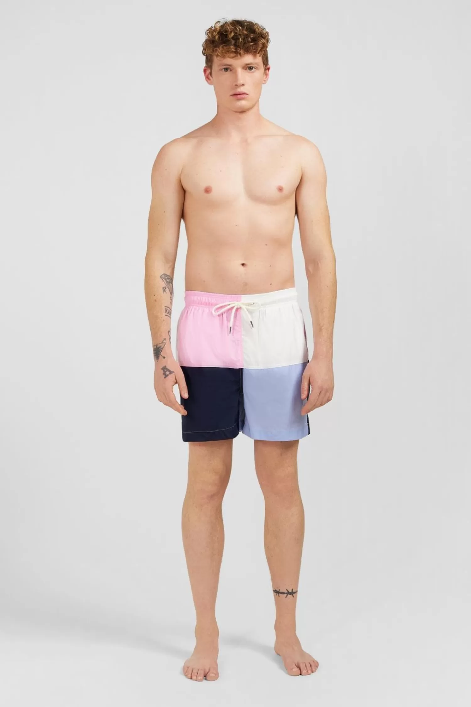 L’Iconique Association Colorblock Inspiré Du Maillot De Rugby Barbarian Se Décline Jusqu’Au Maillot De Bain Pour Adopter L’Allure French Flair Typique D’Eden Park Jusqu’À La Plage. Ce Maillot De Bain Pour Homme À La Taille Élastiquée Est Aussi À L’Aise En Bord De Mer Qu’En Piscine. Taille Élastiquée