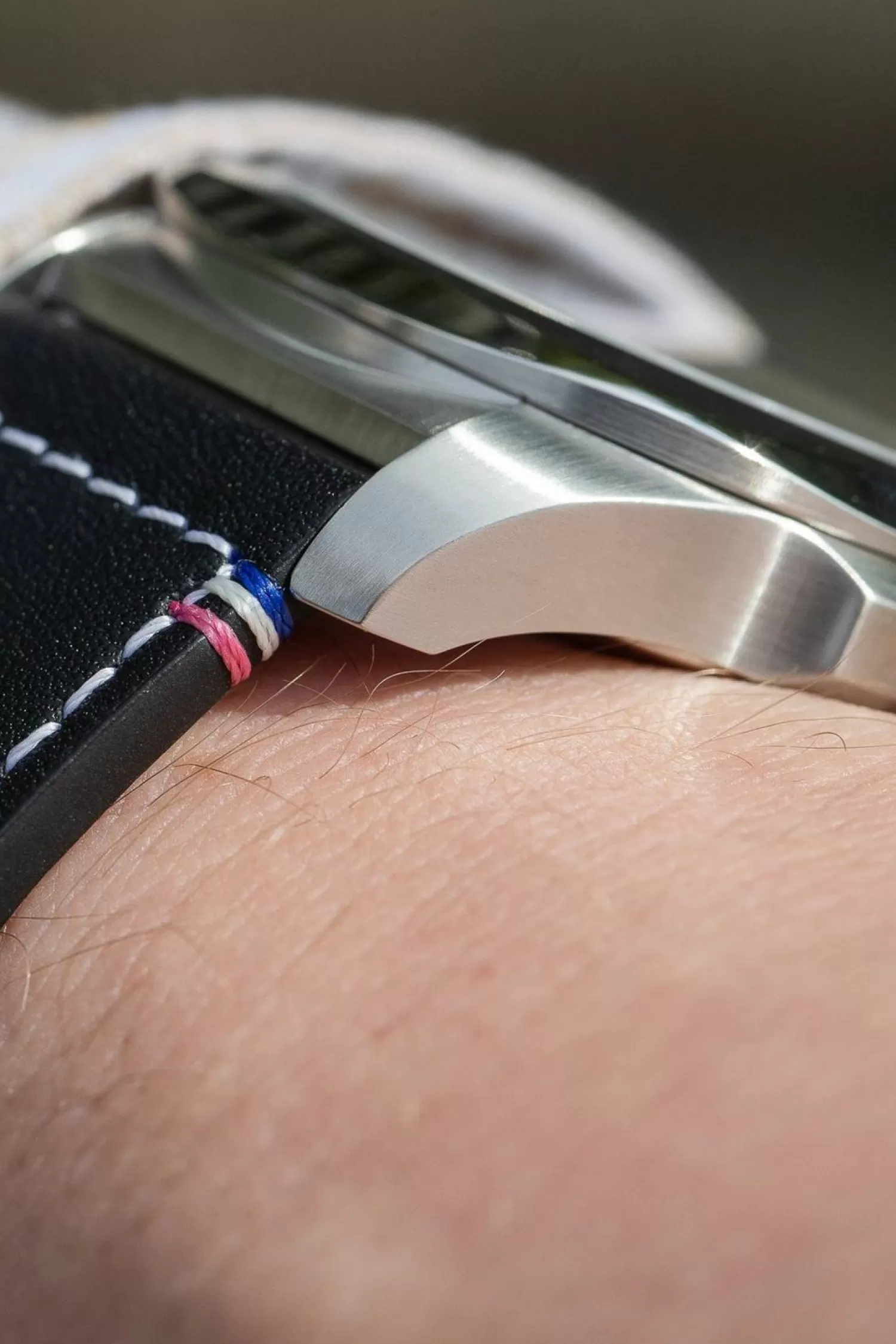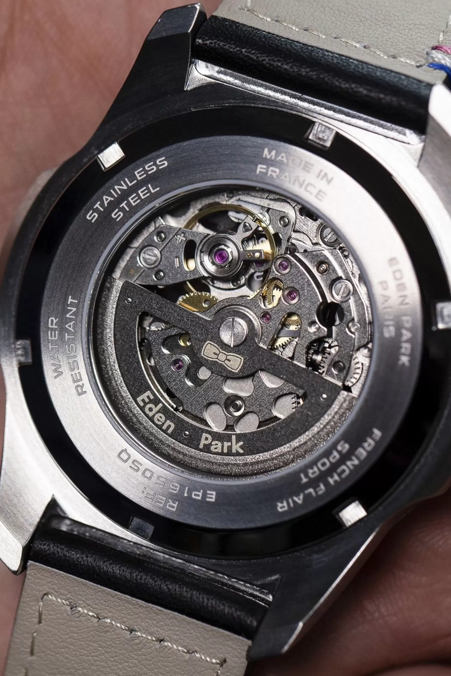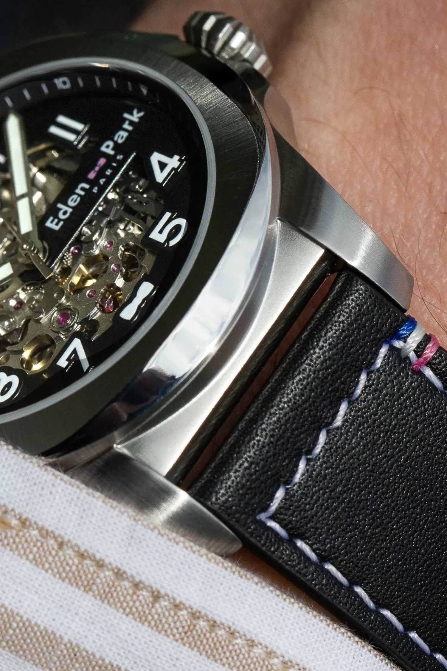 Inspirée Directement De L’Univers Du Rugby, Cette Montre Dispose D’Un Bracelet En Cuir Noir À Boucle Traditionnelle Et D’Un Boîtier En Acier Argenté. Le Cadran, Qui Laisse Apparaître Le Mécanisme En Fond Est Divisé En Deux Parties L’Une En Chiffres Romains Et L’Autre En Chiffres Arabes En Référence À Un Plan De Match De Rugby