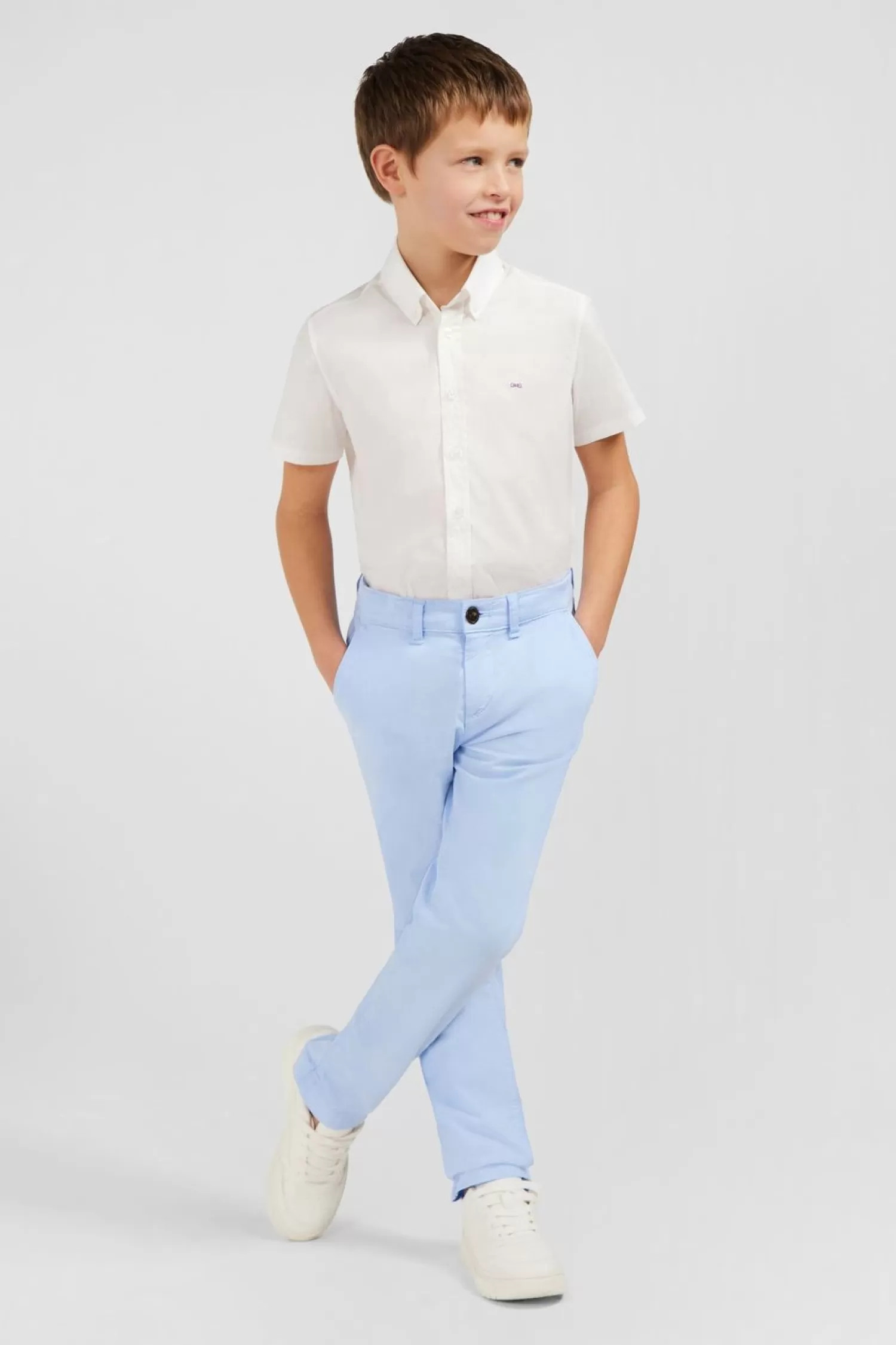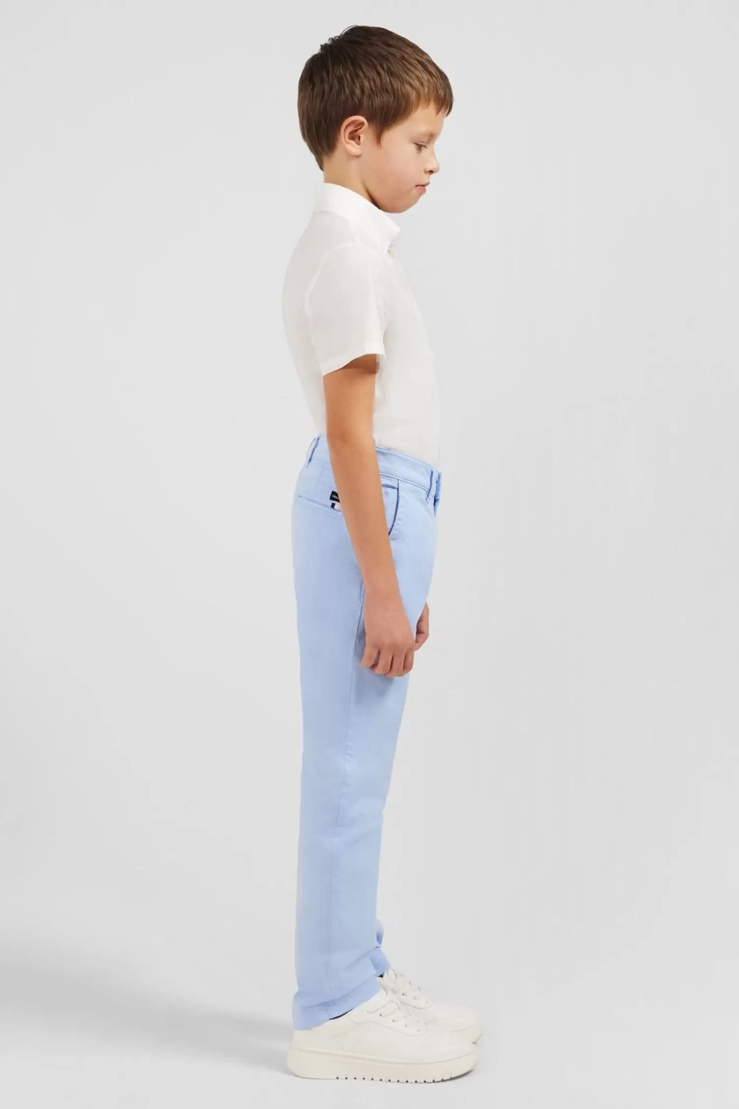 Le Pantalon Chino Est Un Incontournable De La Saison Printemps-Été. Ce Modèle Enfant Comporte Tous Les Codes Du Pantalon Chino, Une Toile De Coton Stretch Confortable, Des Passants Permettant De Lui Ajouter Une Ceinture Et Des Poches Dos Passepoilées Soulignées Par Notre Ruban Tricolore Et Le Nom De Notre Maison.