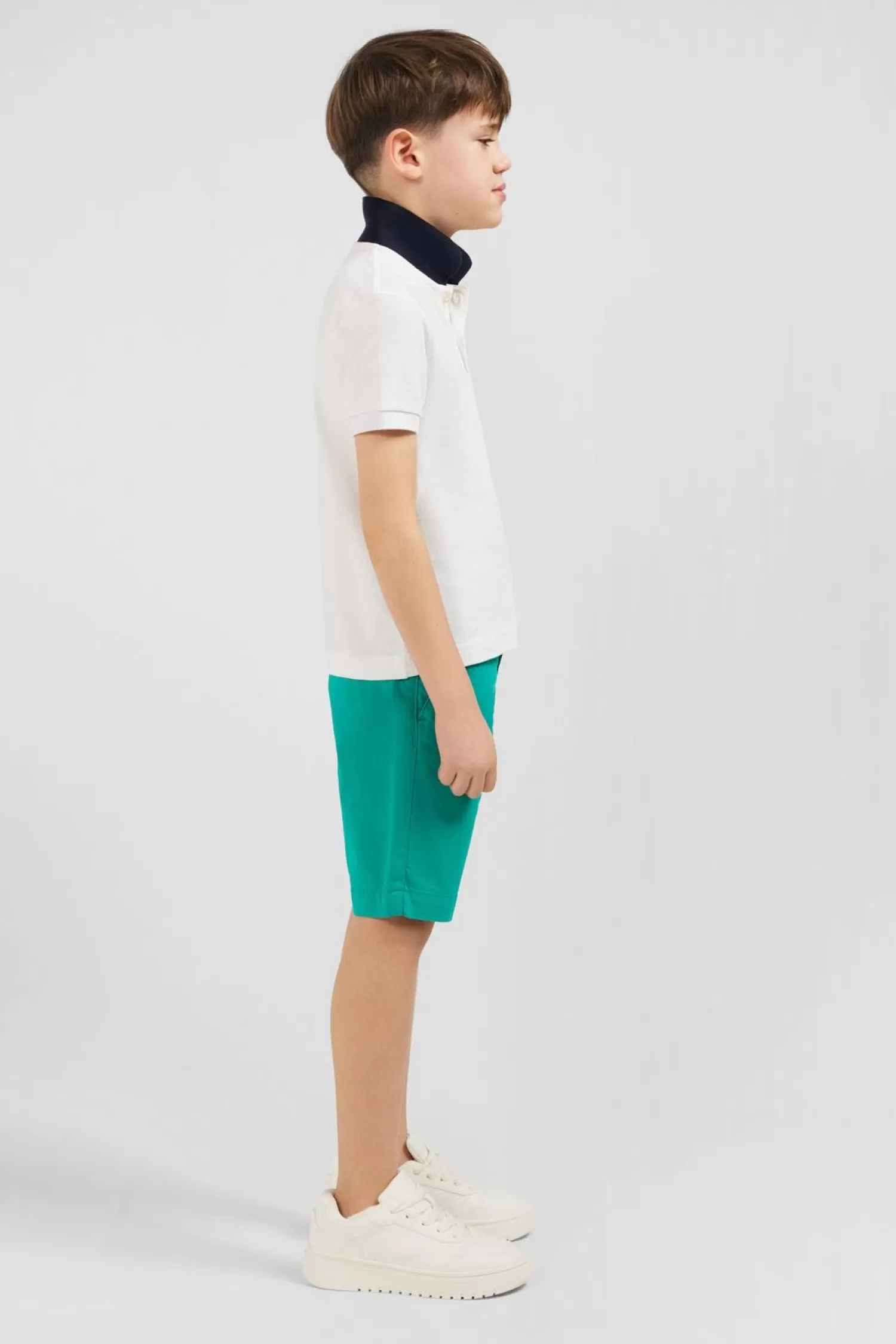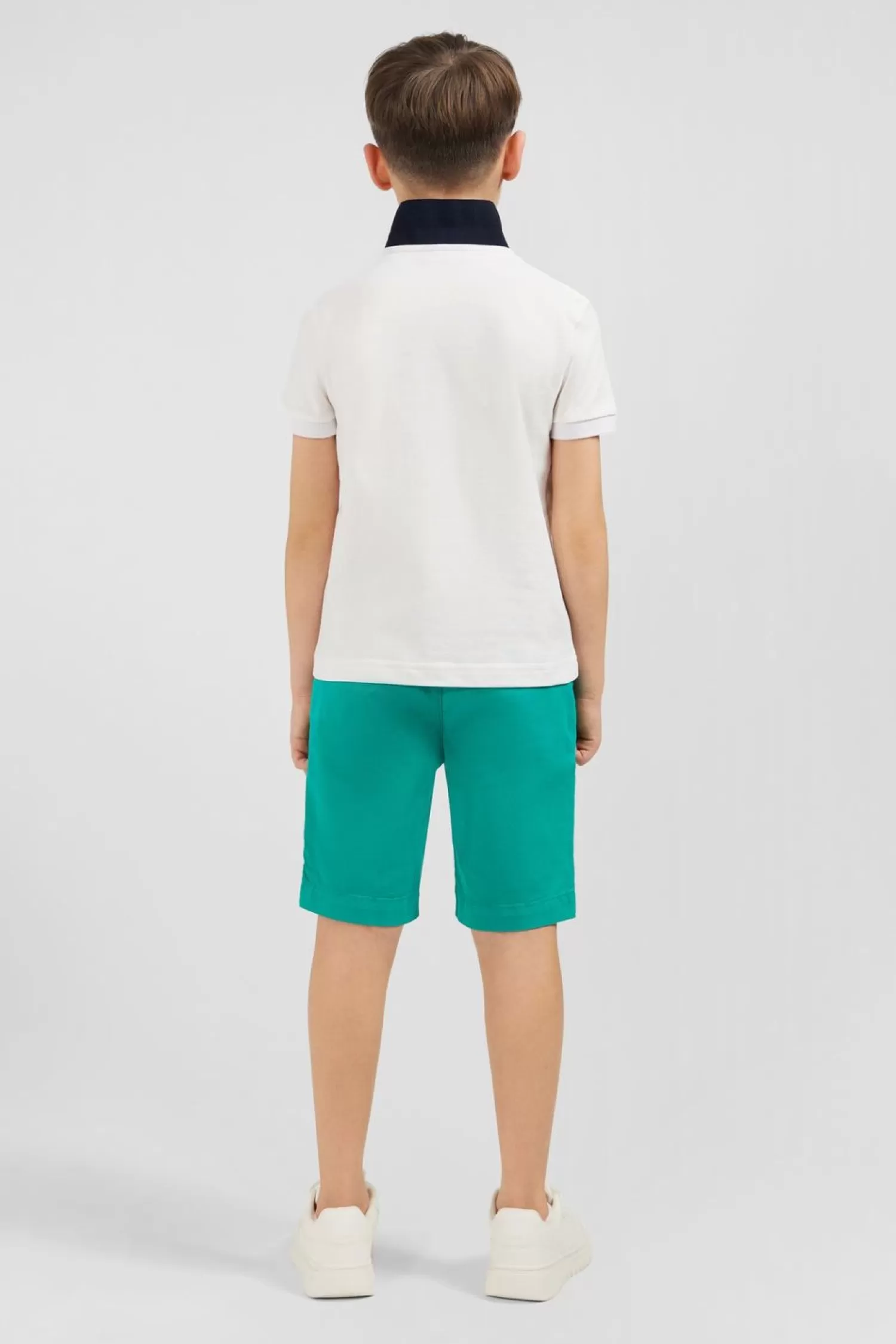 Notre Petit Polo En Piqué Coton Pour Enfant Est Décliné Dans Une Version Blanche Lumineuse Animée D’Un Col Polo Marine Et De Sa Broderie Nœud Papillon Revisitée Dans Une Version Rayée Aux Couleurs D’Eden Park. Un Essentiel À Porter Avec Un Bermuda Comme Avec Un Chino.