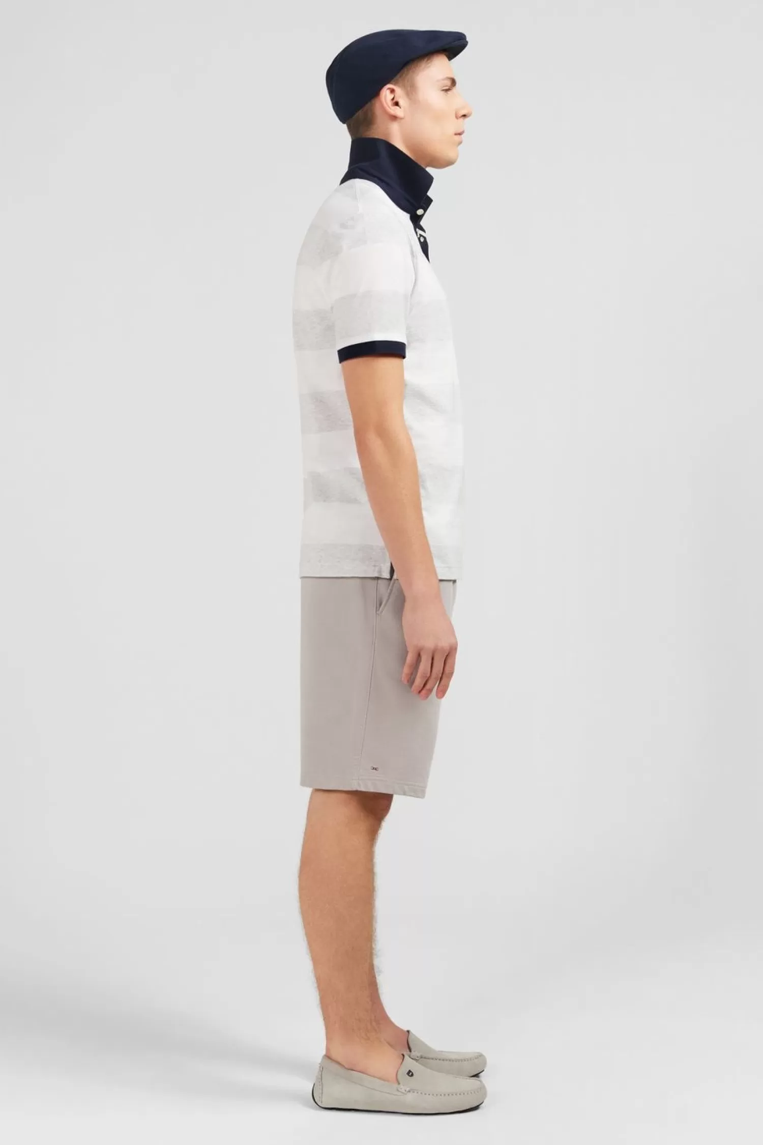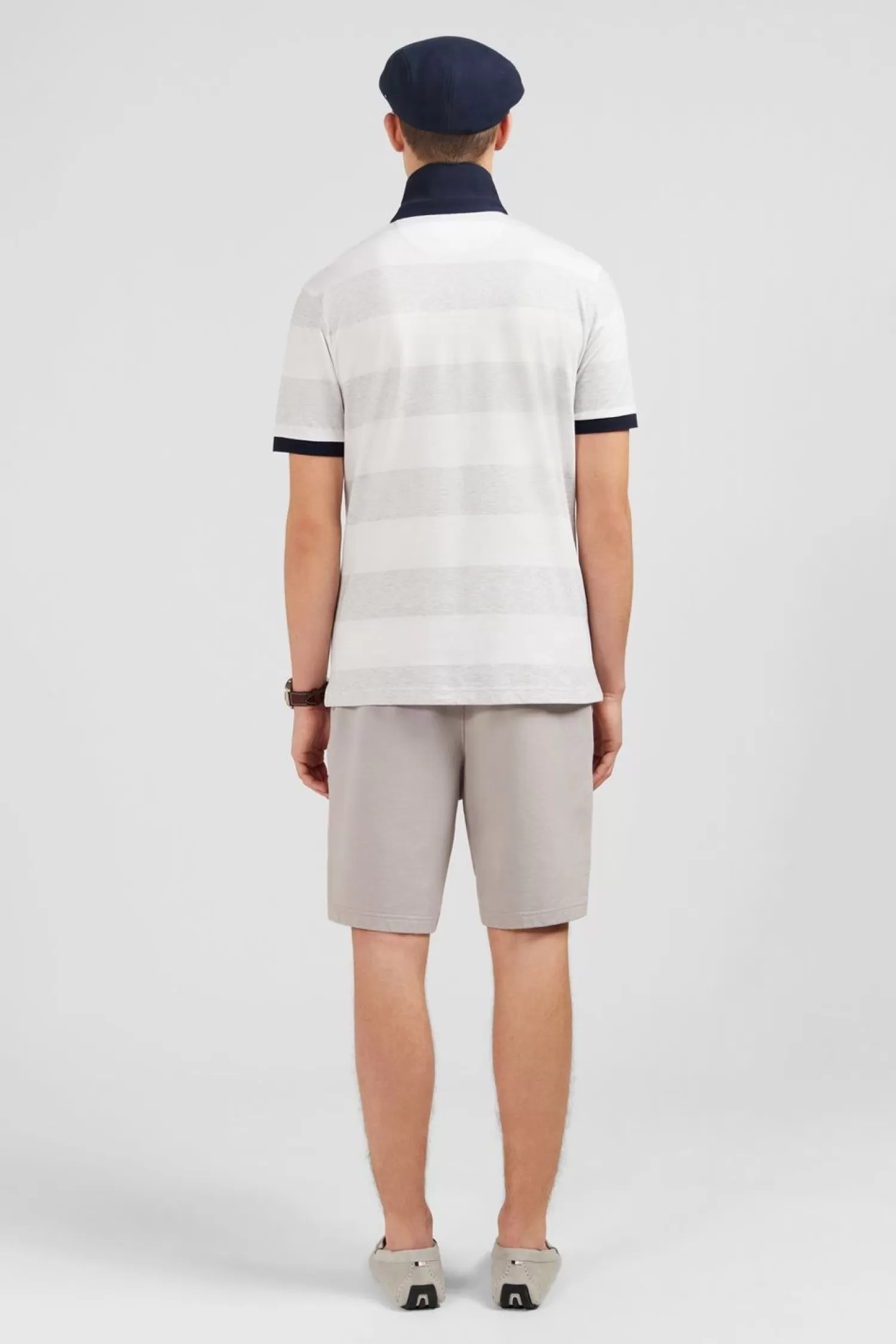 Ce Polo Présente De Larges Rayures Rehaussées Par Notre Emblématique Nœud Papillon Rose Brodé À La Poitrine. Le Col Polo Avec Sa Fermeture Partielle Boutonnée Sous Patte Apporte Son Originalité