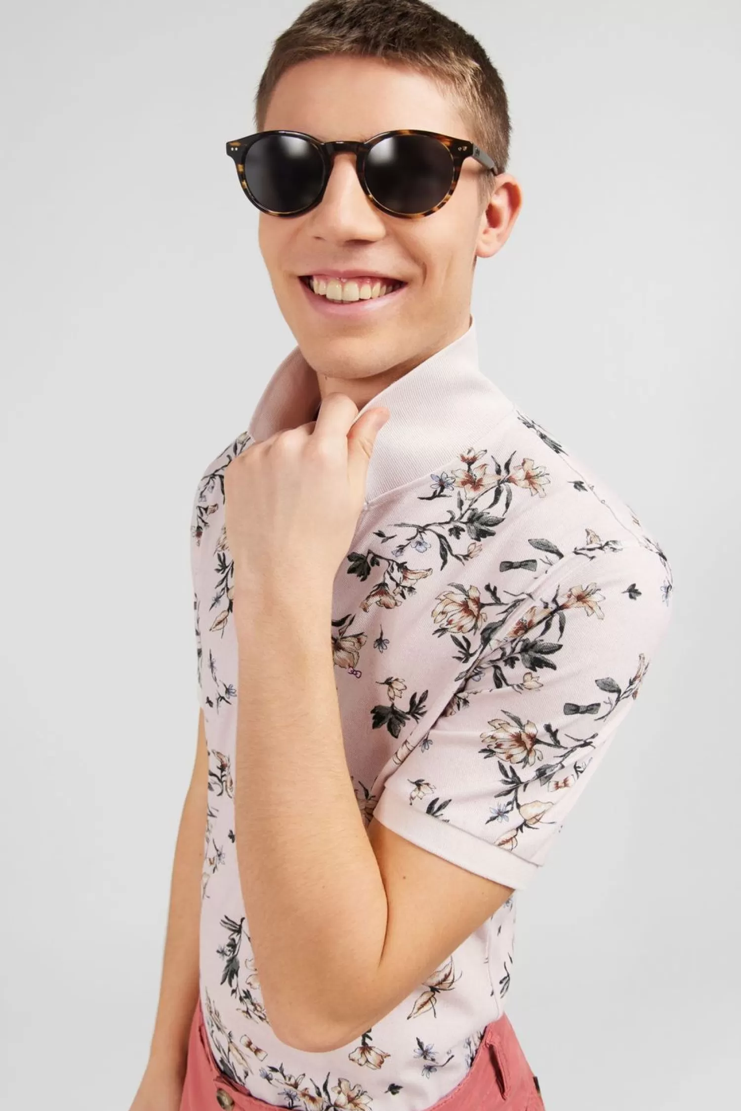 Confectionné En Coton Piqué, Ce Polo Présente Un Bel Imprimé Exclusif Fleur. On Note Également Le Noeud Papillon Brodé Poitrine