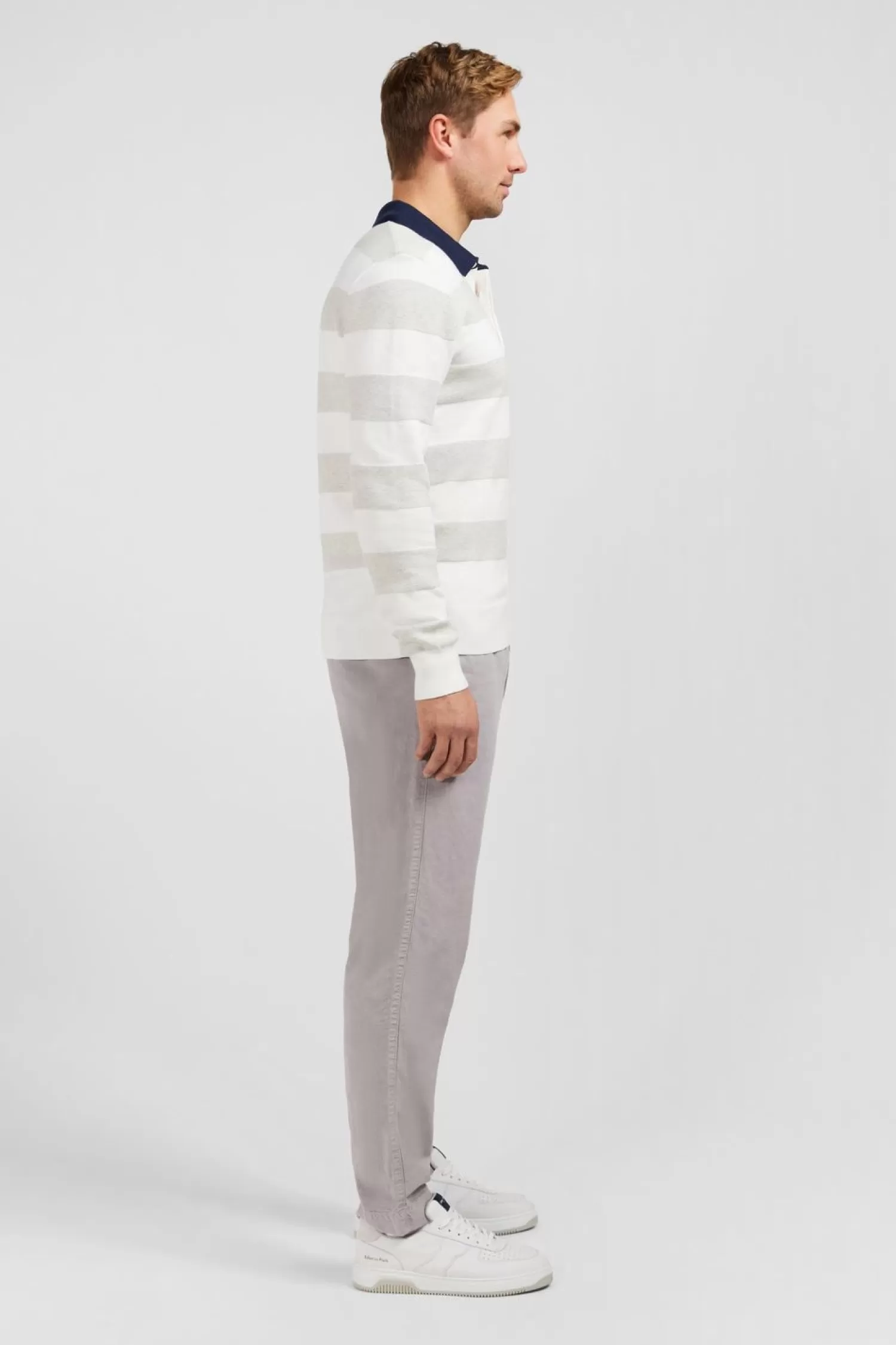 Ce Pull À Rayures Affiche Un Joli Jeu De Maille Jersey Ainsi Qu’Un Col Polo Contrasté