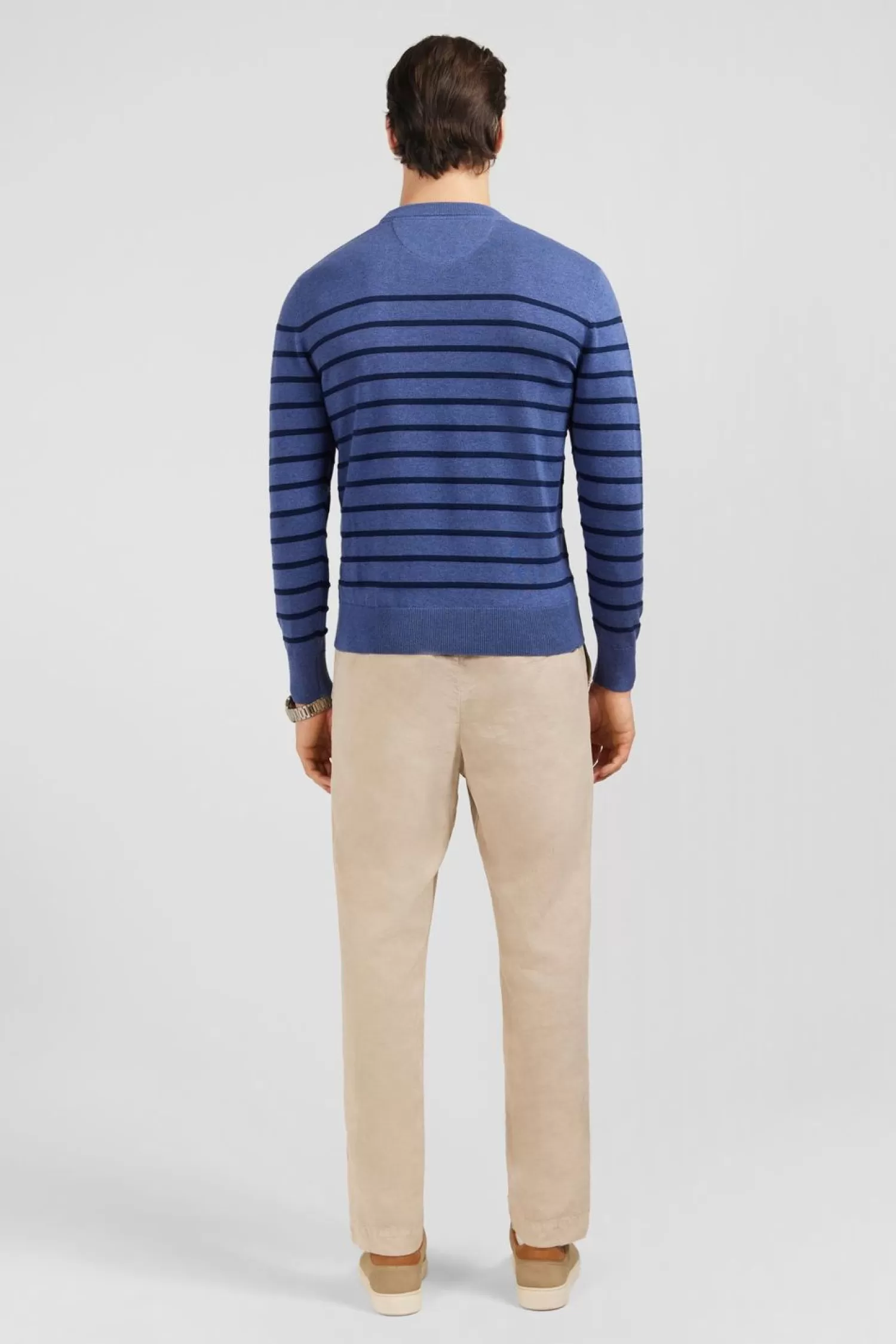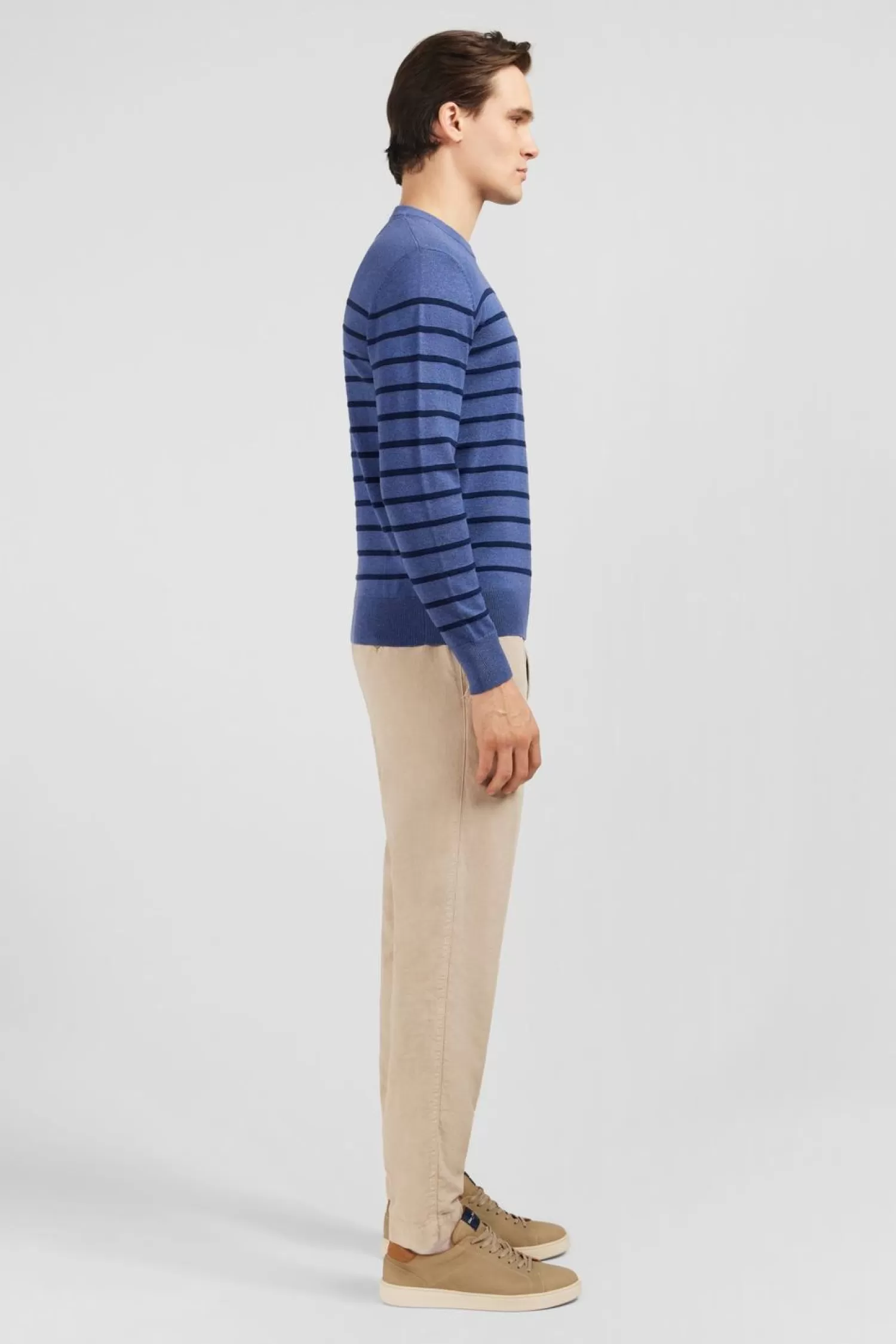 Confectionné En Pur Coton, Ce Pull Affiche De Belles Et Fines Rayures En Jeu De Maille Sous Forme De Bandes Horizontale…