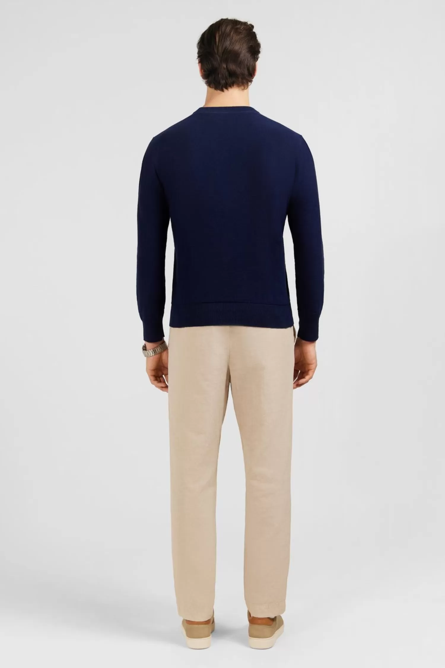 Eden Park Pull Bleu Marine En Lin Melange-Homme Pulls
