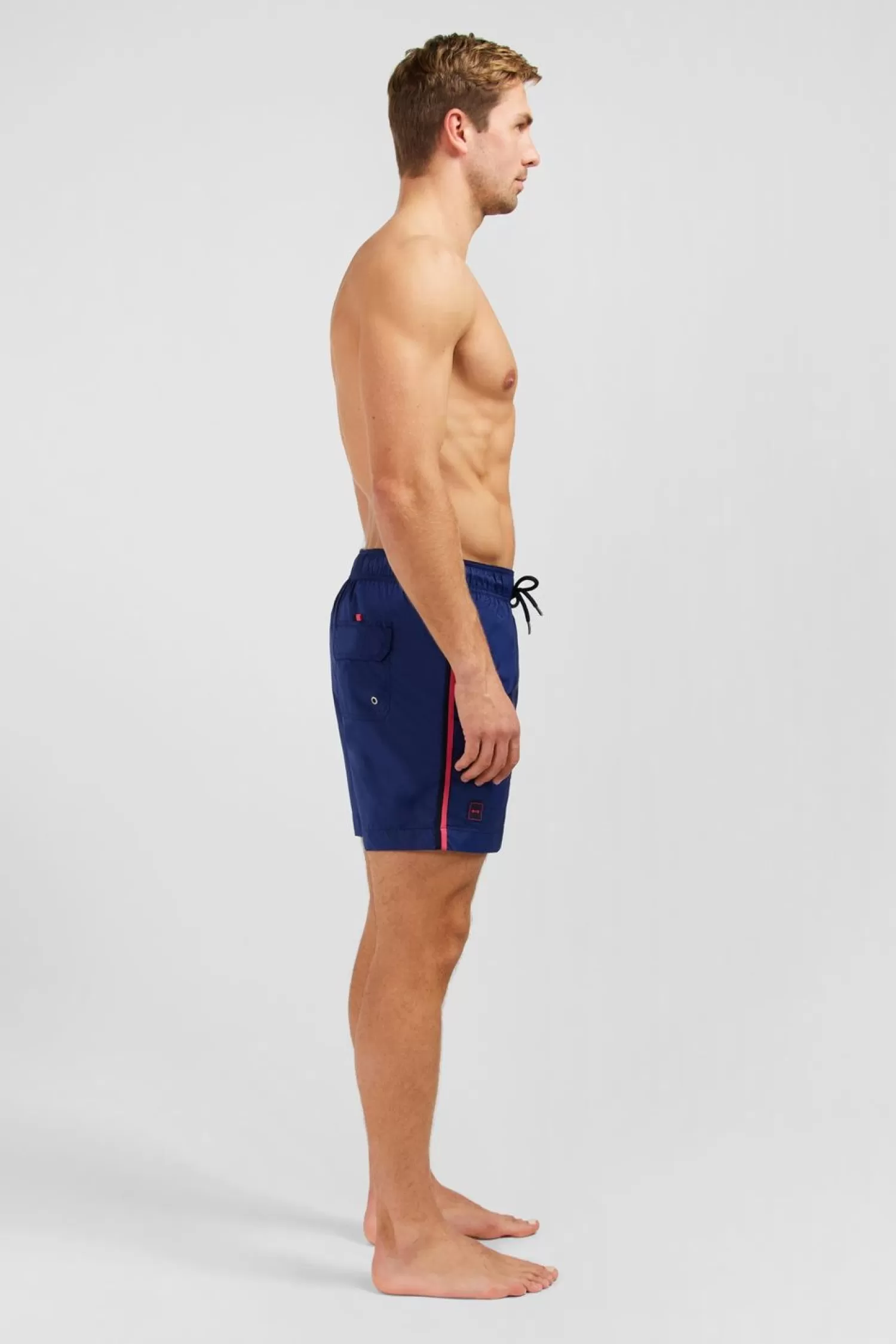 Ce Short De Bain Uni Est Réhaussé Par Une Bande Bicolore De Chaque Côté. La Taille Est Élastiquée Et Possède Un C…