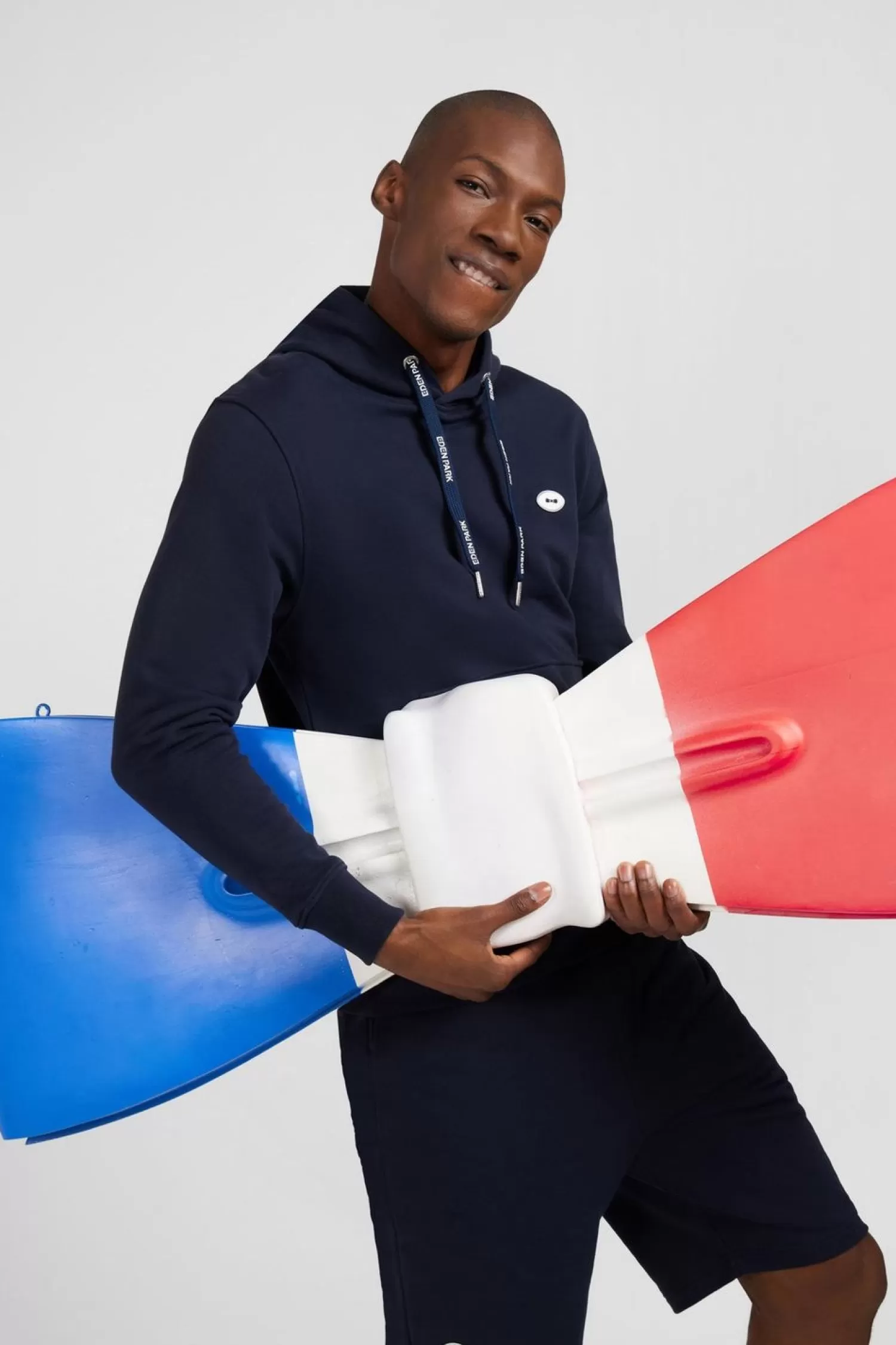 Conçu En Molleton Bouclette, Ce Sweat À Capuche Affiche Un Bas De Corps Et Des Bas De Manches En Bord-Côtes Ainsi Qu’Un Badge Logo Ovale En Silicone Sur La Poitrine. La Capuche Possède Un Lien De Serrage À Inscription Eden Park En Continu