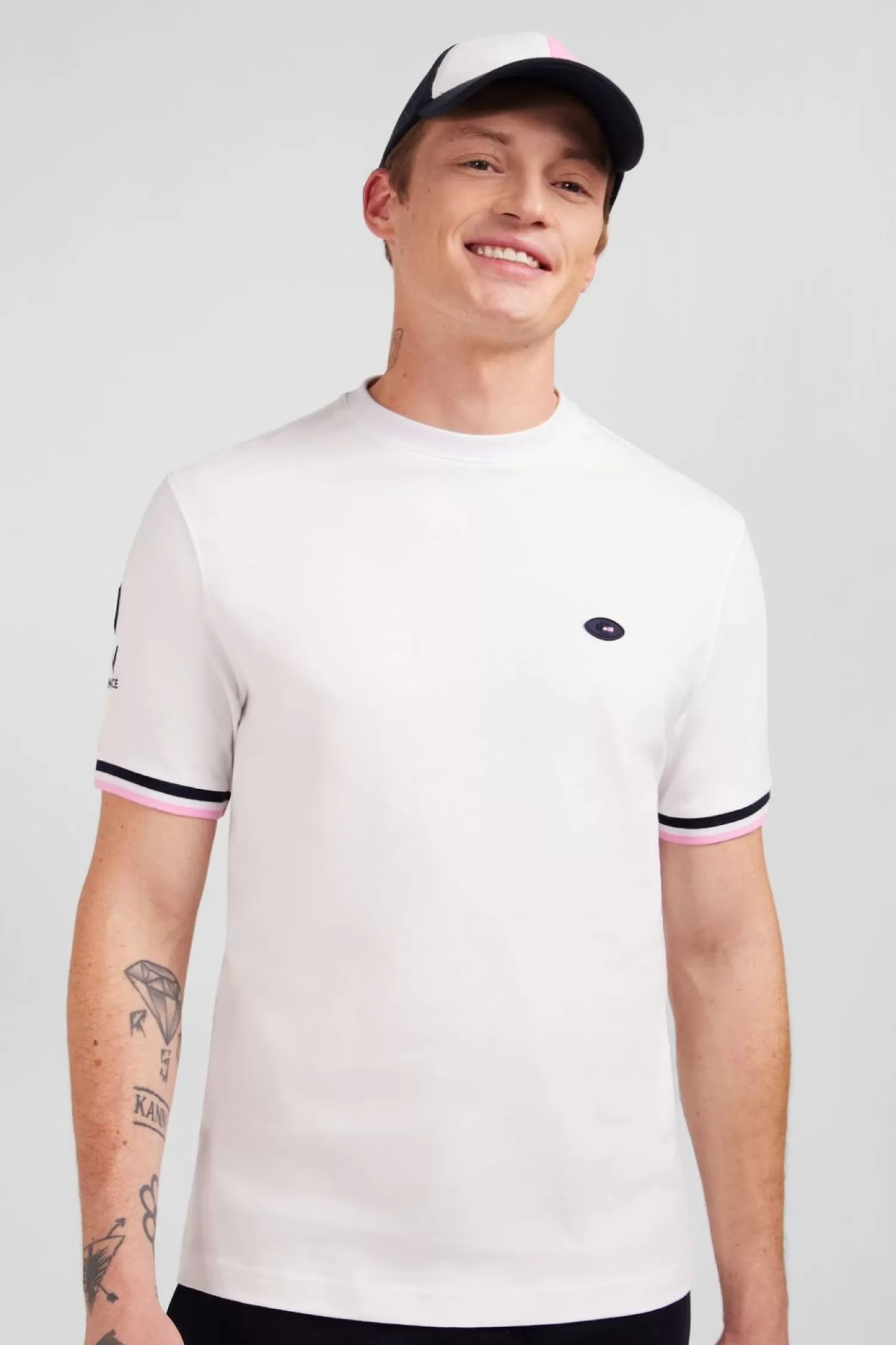 - Manches Courtes À Finitions Bord-Côtes Tricolores