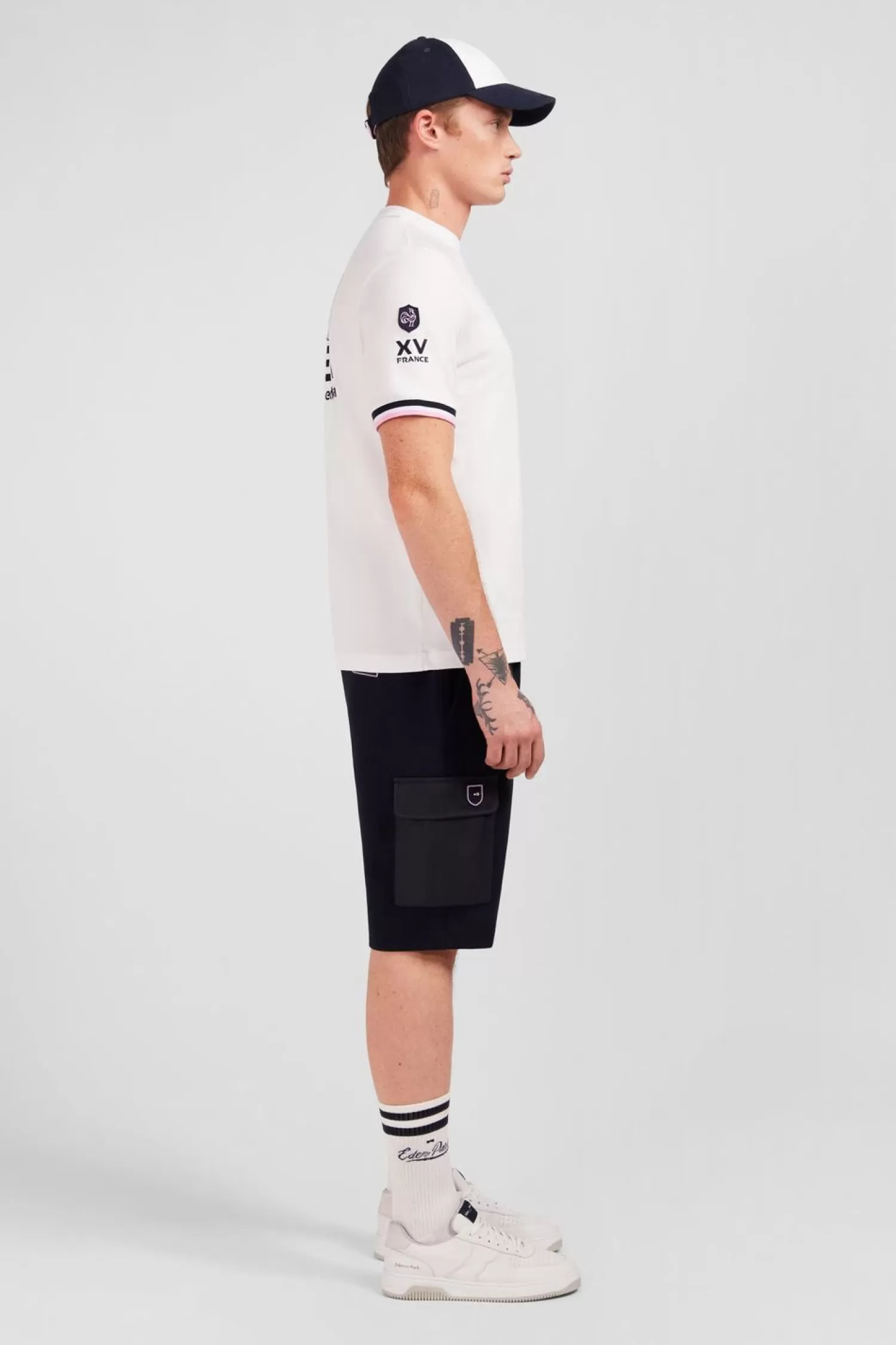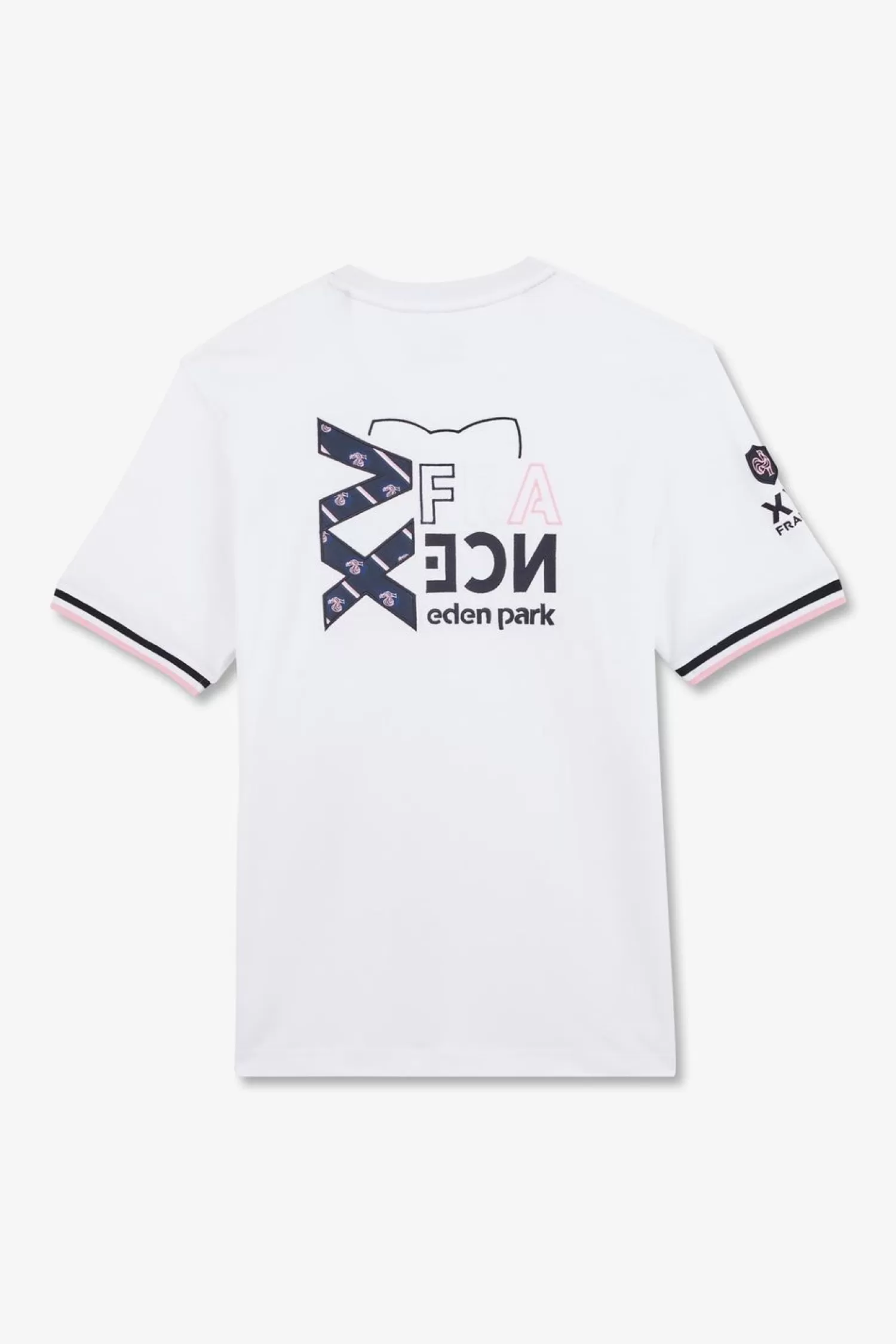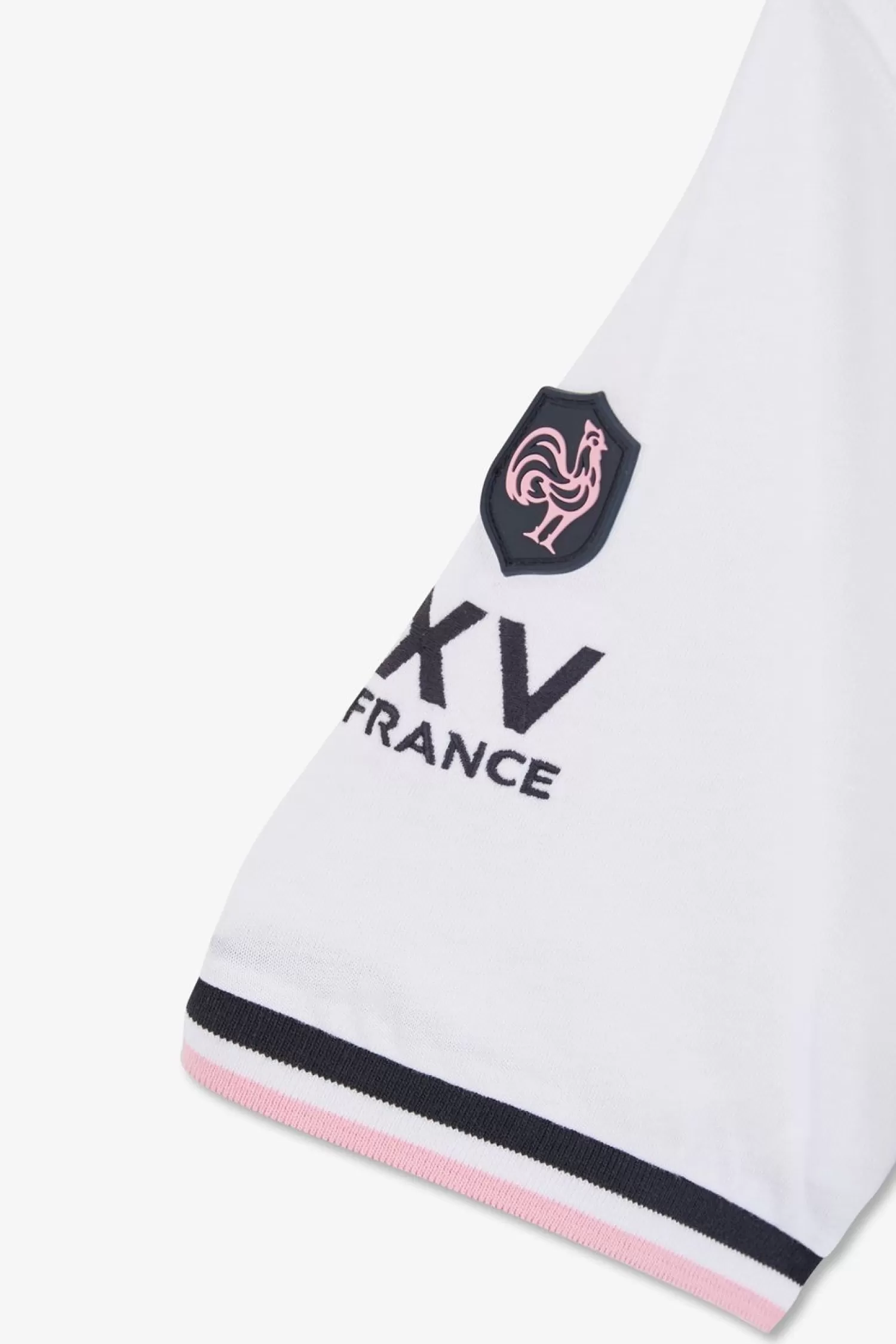 Conçu En Jersey De Coton, Ce T-Shirt À Manches Courtes Présente Une Belle Broderie Xv De France Au Dos Avec Tissu Cravate. Le T-Shirt Est Rehaussé Par Des Finitions En Bord-Côtes Tricolores Sur Les Manches Et Affiche Un Logo En Silicone En Forme De Ballon De Rugby Placé Sur La Poitrine.