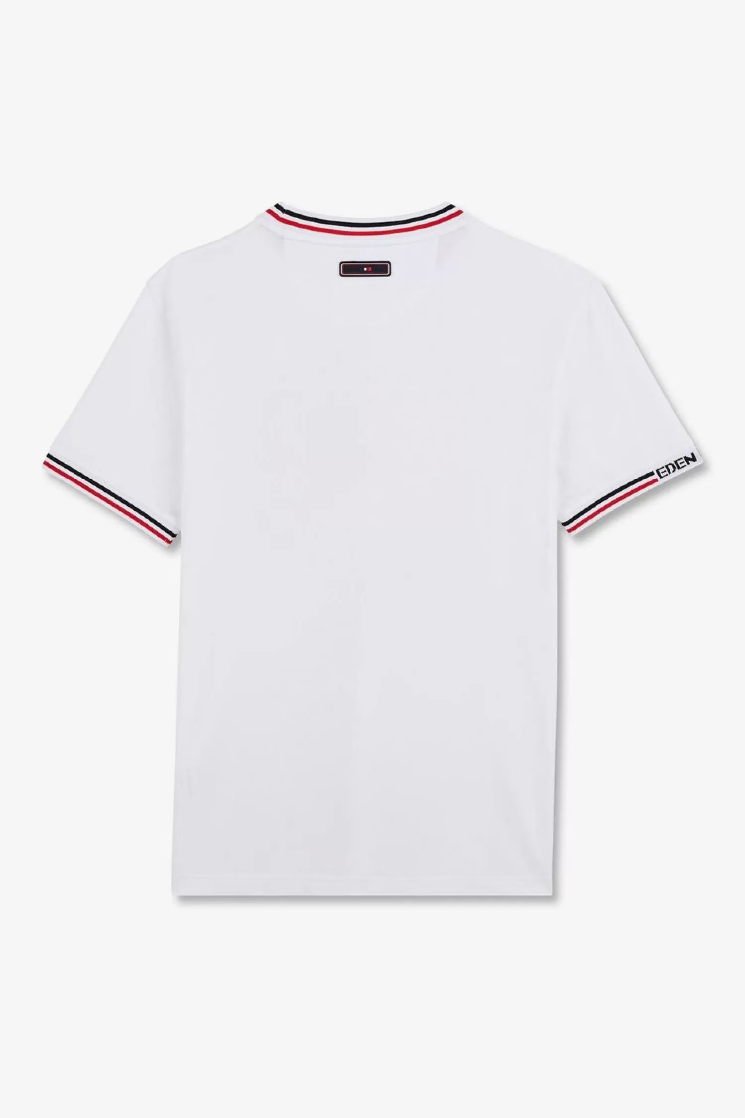 Intemporel De Votre Dressing, Ce T-Shirt À Manches Courtes Est Agrémenté D’Un Écusson En Silicone Eden Park Tricolore À La Poitrine. Sa Conception En Pur Jersey De Coton Apporte Douceur Et Confort Au Quotidien