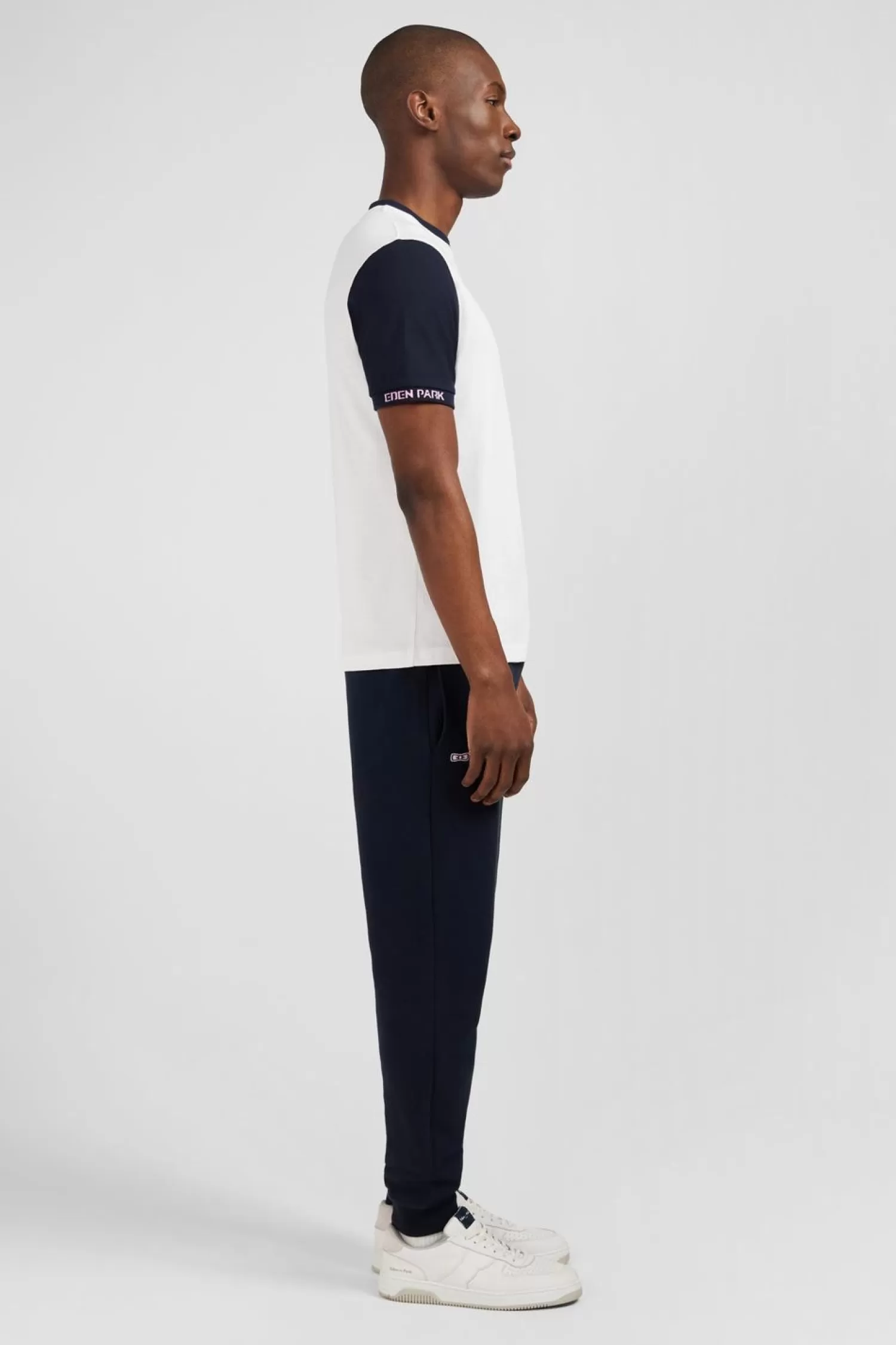 Conçu En Jersey De Coton Extensible, Ce T-Shirt À Manches Courtes Affiche Un Look Colorblock Réhaussé Par Un Badge Carré En Silicone À La Poitrine Et Une Inscription En Jacquard Eden Park Sur La Manche Droite