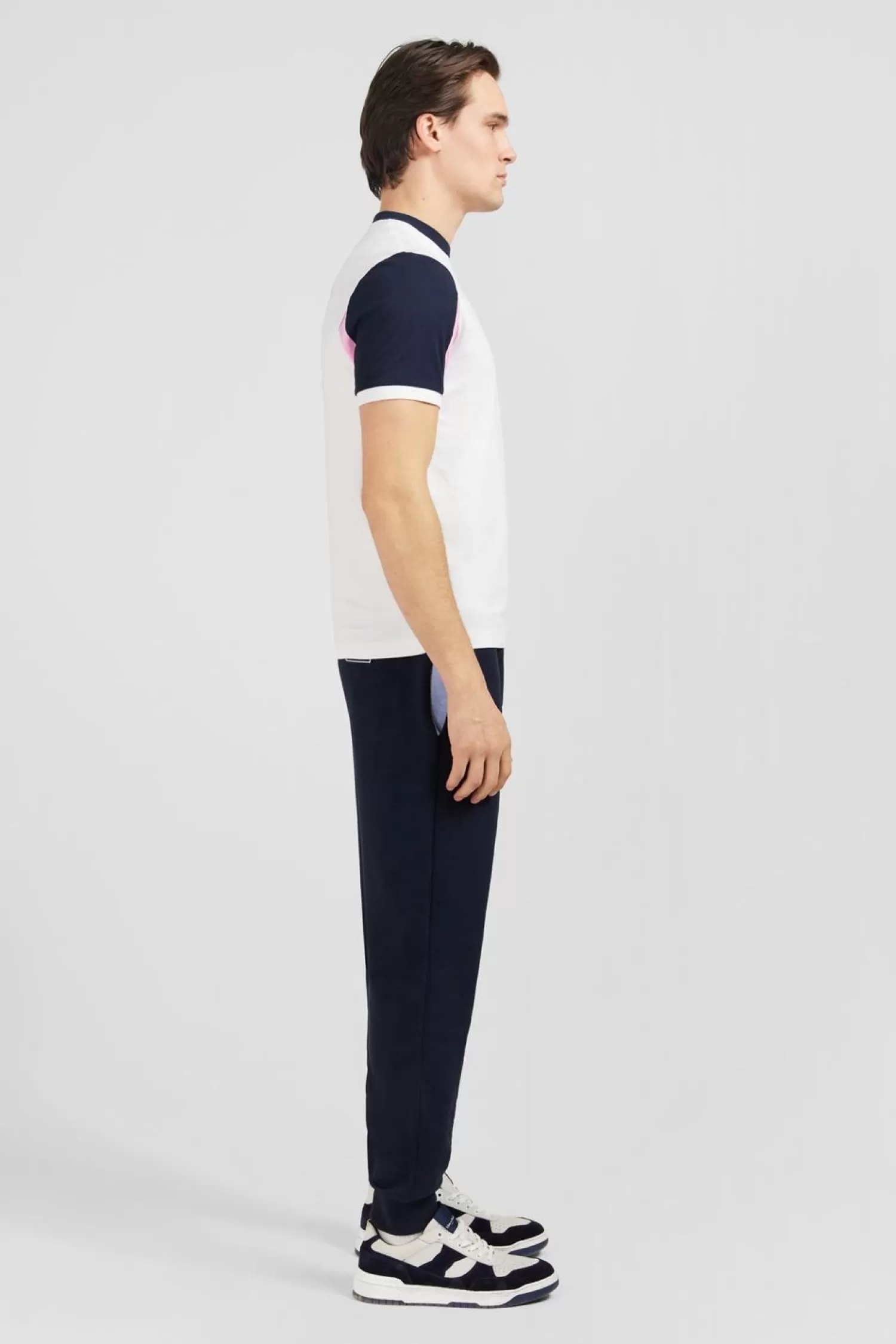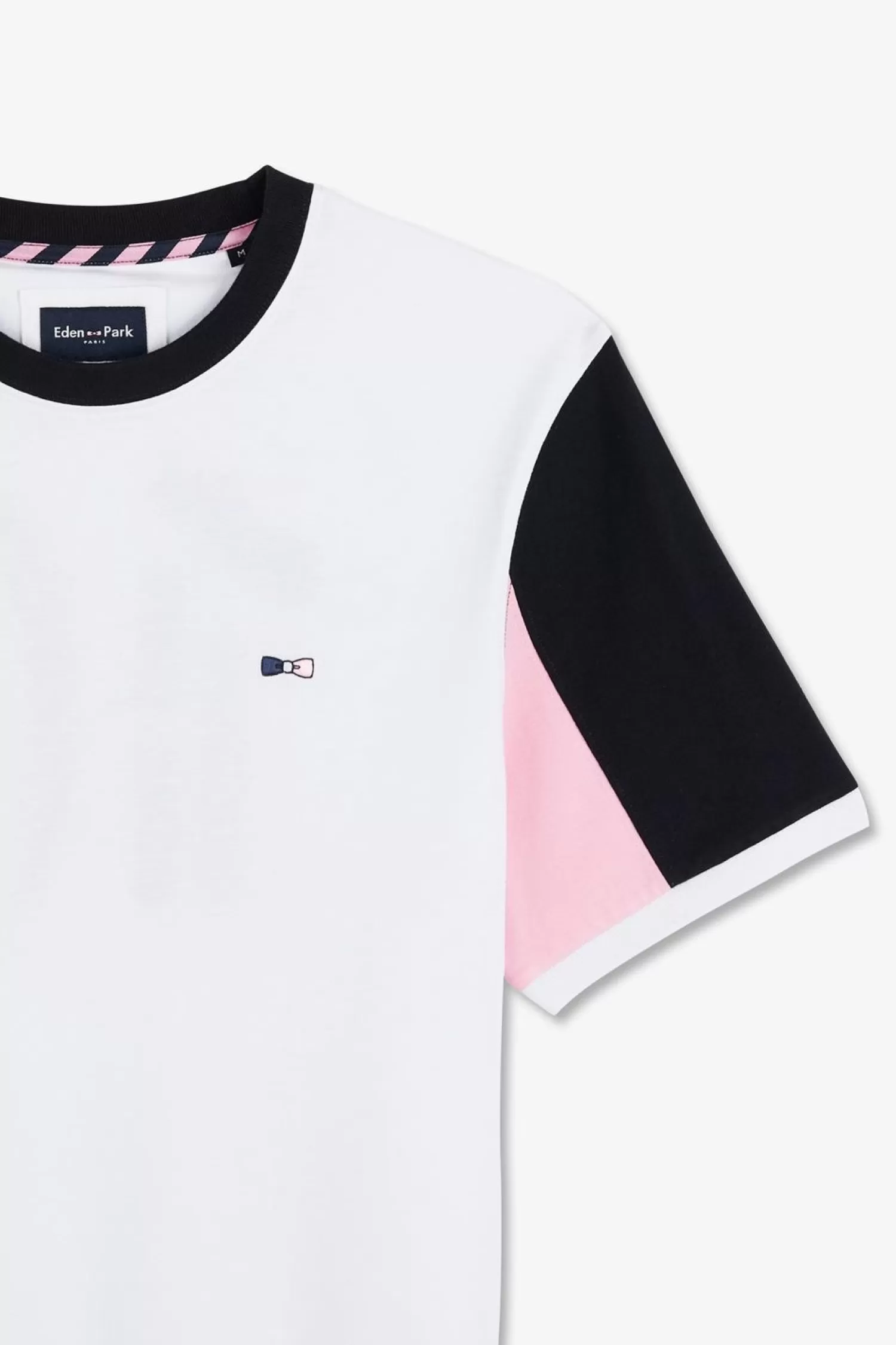 Ce T-Shirt En Coton Doux Et Confortable Présente Des Manches Colorblock À Bord-Côtes Tricotés Et Une Broderie Poitri…