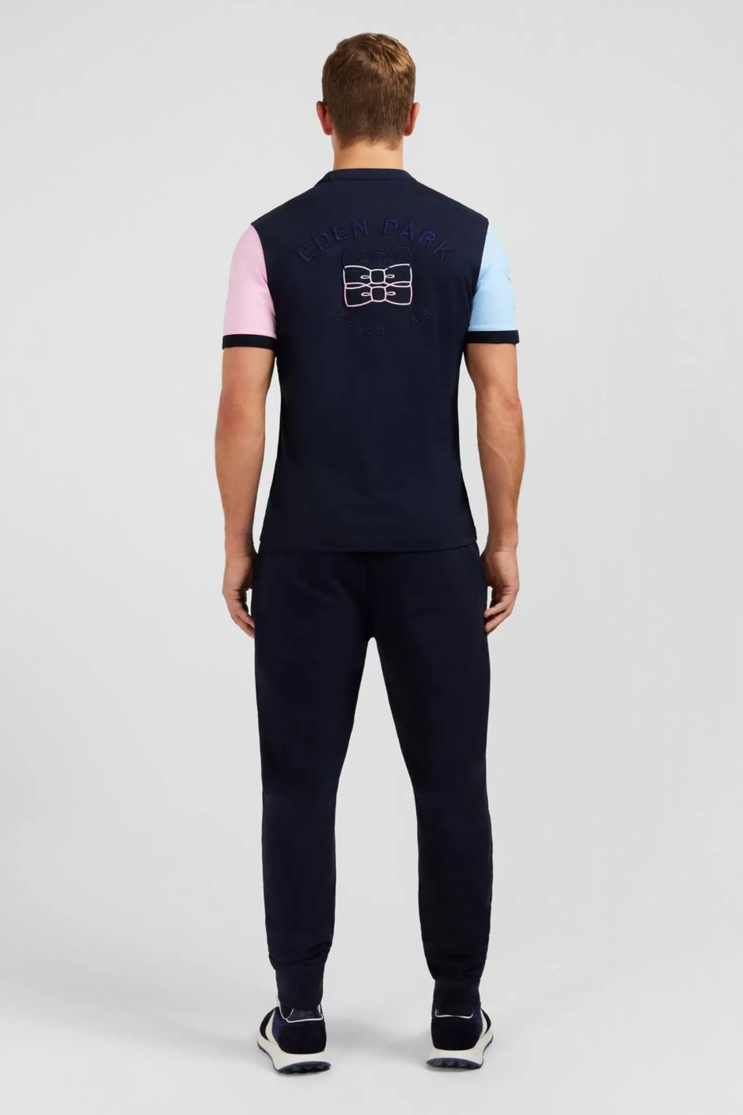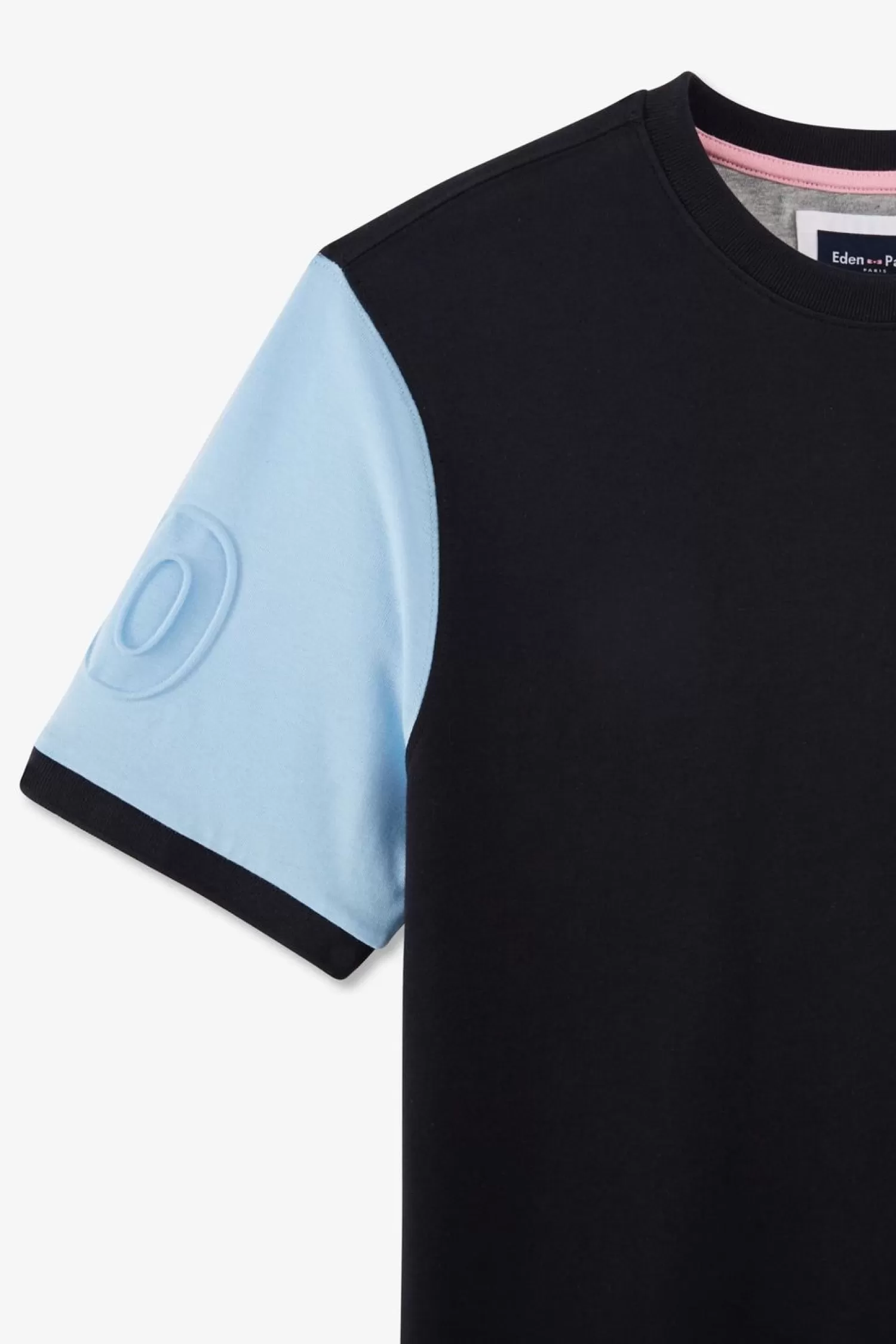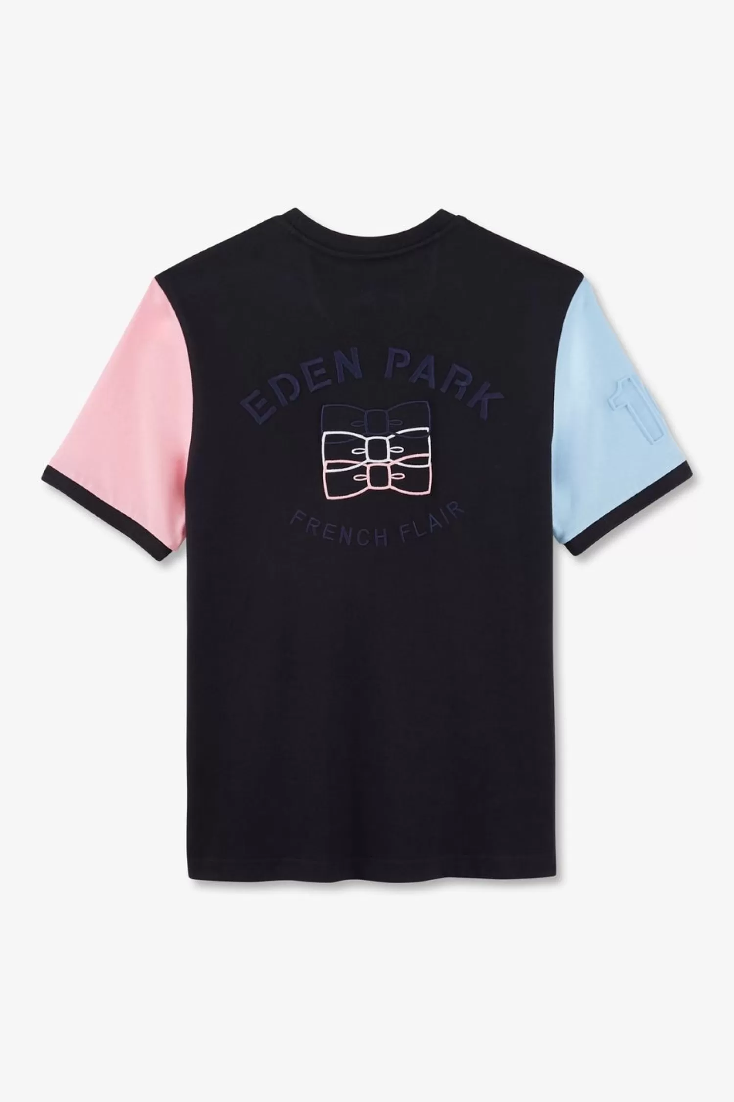Ce T-Shirt Homme 100% Coton Se Distingue Par Ses Manches Bicolores L’Une Ciel Et L’Autre Rose, Couleurs Iconiques De Notre Maison. Ce T-Shirt Arbore Un Écusson Poitrine En Gomme Et Une Broderie Dos Réinterprétant L’Emblème Eden Park : Le Nœud Papillon. Un Flocage En Relief Numéro 10 Et Une Mention French Flair S’Ajoutent À Cette Pièce Signature.