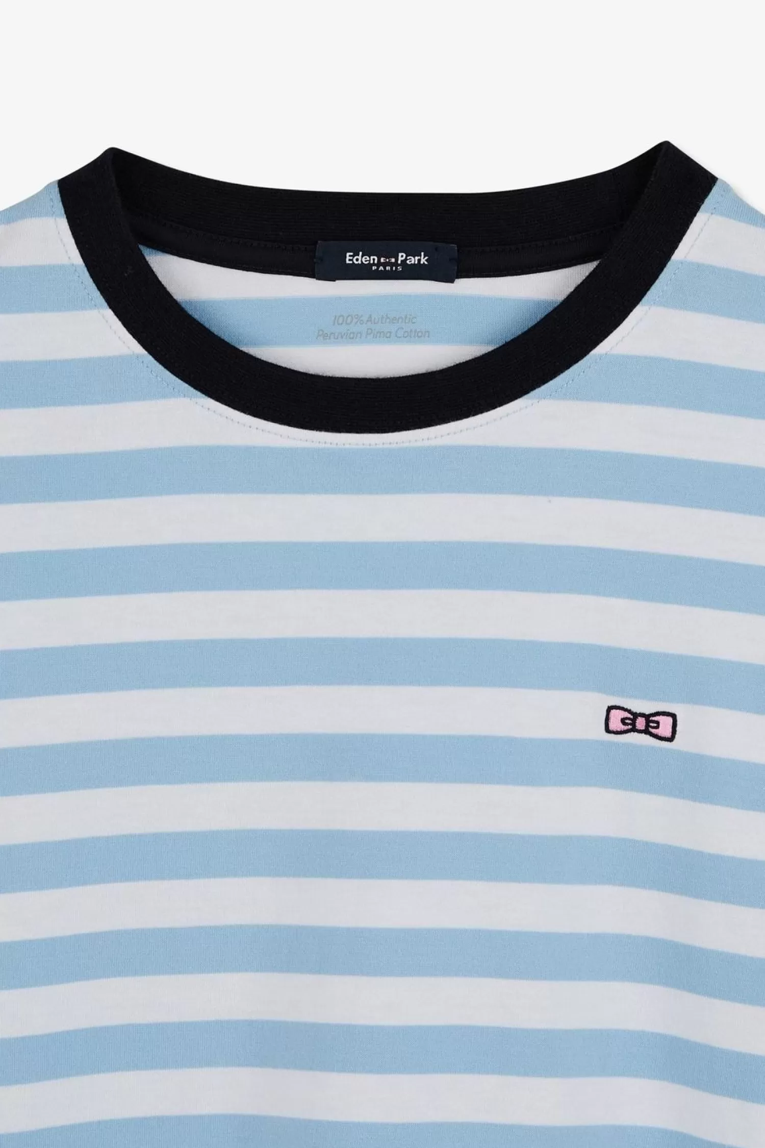 Conçu En Coton Pima, Ce T-Shirt Uni À Manches Courtes Rayé Est Léger Et Agréable À Porter. Il Affiche Subtilement Notre Emblématique Nœud Papillon Sur La Poitrine