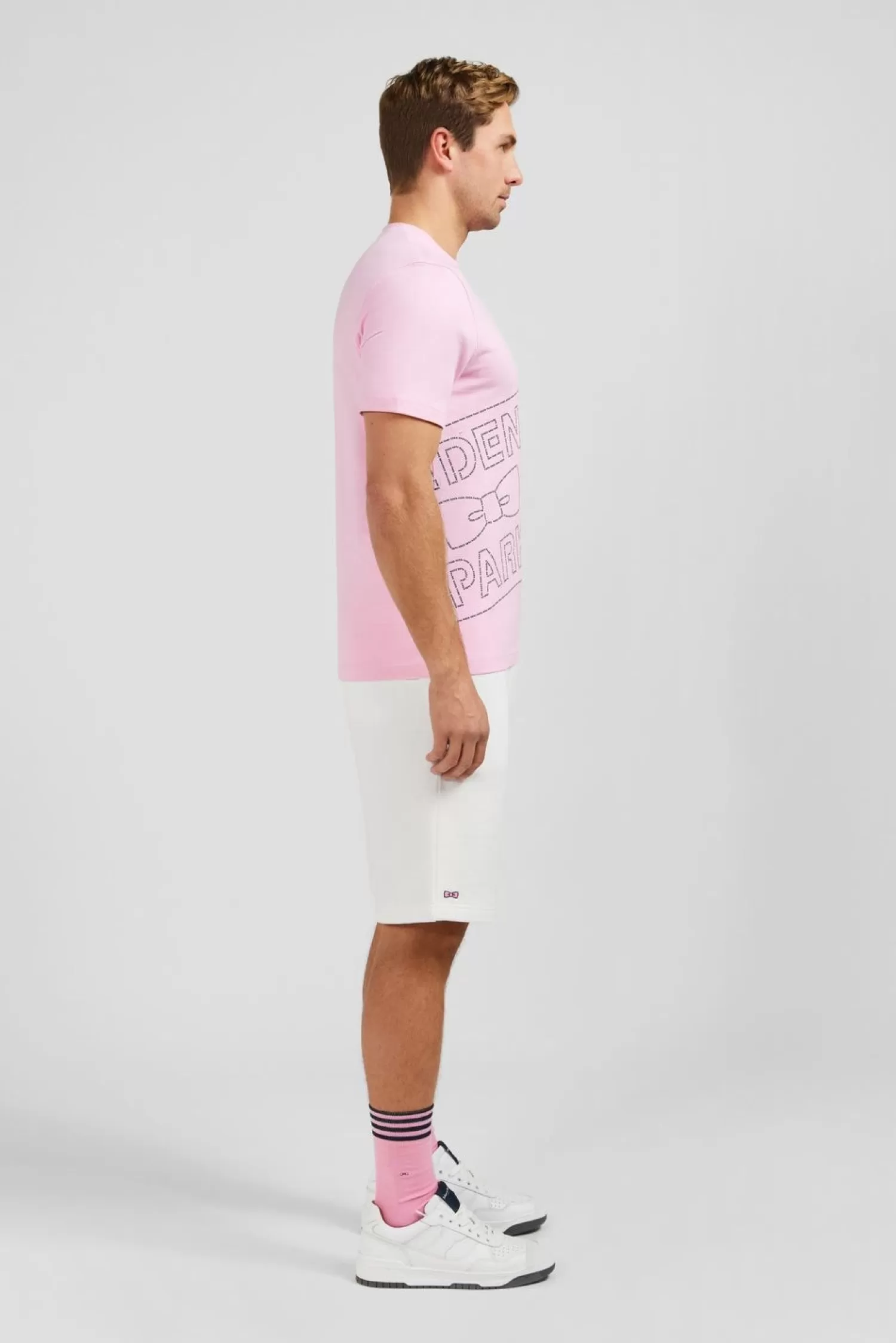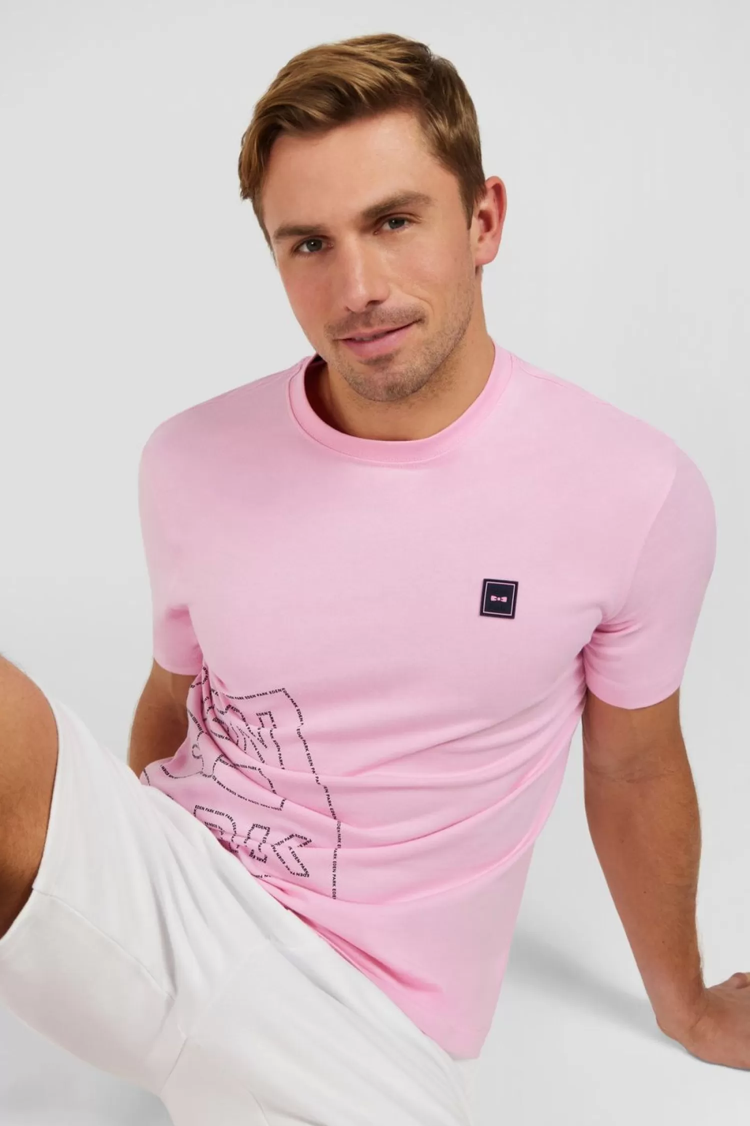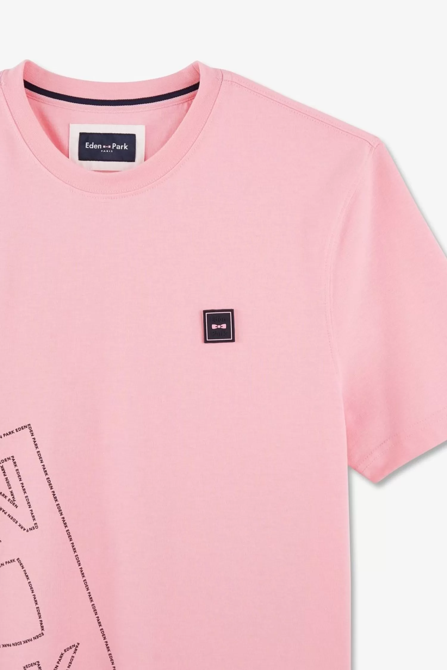Vous Recherchez Une Pièce Forte Pour Apporter Une Note Décalée À Vos Tenues Printemps-Été ? Ce T-Shirt En Coton Rose Se Distingue Par Sa Large Sérigraphie Eden Park Entièrement Réalisée En Trompe L’Œil Par L’Accumulation Du Nom De Notre Maison En Petits Caractères. Un Badge Gomme Sur La Poitrine Et L’Un Dans Le Dos S’Ajoutent À Ce Détail Graphique Travaillé Avec Soin.